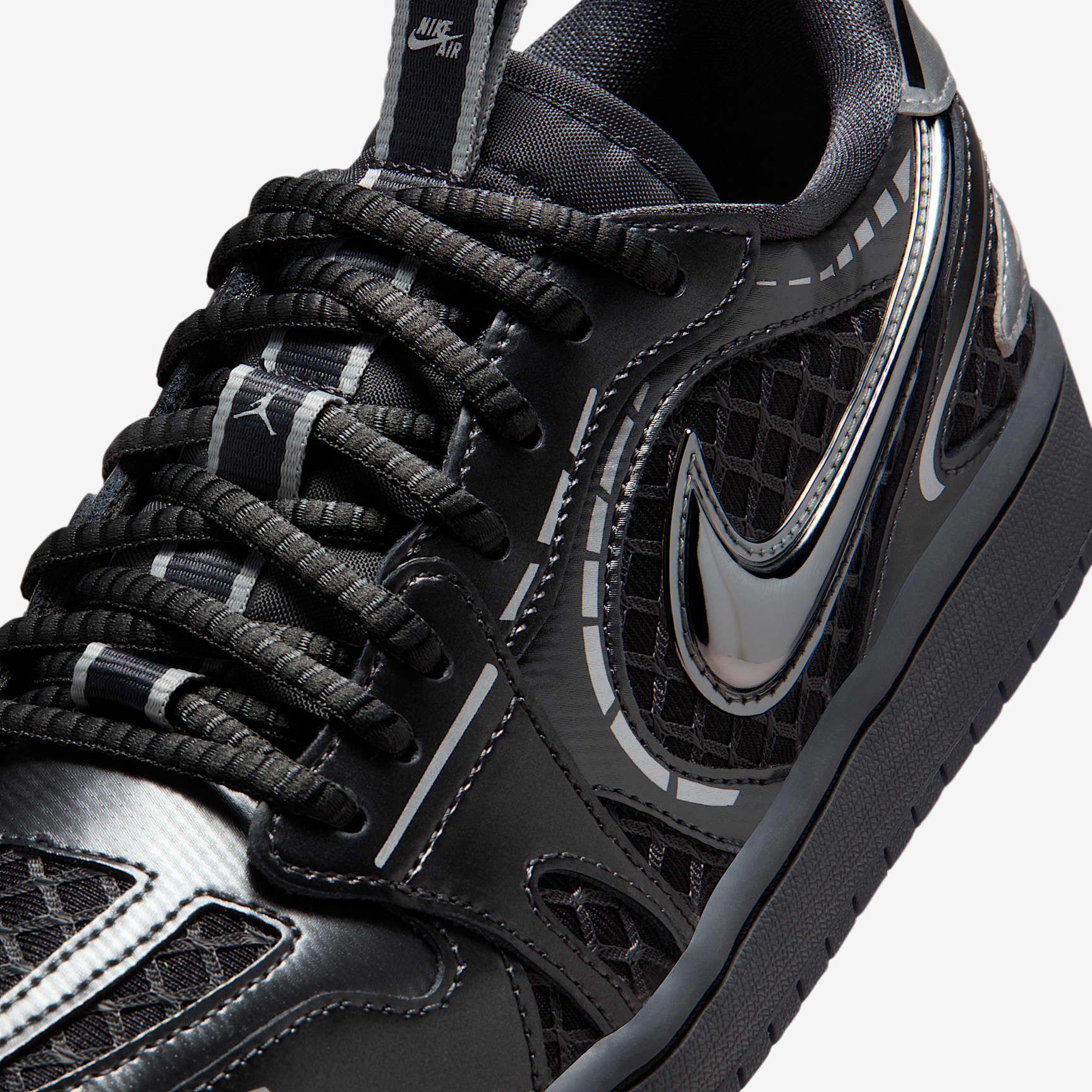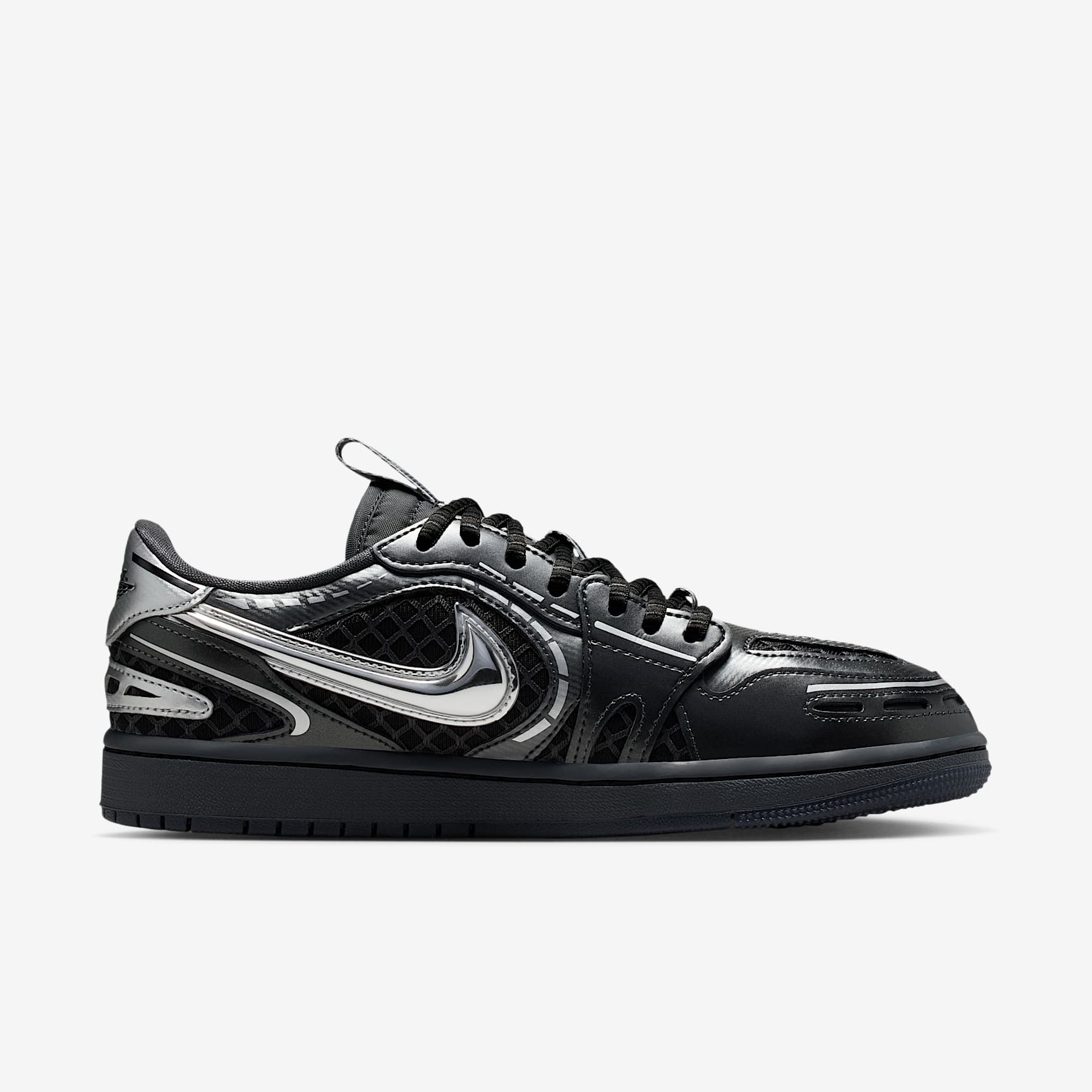 Our latest Method of Make series takes the instantly recognizable AJ1 and infuses it with serious tech runner style. Luxurious metallic leather pairs with breezy textile panels to create a richly layered design. A puffy Nike Swoosh logo sits on top of it all, rounding out the '00s running style. Benefits * Real and synthetic leather offer durability and structure. * Nike Air technology absorbs impact for cushioning with every step. * Soft foam midsole helps provide lightweight cushioning. * Rubber outsole adds durable traction. Product Details * Wings logo on heel * Stitched-down Swoosh logo