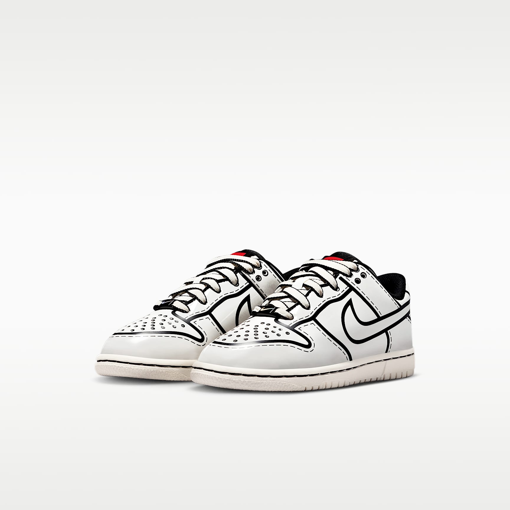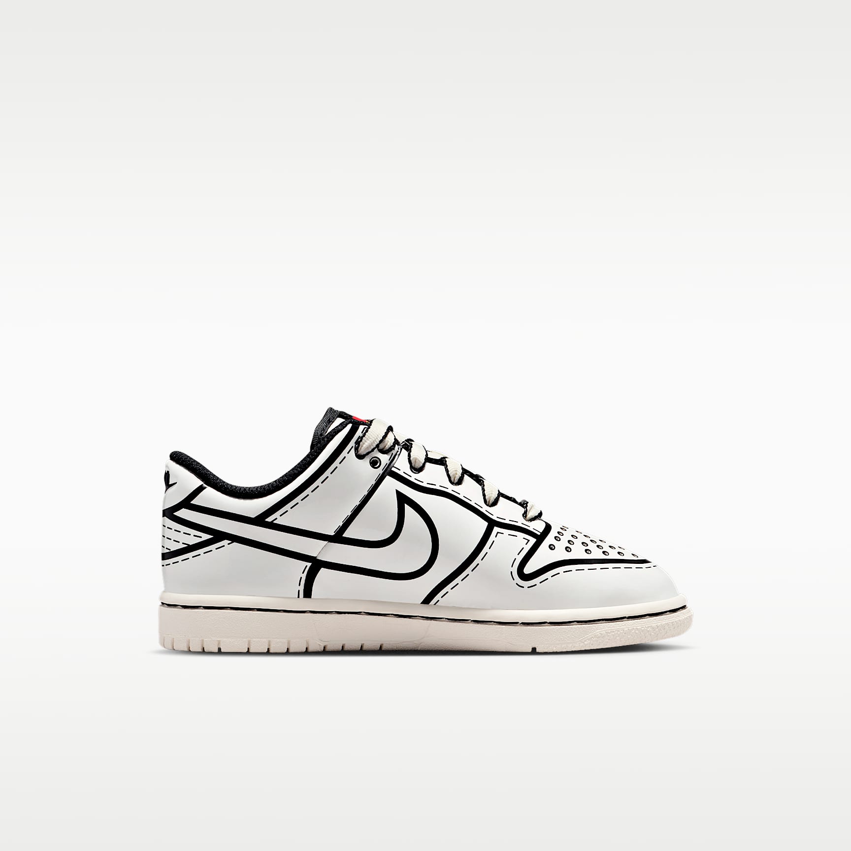 What do the Dunk and LEGO® Minifigures have in common? Both look good however you style them. Put your kid in the designer's seat with a Dunk that's truly a blank canvas. It features a flat, one-piece upper and a box you can assemble into a play chest—the possibilities are endless! Make it their own The painted-on aesthetic highlights the Dunk's signature stitching, and takes inspiration from Minifigure designs. All that's missing is your little one's artistic touch—the sky's the limit! Play-ready traction The rubber outsole featuring a classic pivot circle adds durable traction and heritage style. Plush Comfort Foam underfoot offers lightweight, responsive cushioning. Product Details * Classic laces * Padded collar * Cupsole construction Nike Dunk Born from a series of mash-ups, hacks and tight deadlines, the Nike Dunk landed on university basketball courts during the '85–'86 season. While the original 'College Colours' designs helped you stay true to your school, the Dunk didn't prove to be popular. But it was this humble sneaker's lack of popularity—and flat, grippy soles—that helped it jump the rails to captivate skateboarders. Decades later, this everyday favourite continues to be snatched up in countless colourways, proving its influence is undeniable.