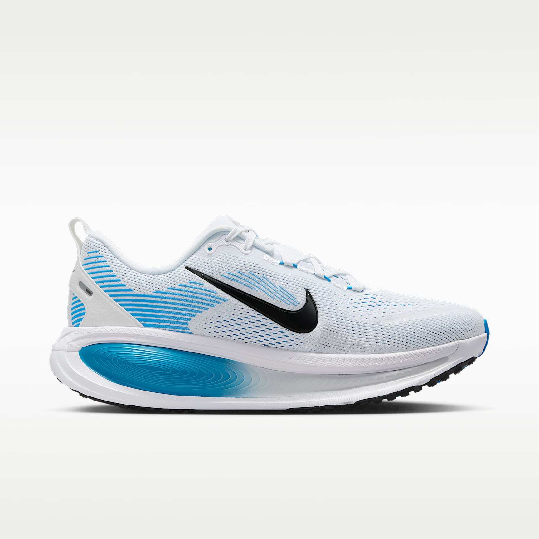 Double-stacked foam delivers our softest, most cushioned ride. Maximum cushioning in the Vomero provides a comfortable ride for everyday runs. Our softest, most cushioned ride has lightweight ZoomX foam stacked on top of responsive ReactX foam in the midsole. Plus, a redesigned traction pattern offers a smooth heel-to-toe transition. Engineered mesh upper The upper is made from engineered mesh for soft breathability. Dual-density midsole Our dual-density midsole has ZoomX foam stacked on top of ReactX foam—13% more responsive than previous React technology—for a comfortable ride. Pods around the outsole We placed pods around the outsole to help enhance agility and smoother heel-to-toe transitions. Plush padding A plush tongue and lining give you a comfortably snug feel. What's new? The newly stacked foam midsole with premium ZoomX on top of ReactX foam amplifies cushioned comfort. Product details * Weight: 325g approx. (men's UK 9) * Heel-to-toe drop: 10mm * MR-10 Last—Our best, most consistent fit * Reflective design details * Not intended for use as personal protective equipment (PPE)