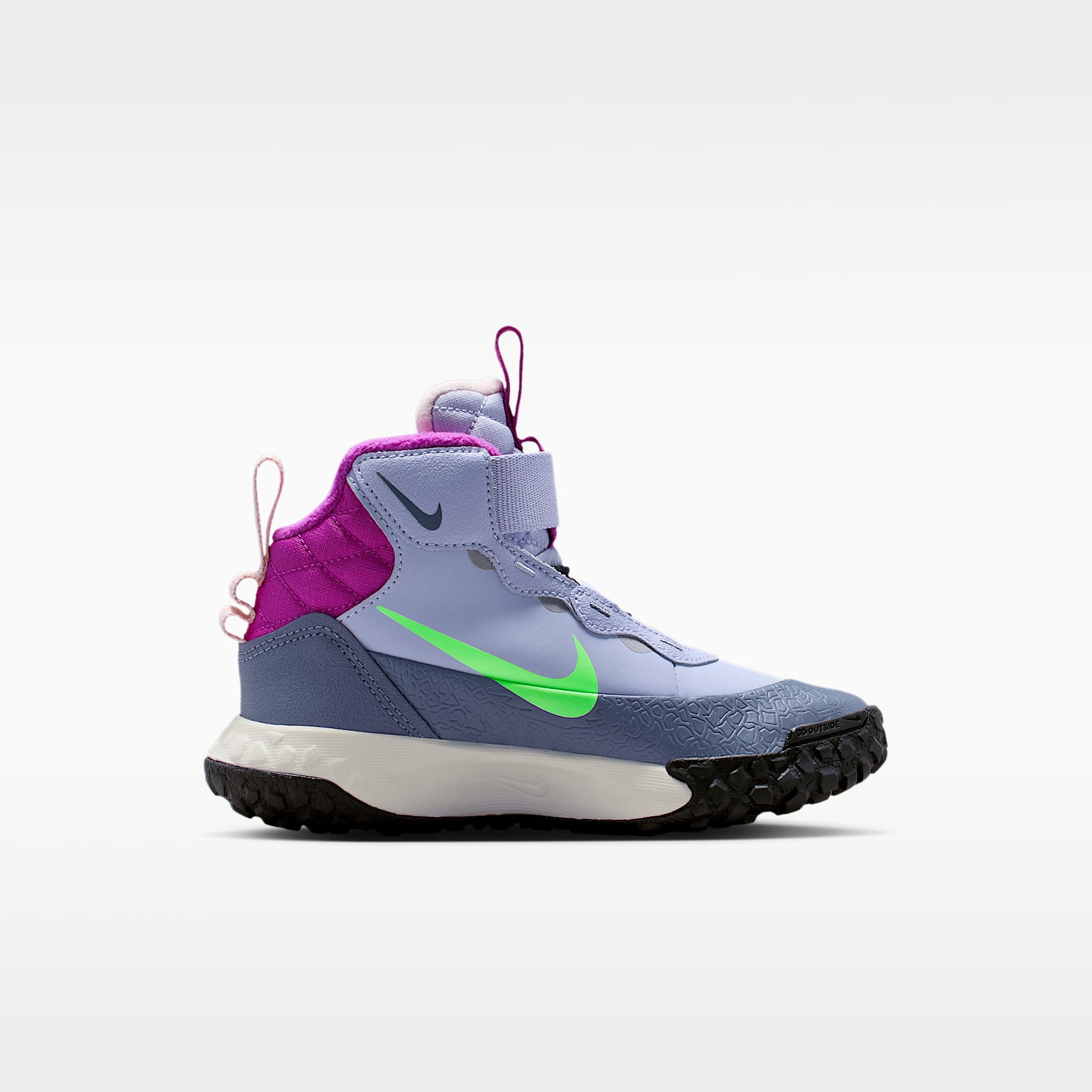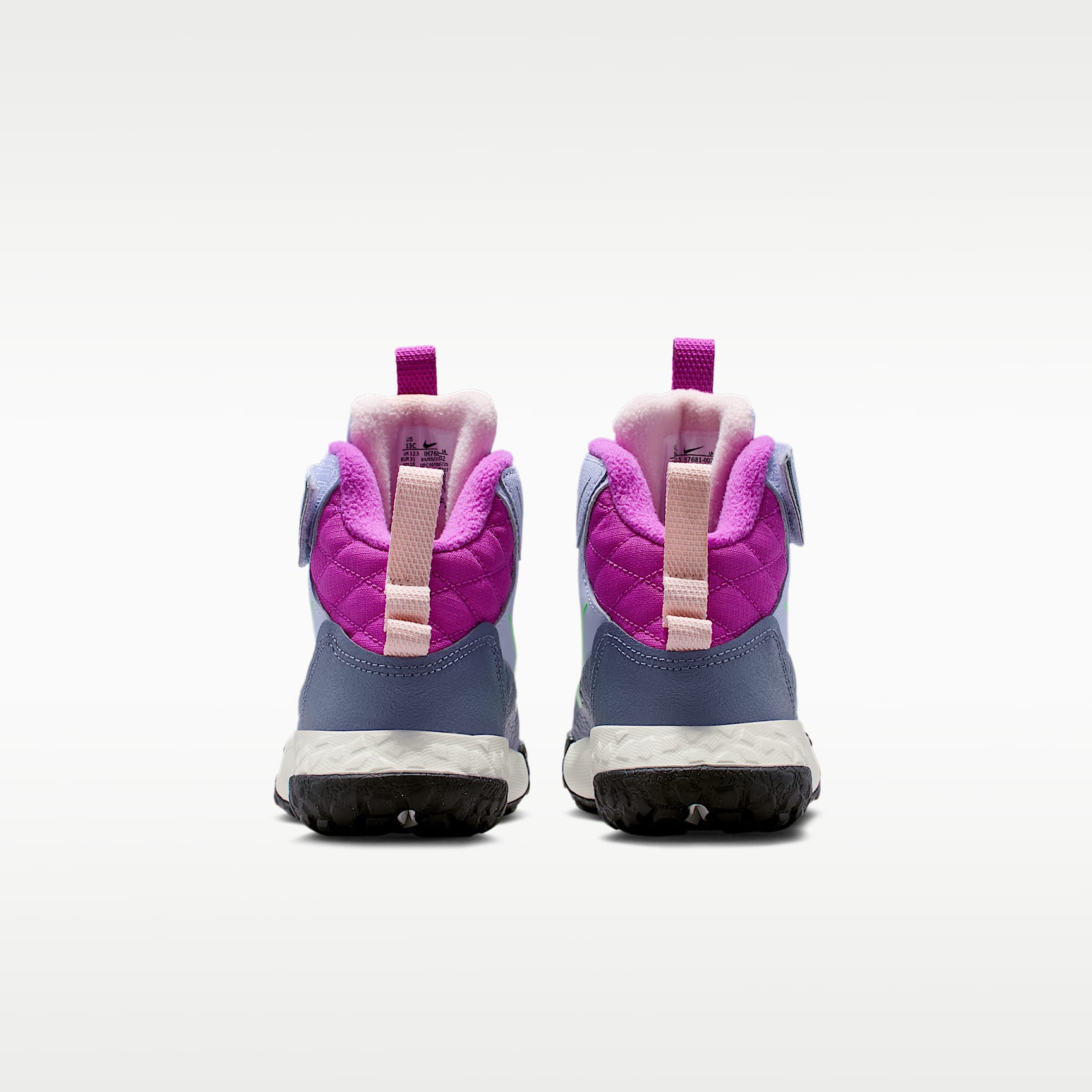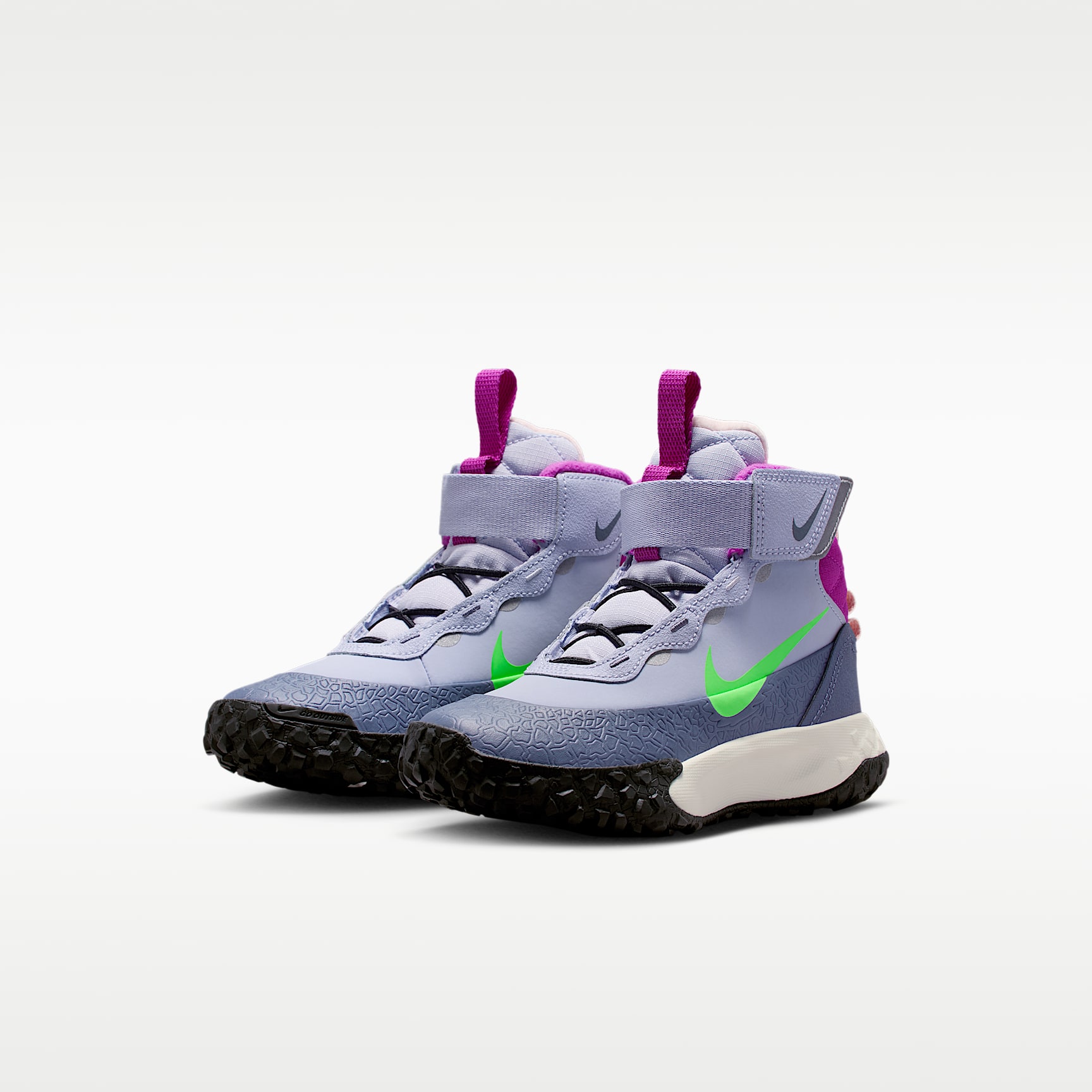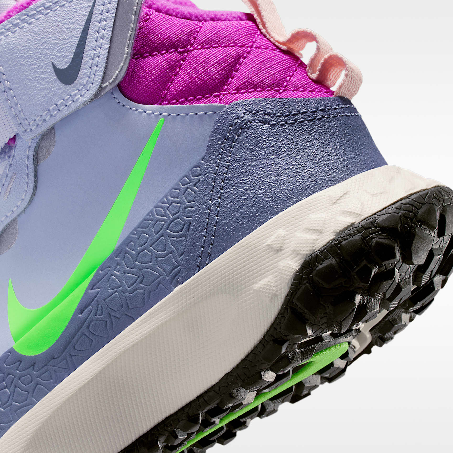 Grippy outsole for maximum grip, real and synthetic leather upper for durability, textured mudguard for protection against the elements – it's the ultimate boot for your little scout. Plus, a fleece lining and hook-and-loop tab across the ankle make for a cosy and secure fit on their roaming feet. Step into Exploration Rubber outsole with rugged tread pattern helps provide durable traction. Flex grooves in the outsole add flexibility, helping every step feel natural. Easy to Pull On Elastic laces and a hook-and-loop strap work with pull tabs to help make these easy to get on. A lowered back collar gives kids room to slide these over their heels. Warm and Cosy Details Quilted fabric around the collar pairs with a soft fleece lining to help keep little feet warm in cold weather. Product Details * Elastic laces * Reflective design details * Not intended for use as Personal Protective Equipment (PPE)