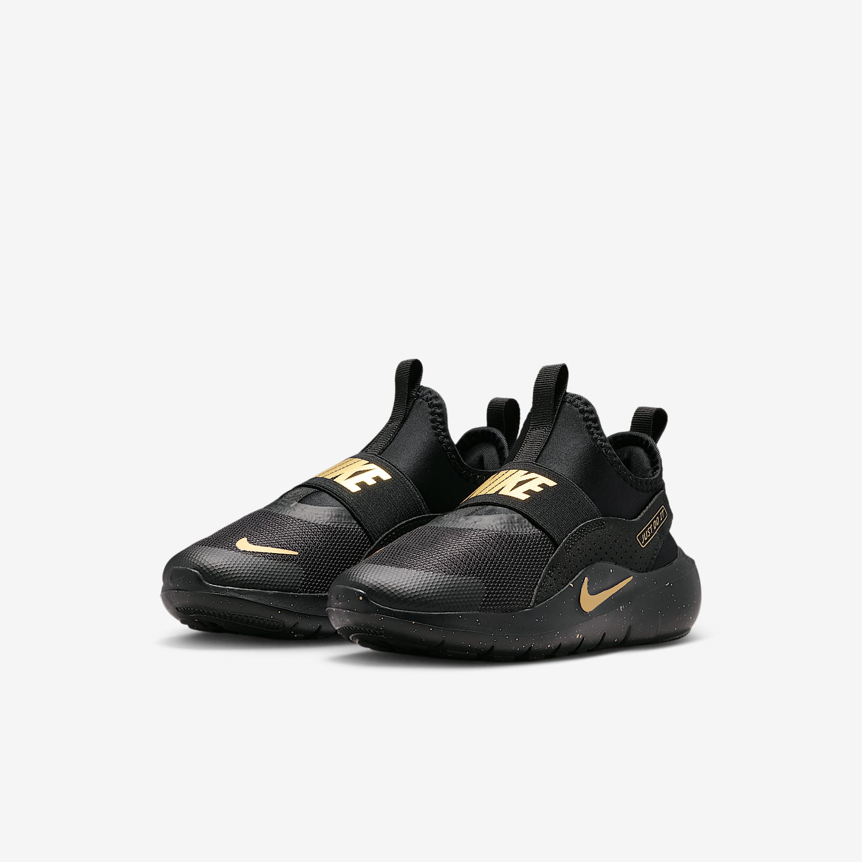 Designed for getting into fun fast, the Flex Runner 4 is made to be easy for kids to pull on. Its bootie-like design is flexible with stretchy straps that secure their fit. Flex grooves in the outsole allow little feet to move naturally, helping kiddos find their footing. Pull on and Go Pull tabs on the heel and tongue work with a stretchy inner sleeve to help make these shoes easy for kids to put on themselves. Elastic straps run behind the heel and across the top of the foot to provide a snug, secure feel. Play Anywhere Flex grooves in the outsole add flexibility, helping every step feel natural. Multisurface traction works with sturdy foam that wraps around the heel to provide grip and stability when kids shift directions. Durable Comfort and Support We reinforced the toe box and used durable materials throughout to help these kicks stand up to how kids play. Soft, springy foam in the midsole helps cushion their every step. Product Details * Slip-on design * Pull tab on tongue and heel * Rubber outsole