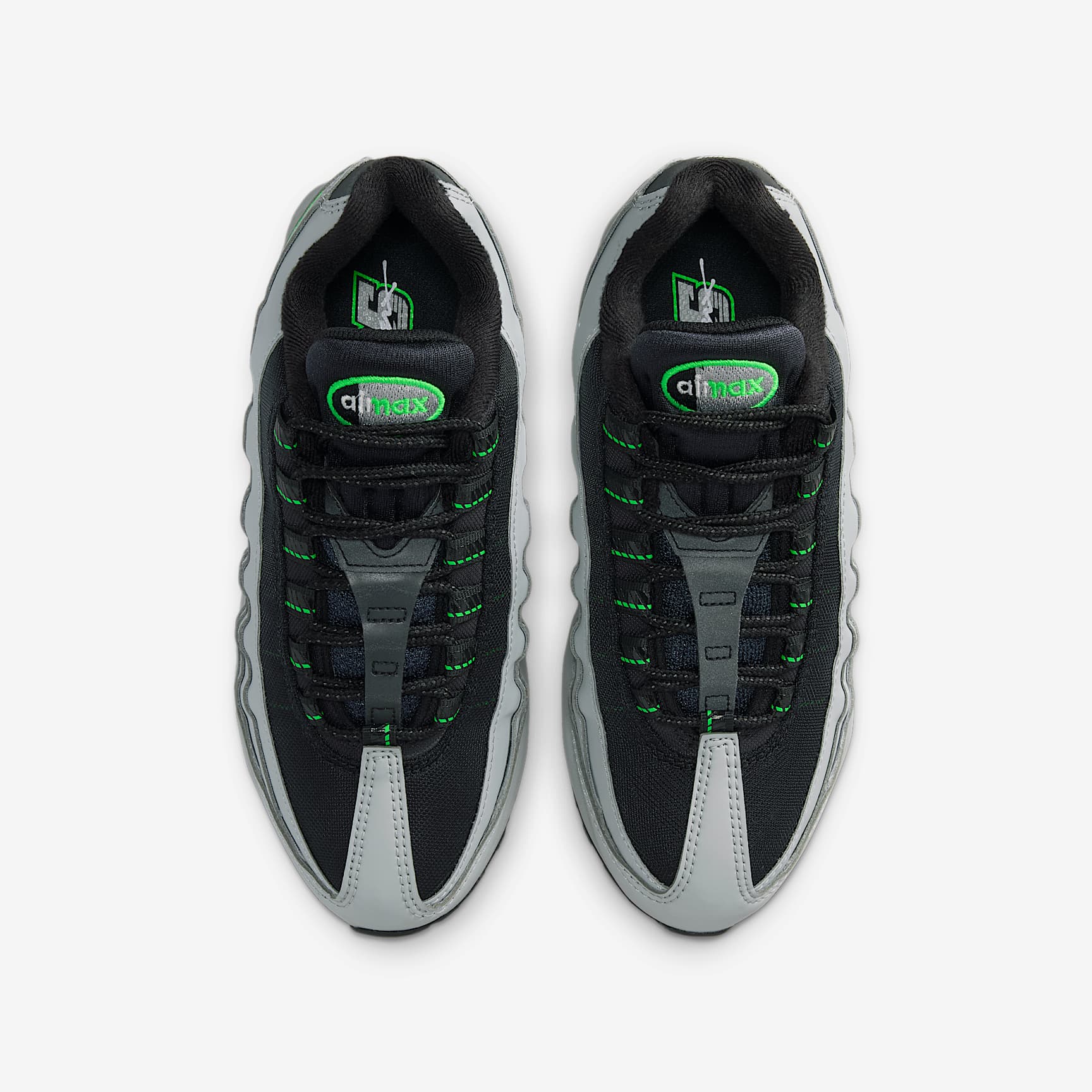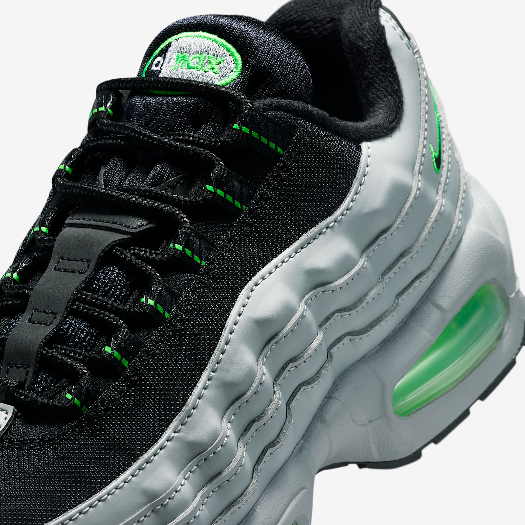 The AM95 doesn't follow trends—it sets them. It turned heads when originally released as the first shoe in our line-up to have a visible Max Air unit. Airy mesh and rippling layers of synthetic leather help this pair retain that same innovative spirit. Benefits * The upper draws inspiration from human anatomy with muscles inspiring the side panels and the spine informing the outsole and midsole design. * The upper mixes breathable mesh and other textiles with durable synthetic leather for a layered look that's built to last. * The visible Max Air unit helps provide lightweight cushioning. * The rubber outsole with flex grooves gives you durable traction. Product details * Classic laces * Foam midsole