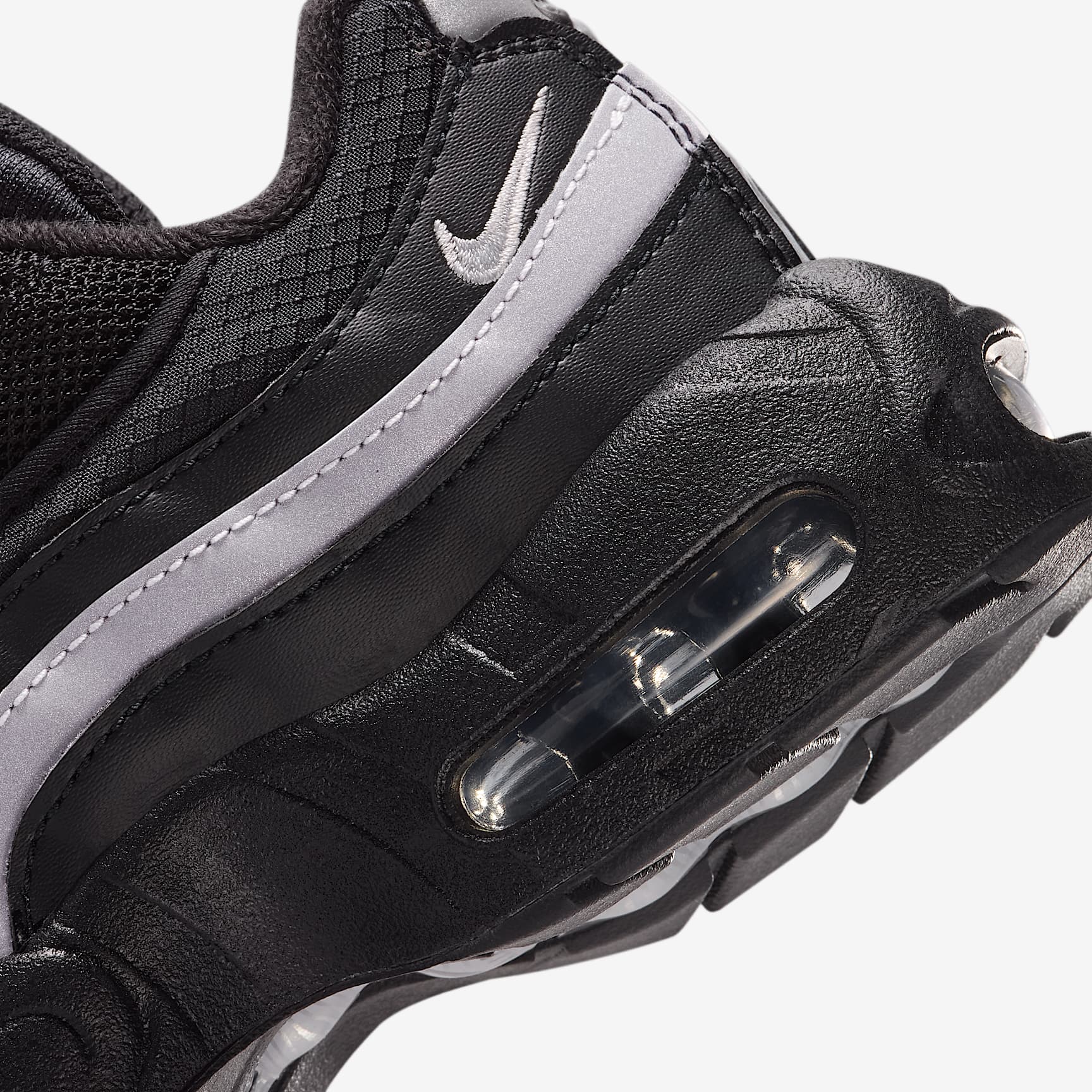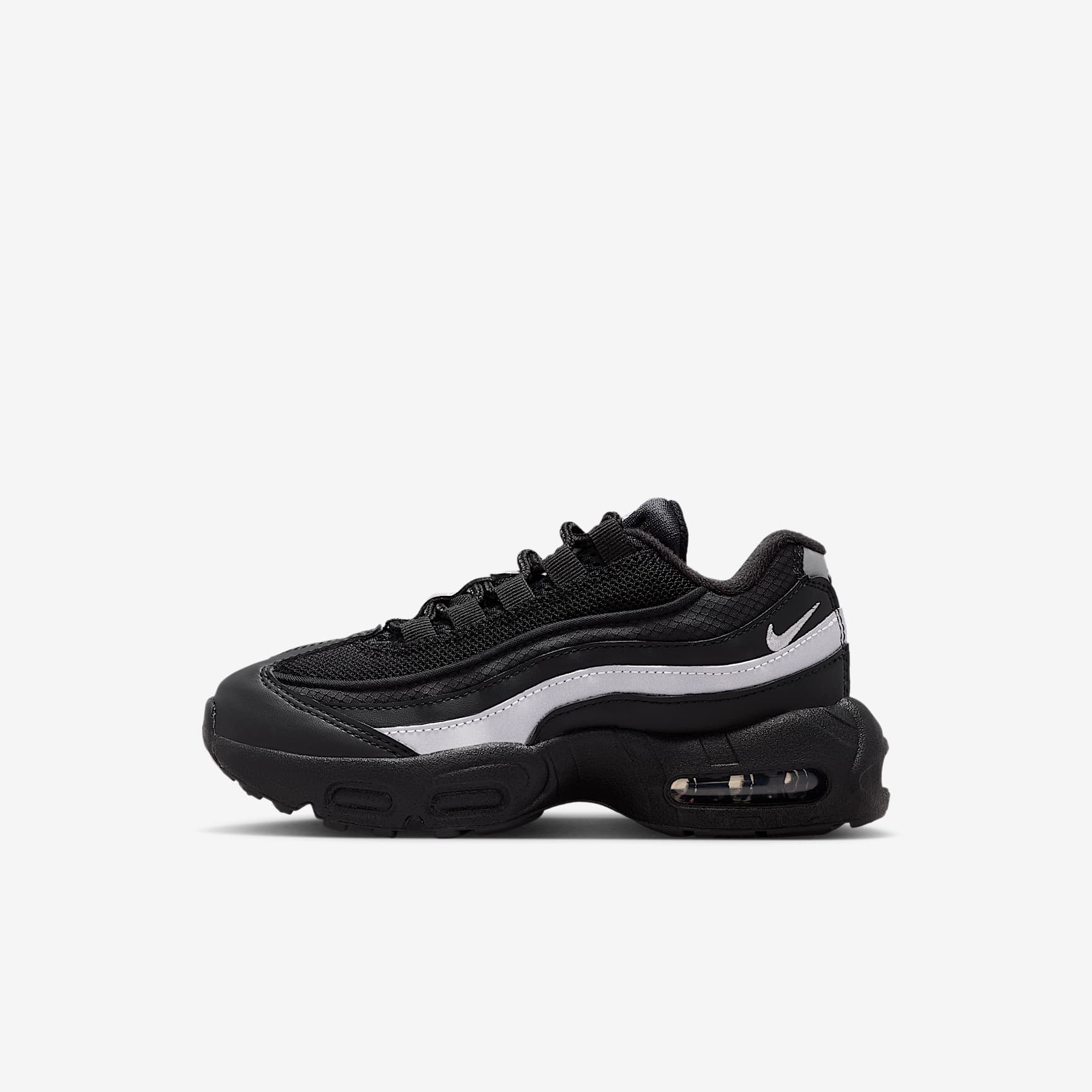 This Nike Air Max 95 Recraft brings back a treasure from the past to celebrate the original's 30-year anniversary. Of course, we kept the Max Air cushioning, durable leather and iconic design lines that turned heads in '95, giving your kid an instant classic. Benefits * The upper draws inspiration from human anatomy with muscles inspiring the side panels and the spine informing the outsole and midsole design. * The upper mixes breathable mesh and other textiles with real and synthetic leather for a layered look that's built to last. * The visible Max Air unit helps provide lightweight cushioning. * The rubber outsole with flex grooves adds durable traction. Product details * Classic laces * Foam midsole * Not intended for use as personal protective equipment (PPE)