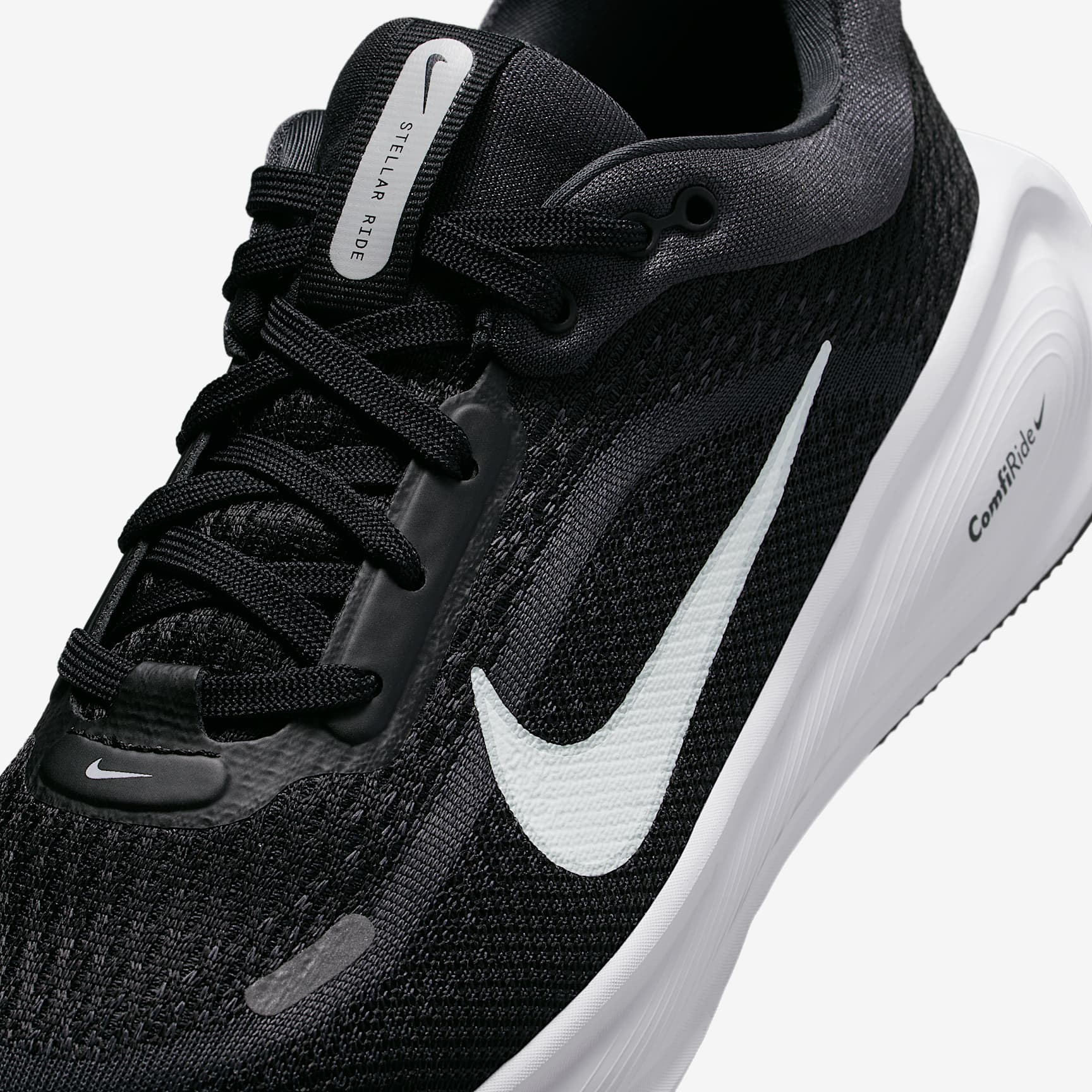 With a thick stack of soft and responsive ComfiRide foam, the Nike Stellar Ride is built for the long run. Mesh up top provides the breathability you need to go the distance. A padded, low-cut collar gives you a plush, premium fit. Lace up and find your stride, no matter the distance. A Stellar Ride Thick ComfiRide foam midsole takes design cues from the Vomero and provides soft, responsive cushioning. Breathable Upper Engineered mesh on the upper helps your feet breathe for a comfortable but contained feel no matter how far you run. Durable Traction Rubber outsole provides durable traction with multiple tread patterns for added grip. Product Details * Classic laces * Pull tab on tongue * Reflective details * Not intended for use as Personal Protective Equipment (PPE)