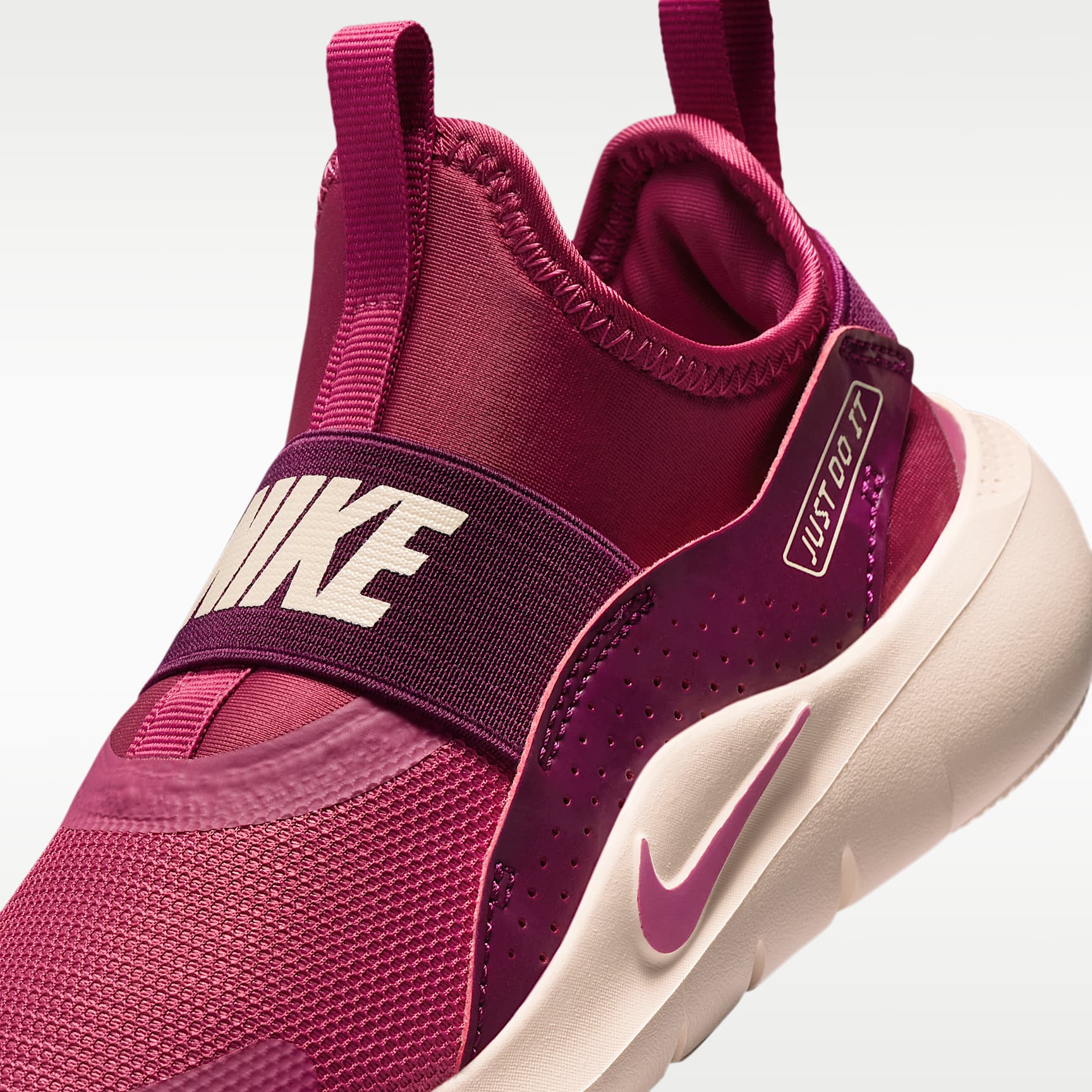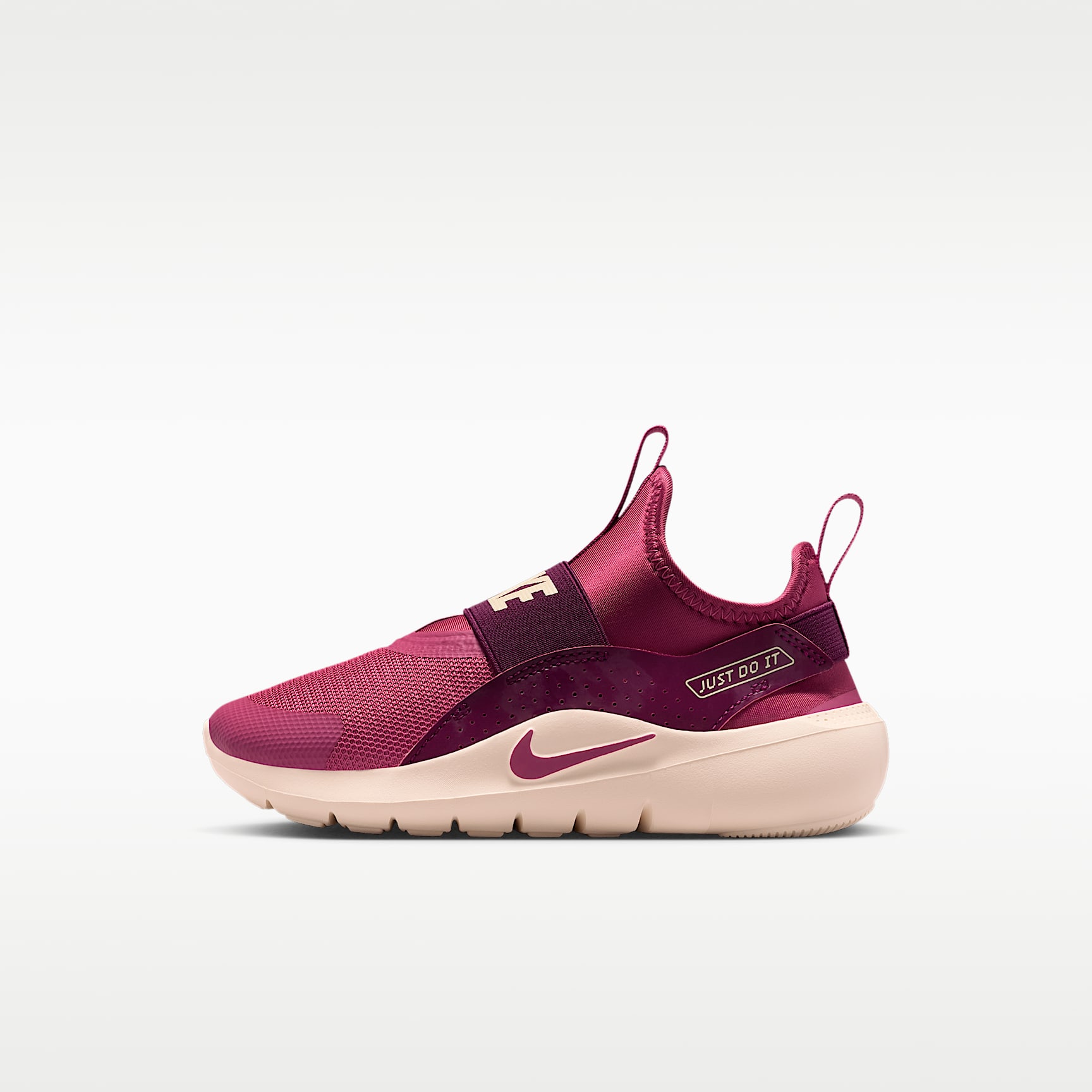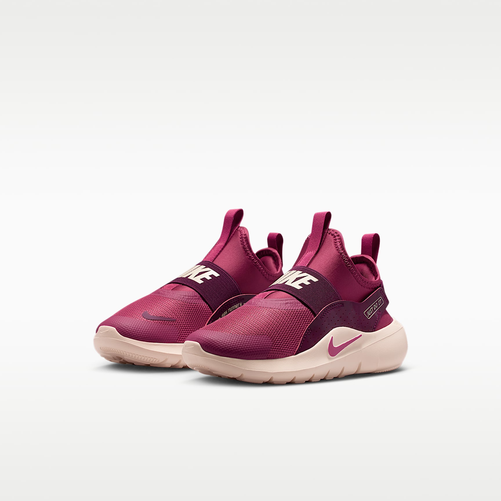 Designed for getting into fun fast, the Flex Runner 4 is made to be easy for kids to pull on. Its bootie-like design is flexible with stretchy straps that secure their fit. Flex grooves in the outsole allow little feet to move naturally, helping kiddos find their footing. What's New You spoke and we listened. For the Flex Runner 4, we updated the fit of the midfoot strap and the collar to help make these easy for kids to slip on and comfortable enough to wear all day. Pull on and Go Pull tabs on the heel and tongue work with a stretchy inner sleeve to help make these shoes easy for kids to put on themselves. Elastic straps run behind the heel and across the top of the foot to provide a snug, secure feel. Play Anywhere Flex grooves in the outsole add flexibility, helping every step feel natural. Multisurface traction works with sturdy foam that wraps around the heel to provide grip and stability when kids shift directions. Durable Comfort and Support We reinforced the toe box and used durable materials throughout to help these kicks stand up to how kids play. Soft, springy foam in the midsole helps cushion their every step.