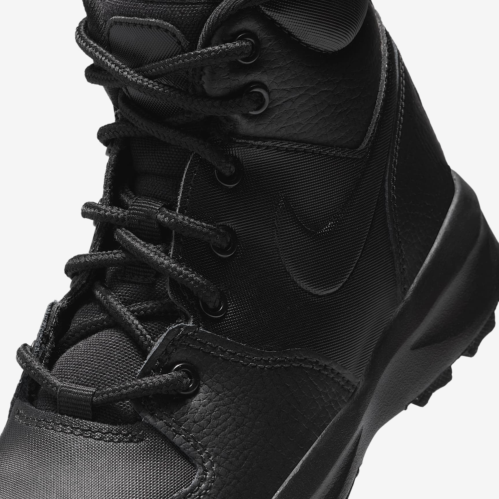 Sturdy leather, a thick padded collar and rugged tread – the Nike Manoa helps your little one take on the day with warmth. The tongue is attached to the sides of the boot so little rocks, dirt and debris can't sneak in while they explore. Benefits * The real and synthetic leather in the upper add structure and durability. * Soft foam provides lightweight cushioning. * Rubber sole has an aggressive traction pattern to help little ones stay on their feet. Product Details * Classic laces * Pull tab on heel