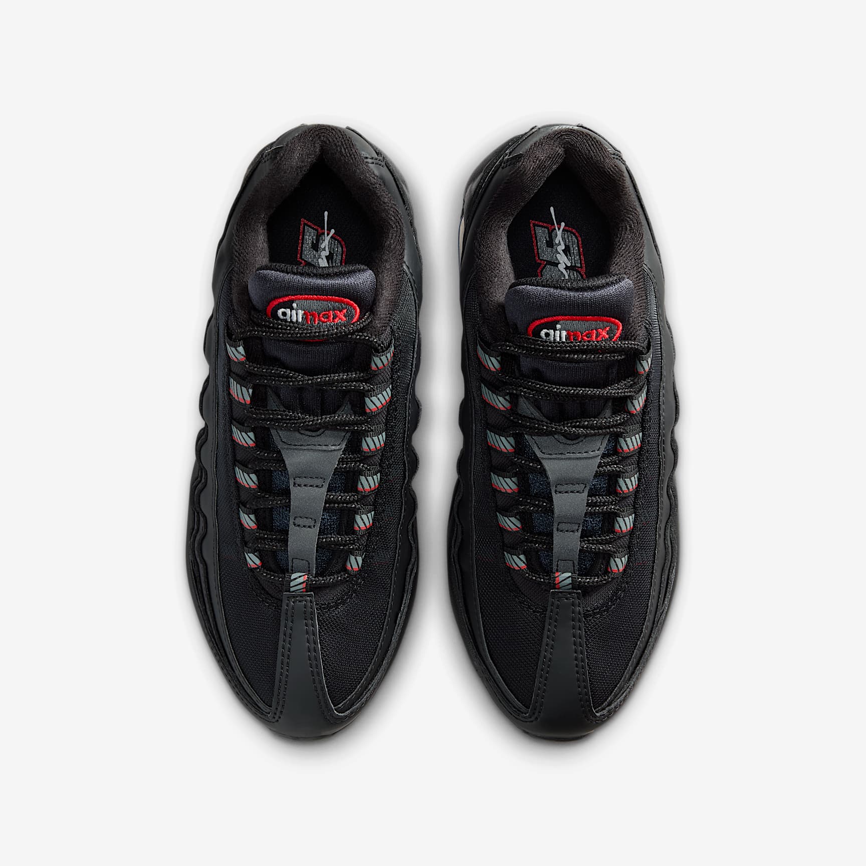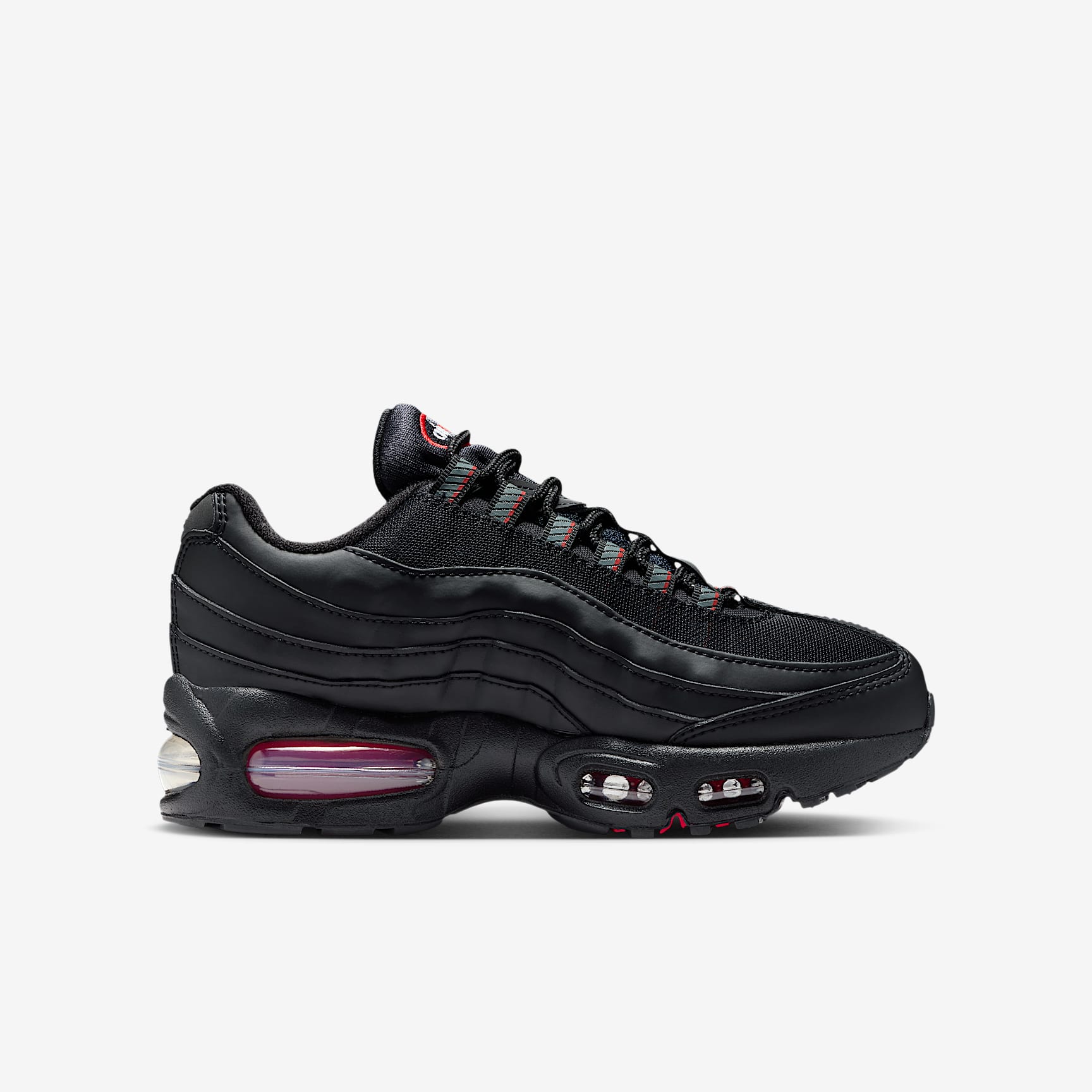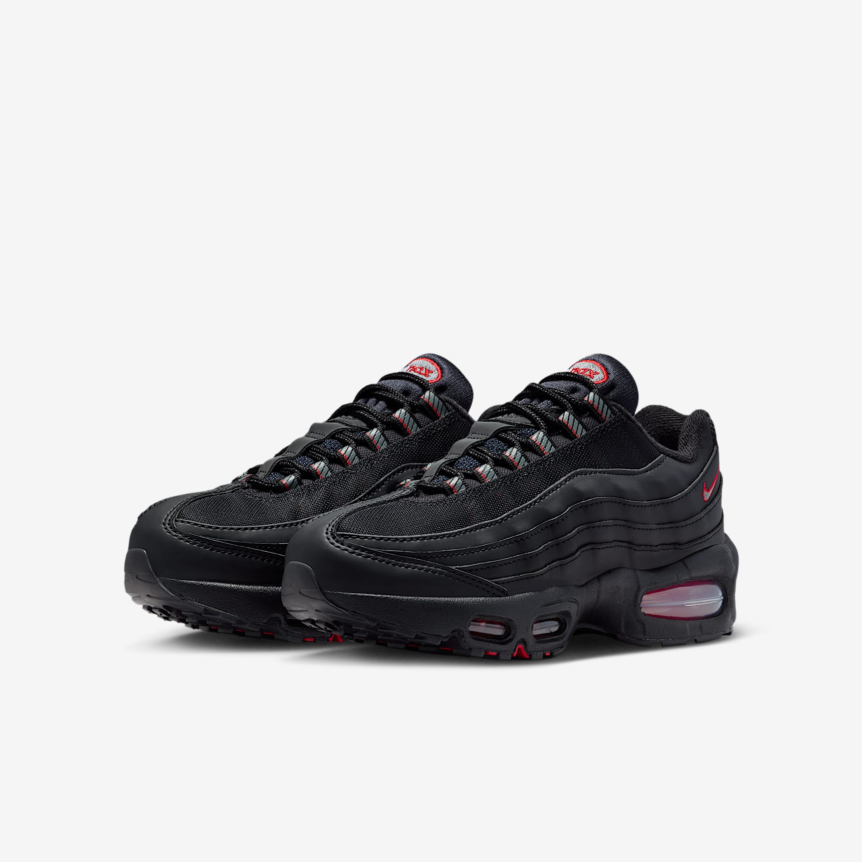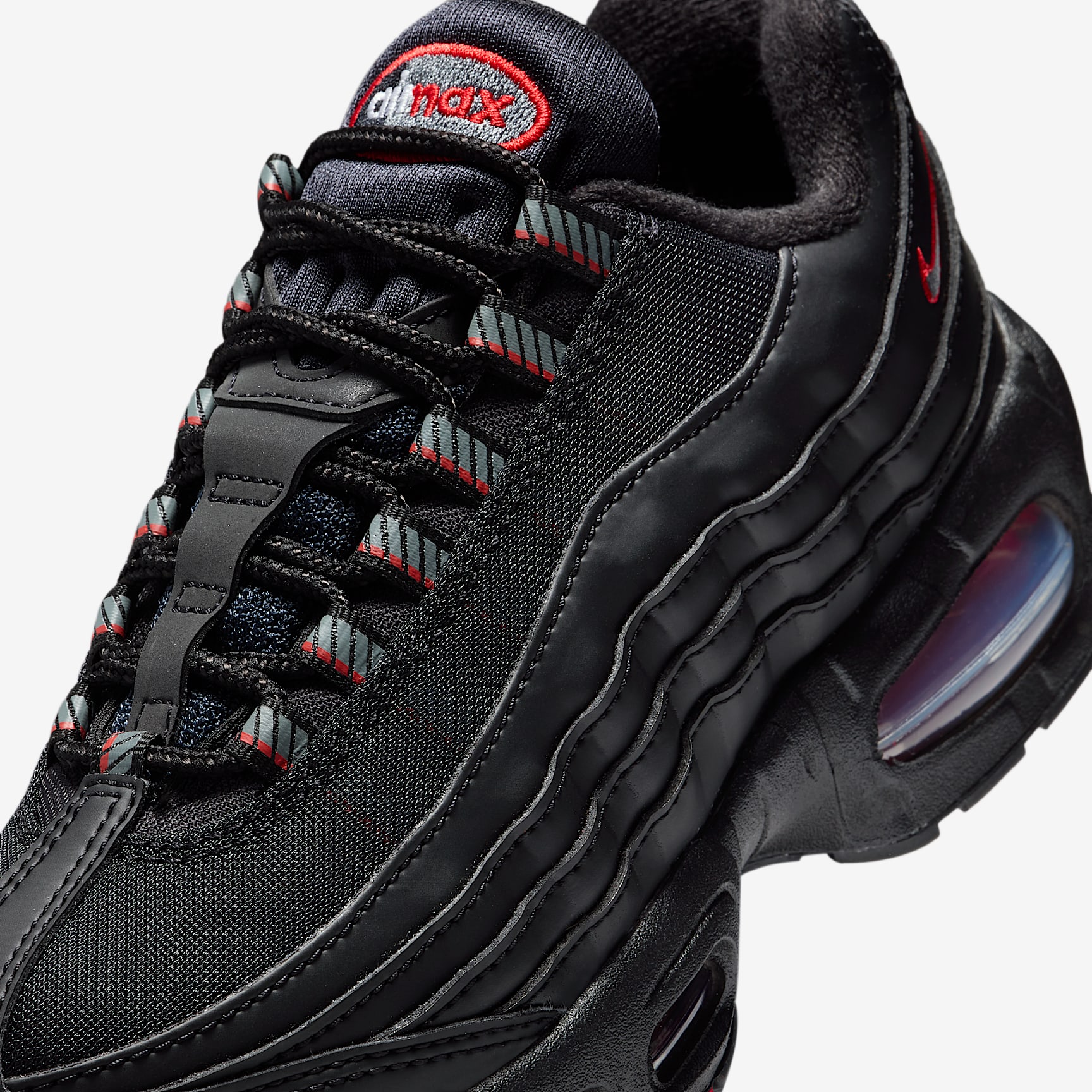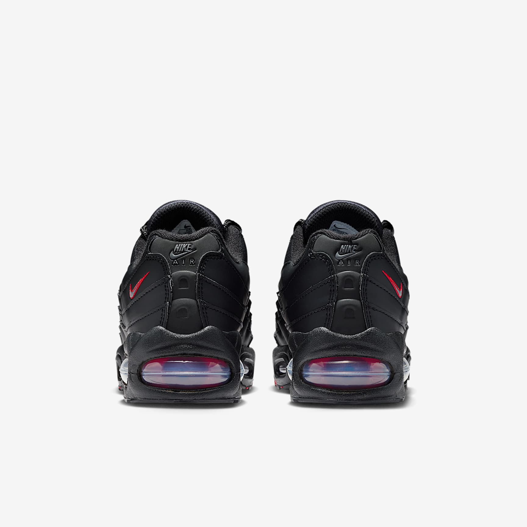 The AM95 doesn't follow trends—it sets them. It turned heads when originally released as the first shoe in our line-up to have a visible Max Air unit. Airy mesh and rippling layers of synthetic leather help this pair retain that same innovative spirit. Benefits * The upper draws inspiration from human anatomy with muscles inspiring the side panels and the spine informing the outsole and midsole design. * The upper mixes breathable mesh and other textiles with durable synthetic leather for a layered look that's built to last. * The visible Max Air unit helps provide lightweight cushioning. * The rubber outsole with flex grooves gives you durable traction. Product details * Classic laces * Foam midsole