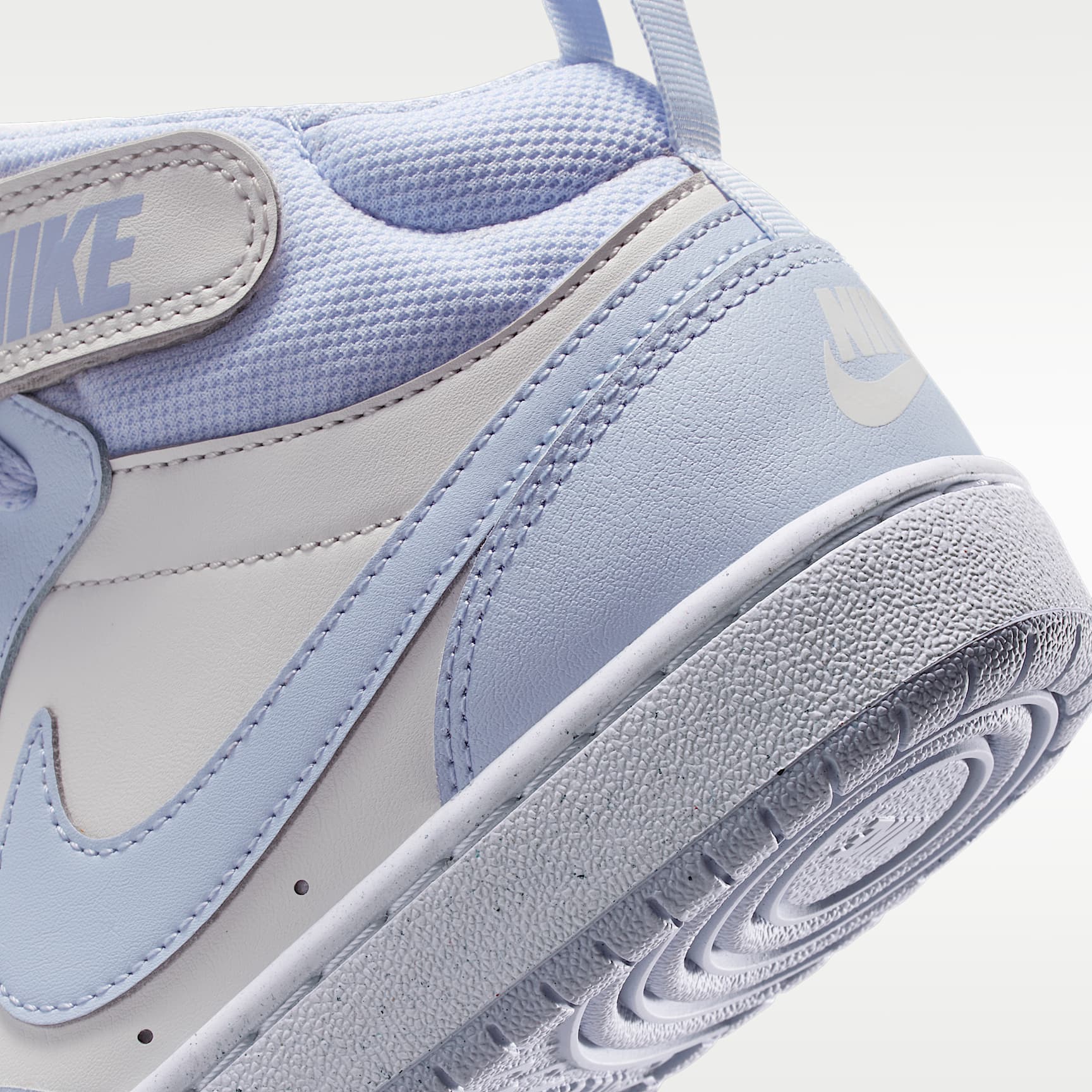 ALL-STAR COMFORT. Look like an all star off the court with the Nike Court Borough Mid 2. The classic mid-top design features durable leather for a premium look and feel. Padding around the tongue and ankle provide extra comfort. Benefits * Leather is durable and easy to clean. * Traditional laces provide a secure fit. * Grooves in the sole make it flexible. * Padding around the tongue and ankle give you extra comfort. Product Details * Cupsole construction for a classic look and feel