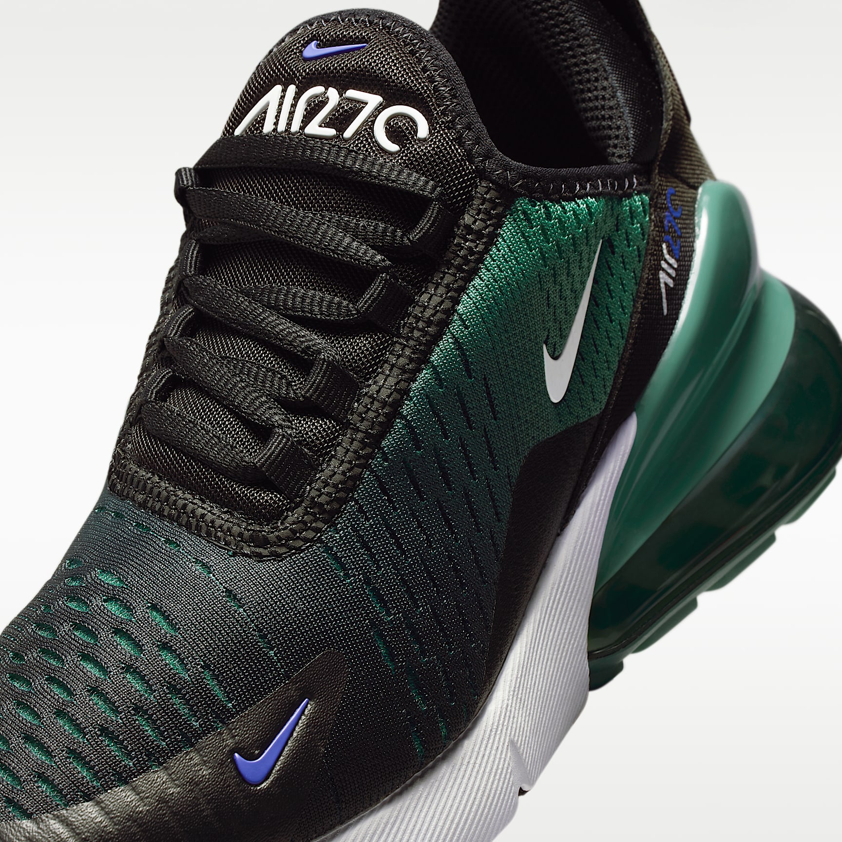 SHOW LOVE TO BIG AIR. Nike's first lifestyle Air Max shoe is everything you imagined with the Nike Air Max 270. What we love most (for obvious reasons): the BIG, bold wraparound 270 Air unit to showcase our greatest technology everywhere you go. Benefits * Woven and synthetic fabric on the upper provides a lightweight fit and airy feel. * The 270 Max Air unit provides 270 degrees of see-through cushioning. * Foam cushioning underfoot feels soft and lightweight. * Rubber outsole provides durable traction. * Heel pull tab helps you take the shoes on and off easily.