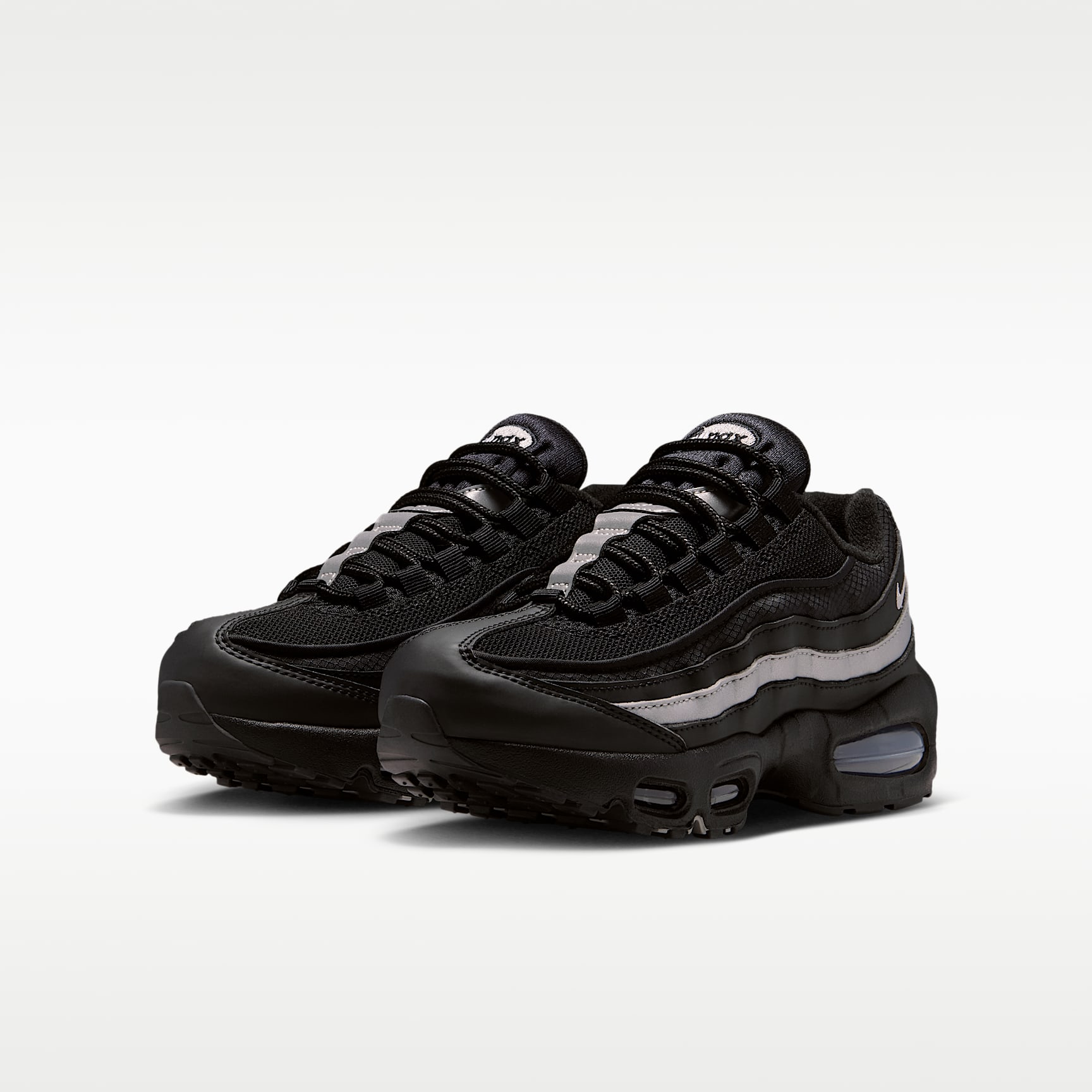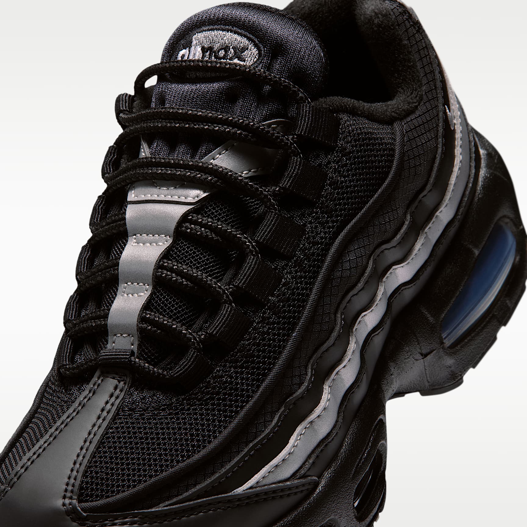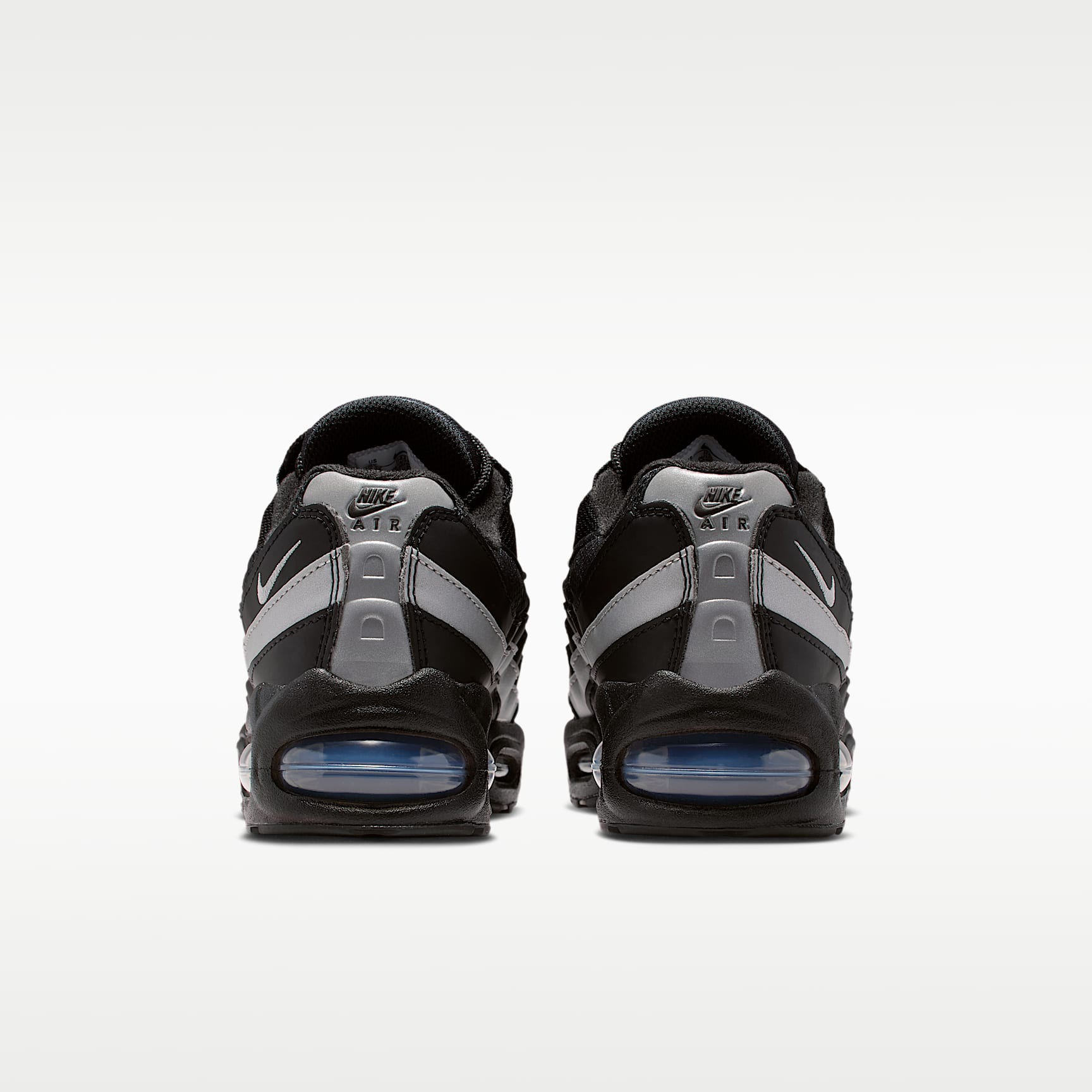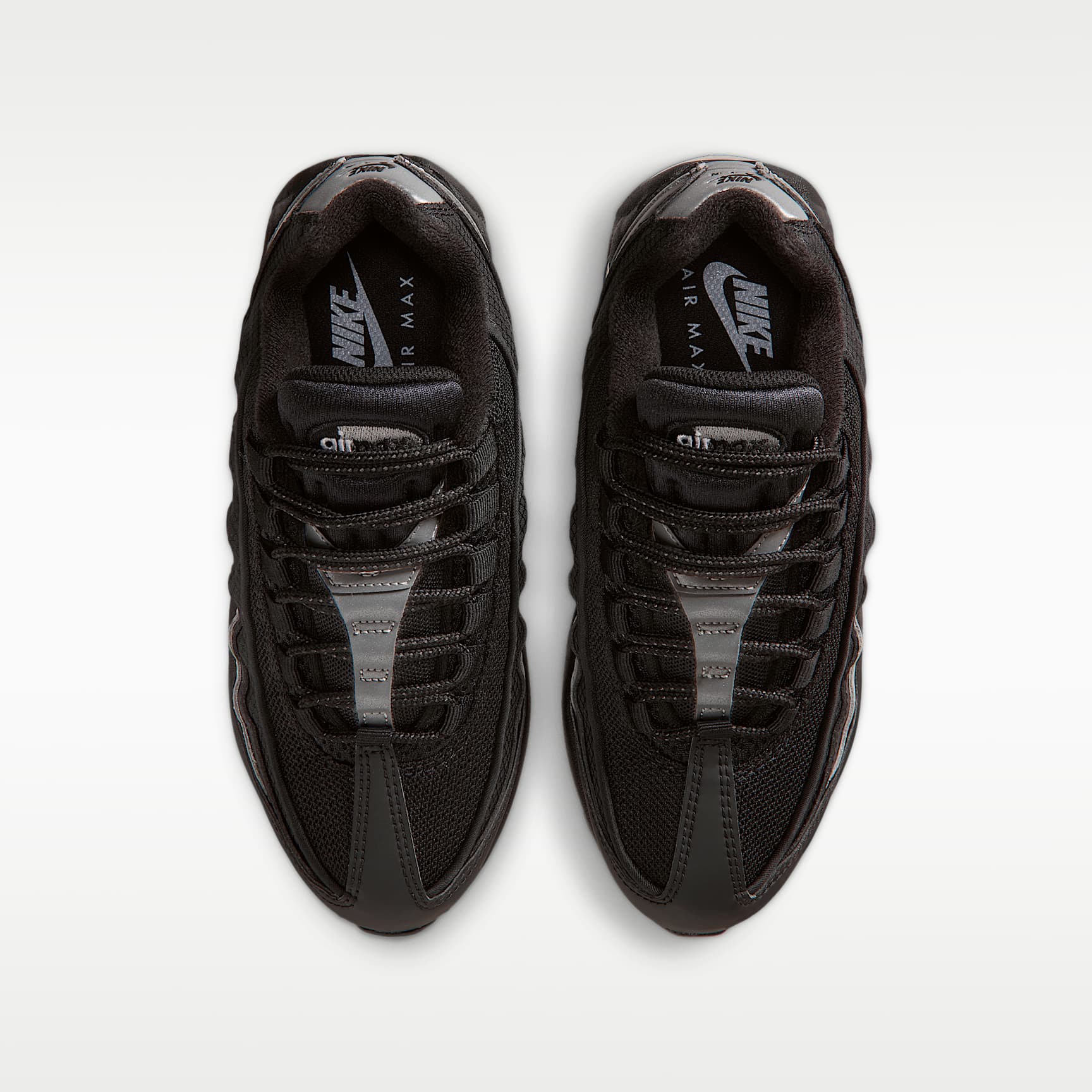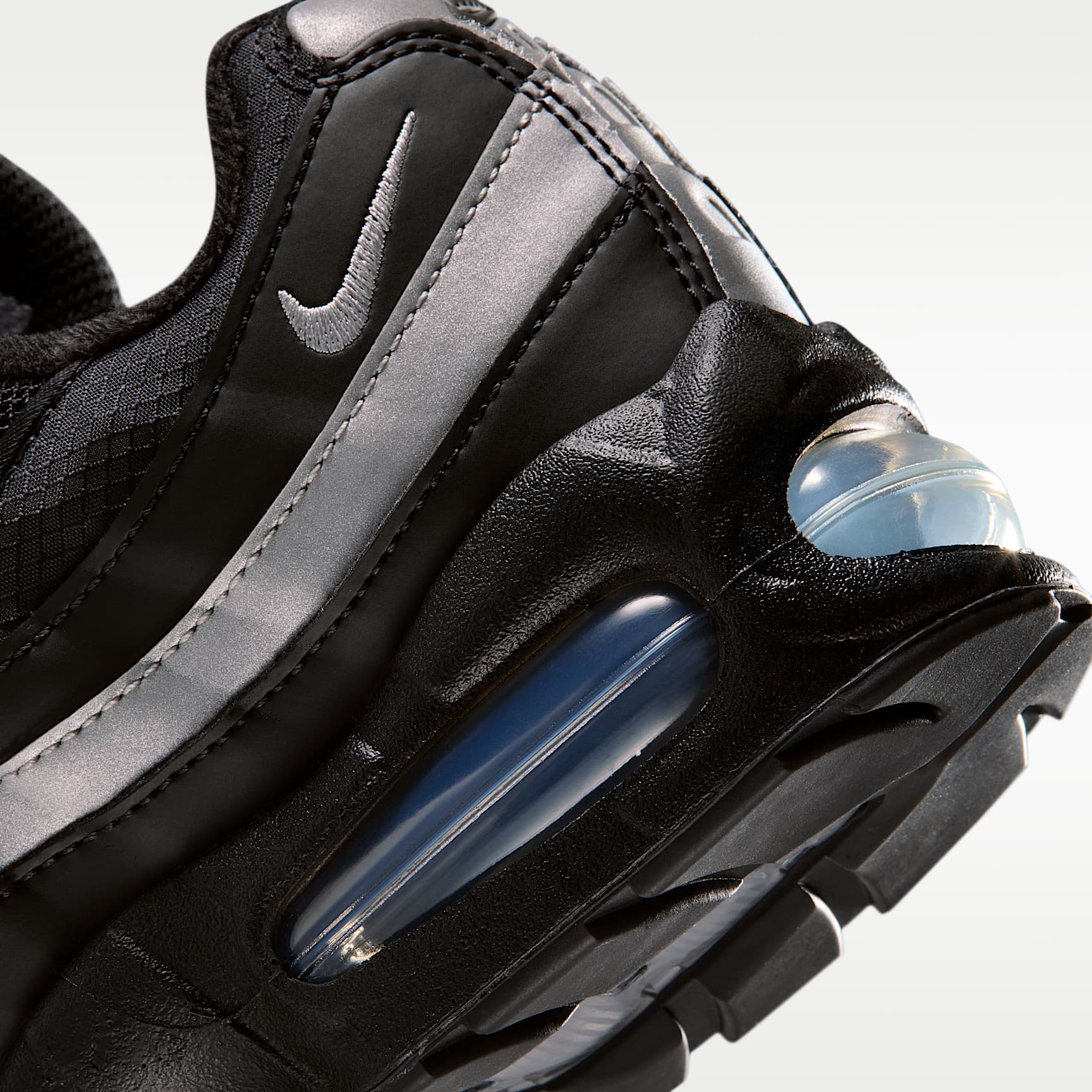 The AM95 doesn’t follow trends—it sets them. First in the Air Max lineup to break from the established AM look, the '95's airy mesh and rippling layers of synthetic leather are meant to mimic the human form. Thirty years later it still retains the same rebellious spirit, innovative tech and game changing comfort. Benefits * Upper draws inspiration from human anatomy with muscles inspiring the side panels and the spine informing the outsole and midsole design. * Upper mixes breathable mesh and other textiles with durable synthetic leather for a layered look that's built to last. * Visible Max Air unit helps provide lightweight cushioning. * Rubber outsole with flex grooves gives you durable traction. Product Details * Classic laces * Foam midsole