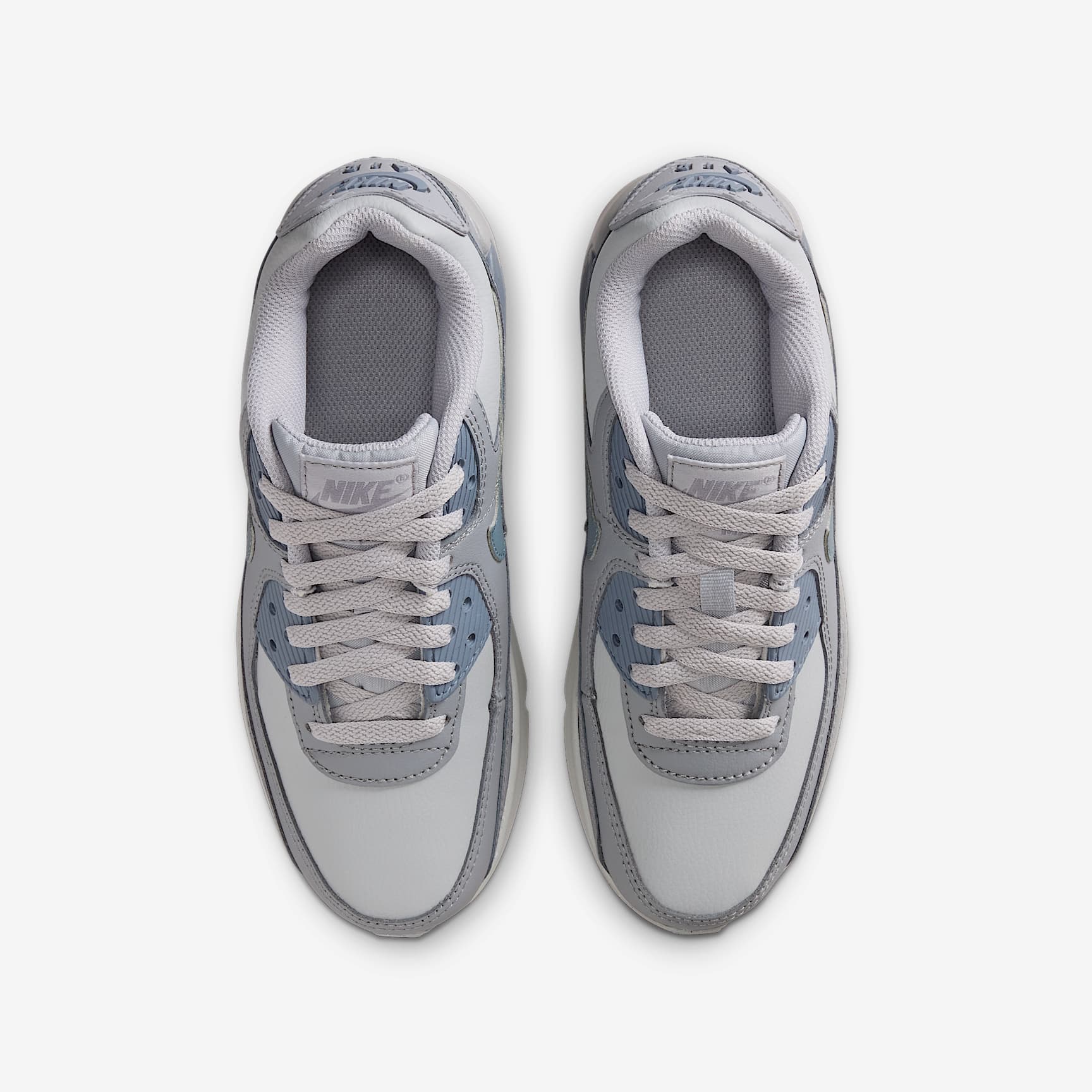 ICONIC AIR FOR KIDS. The Nike Air Max 90 LTR returns with an even better feel for you. Cushioning is softer and more flexible, the Max Air unit is tuned for growing feet and the shape gives your toes more wiggle room. With a design and look that are still the same, it brings a '90s fave to a new generation. Updated Classic The low-top kicks are made from real and synthetic leather that's durable and brings a classic feel. The shape gives toes more wiggle room and the fit helps keep growing feet comfortable. Cushioned Comfort The Max Air unit has a softer feel that's tuned right for kids. Plus, comfy and flexible foam makes for easy steps. Padded Design Extra padding around the ankle gives a plush feel so you can slip right into comfort. Natural Moves The full-length rubber sole features grooves for flexibility so every step feels natural.