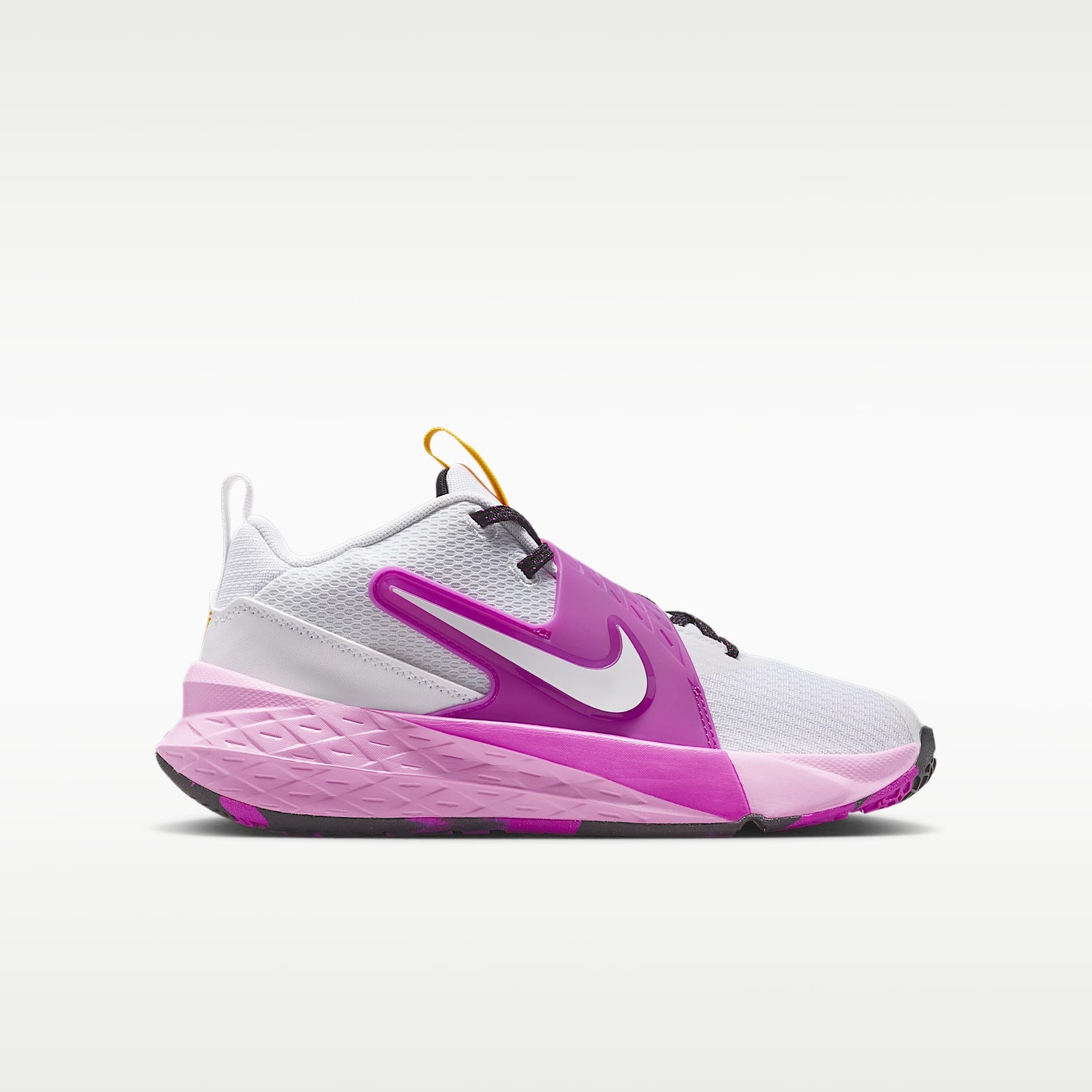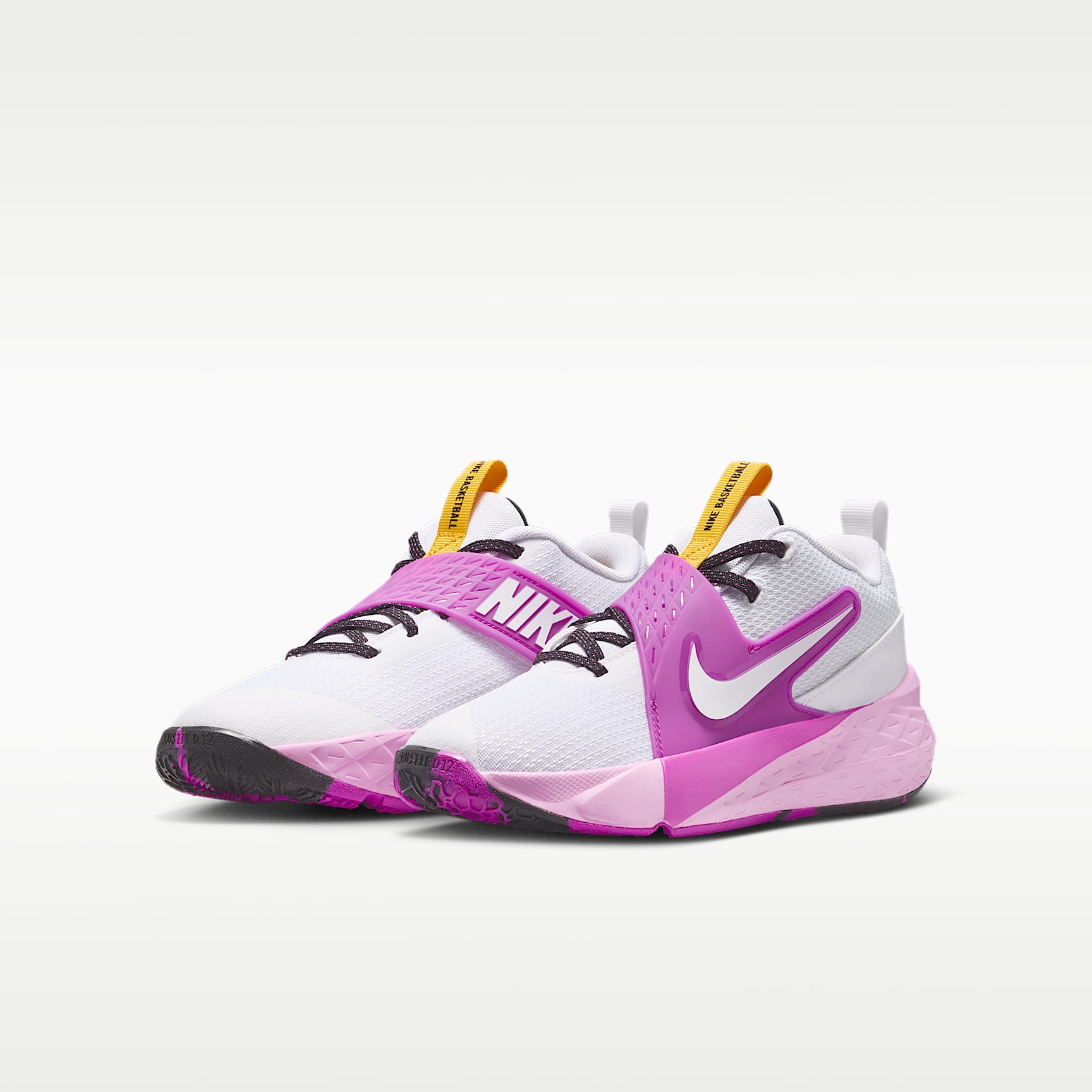 The Nike Team Hustle D is made for kids who love to hoop. Its strap closure system makes it easy to secure your fit fast. Underfoot, plush foam and a durable rubber outsole give you the cushioning and grip you need to confidently play on outdoor courts. Easy to Secure Classic laces pair with a hook-and-loop strap to help give you a secure, contained fit. We added oversized loops to the tongue and heel to help make these easy to pull on. Blacktop Ready A flexible, full-length rubber outsole offers the durability and grip you need to bring your best on outdoor courts and playgrounds. Plus, soft foam in the midsole cushions every step and jump you take. Keep Your Cool Breathable mesh in the upper helps keep your feet from overheating. Product Details * Classic laces * Pull tabs on tongue and heel