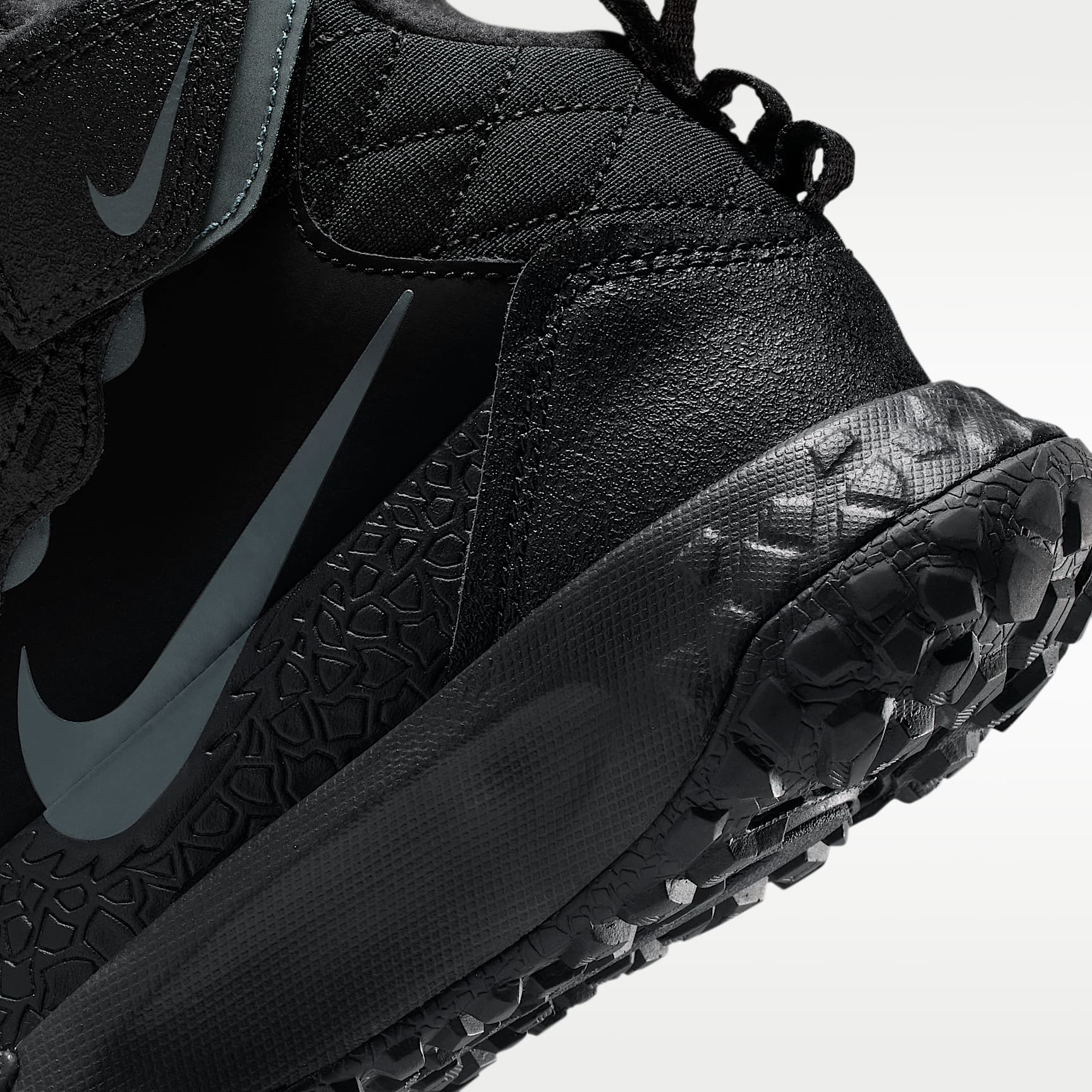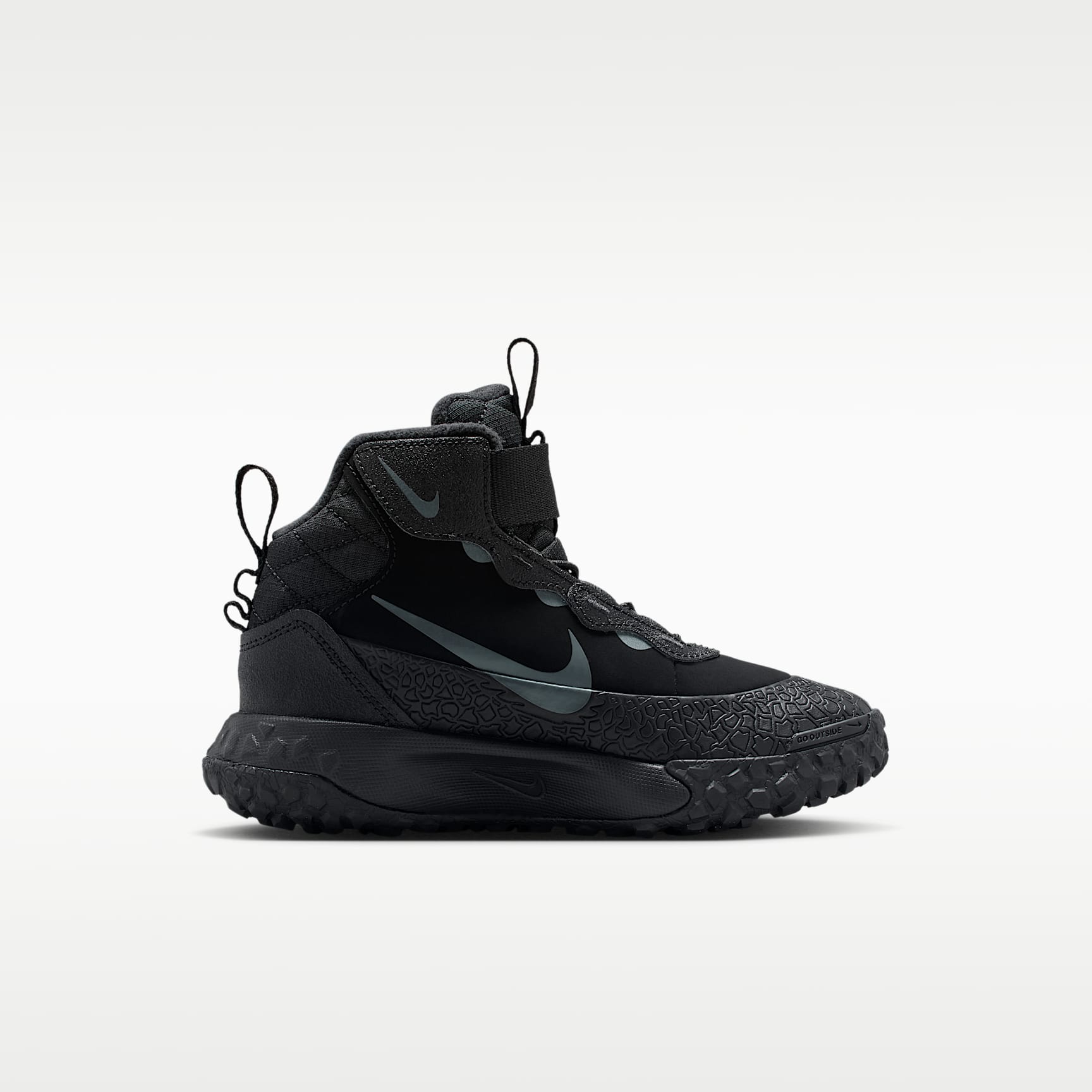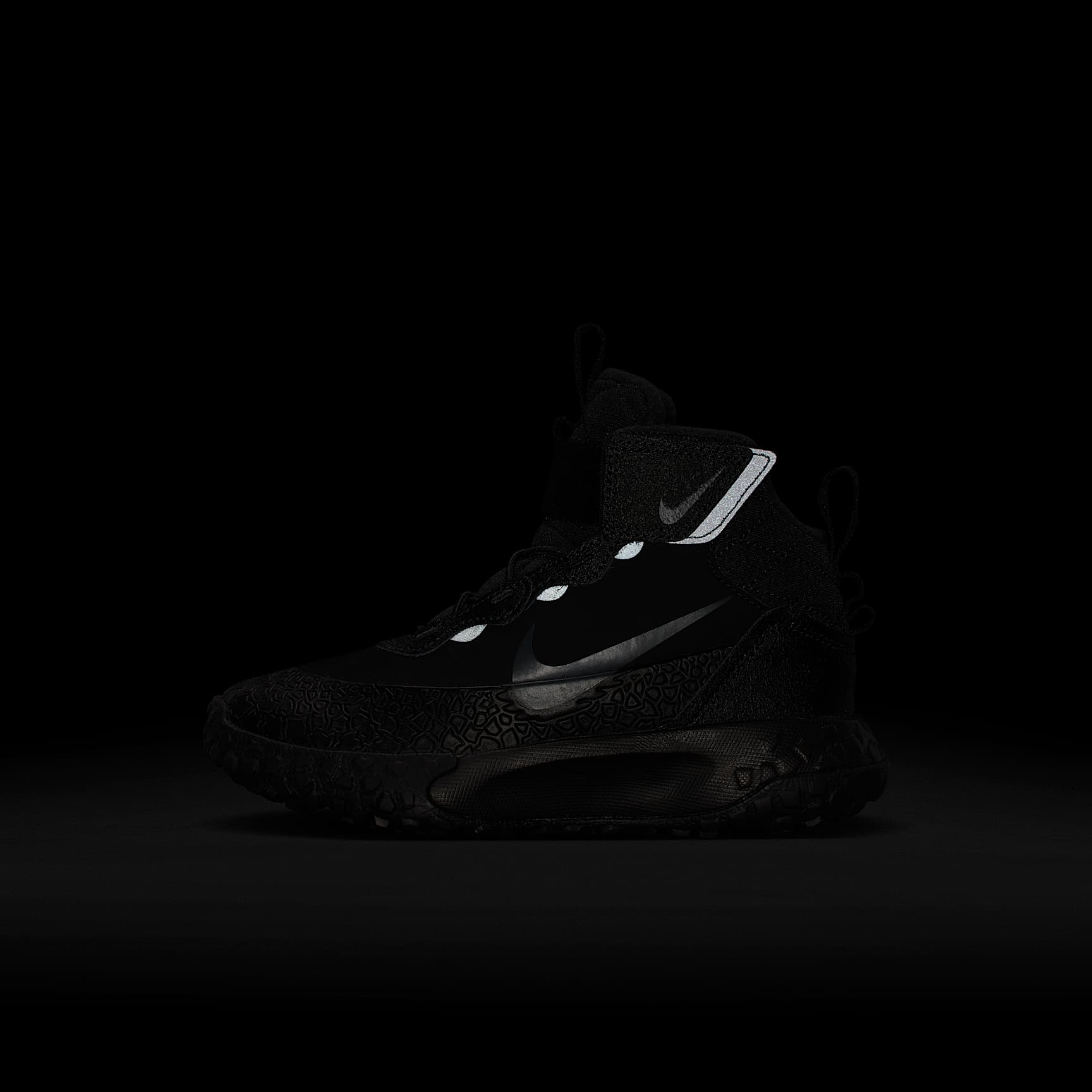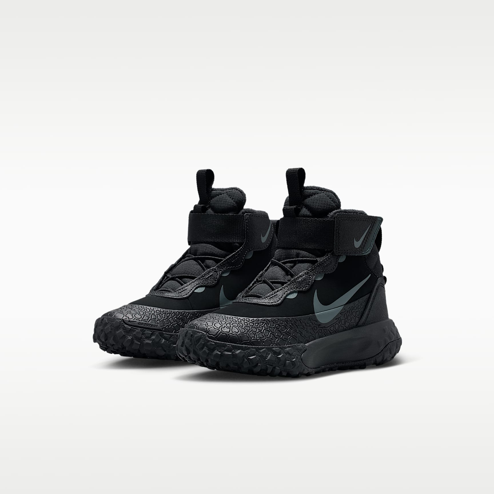 Grippy outsole for maximum grip, real and synthetic leather upper for durability, textured mudguard for protection against the elements – it's the ultimate boot for your little scout. Plus, a fleece lining and hook-and-loop tab across the ankle make for a cosy and secure fit on their roaming feet. Step into Exploration Rubber outsole with rugged tread pattern helps provide durable traction. Flex grooves in the outsole add flexibility, helping every step feel natural. Easy to Pull On Elastic laces and a hook-and-loop strap work with pull tabs to help make these easy to get on. A lowered back collar gives kids room to slide these over their heels. Warm and Cosy Details Quilted fabric around the collar pairs with a soft fleece lining to help keep little feet warm in cold weather. Product Details * Elastic laces * Reflective design details * Not intended for use as Personal Protective Equipment (PPE)