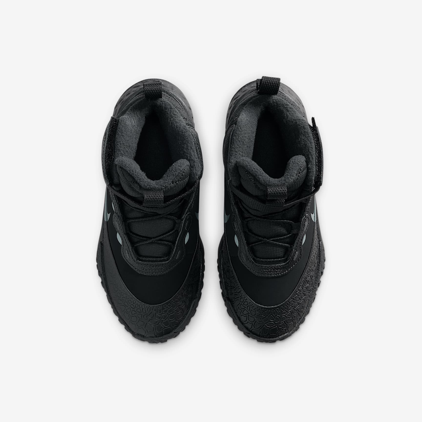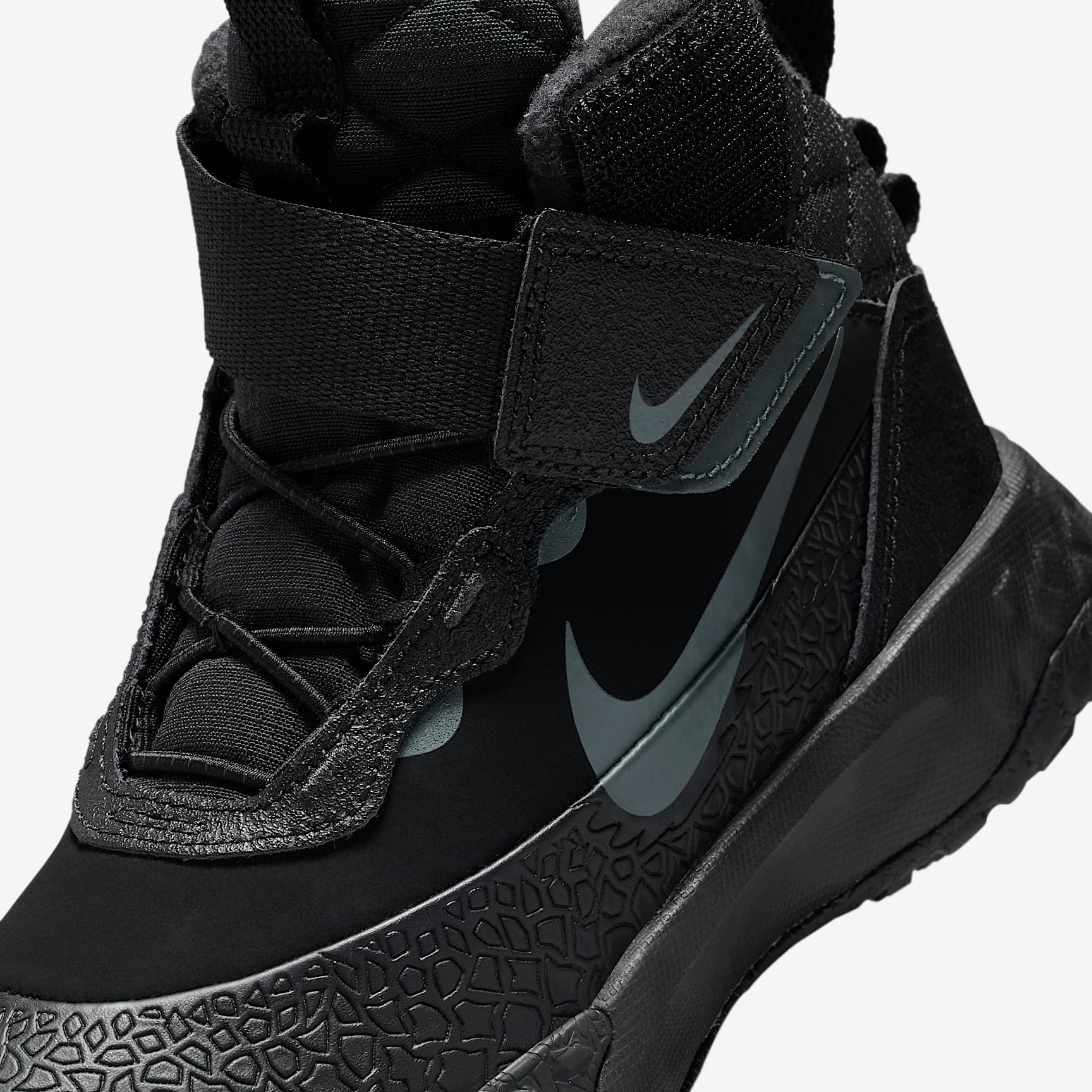 Grippy outsole for maximum grip, real and synthetic leather upper for durability, textured mudguard for protection against the elements – it's the ultimate boot for your little scout. Plus, a fleece lining and hook-and-loop tab across the ankle make for a cosy and secure fit on their roaming feet. Step into Exploration Rubber outsole with rugged tread pattern helps provide durable traction. Flex grooves in the outsole add flexibility, helping every step feel natural. Easy to Pull On Elastic laces and a hook-and-loop strap work with pull tabs to help make these easy to get on. A lowered back collar gives kids room to slide these over their heels. Warm and Cosy Details Quilted fabric around the collar pairs with a soft fleece lining to help keep little feet warm in cold weather. Product Details * Elastic laces * Reflective design details * Not intended for use as Personal Protective Equipment (PPE)