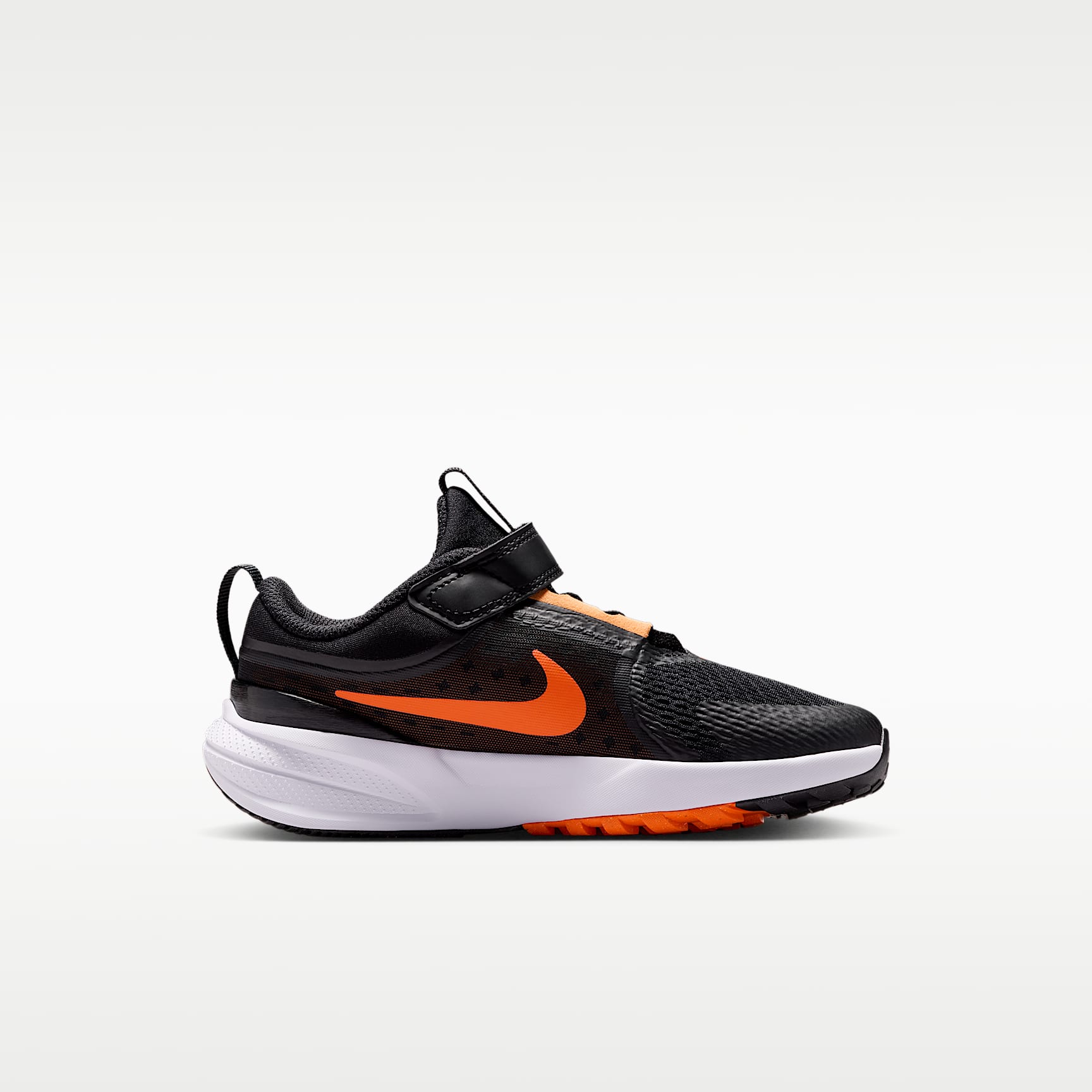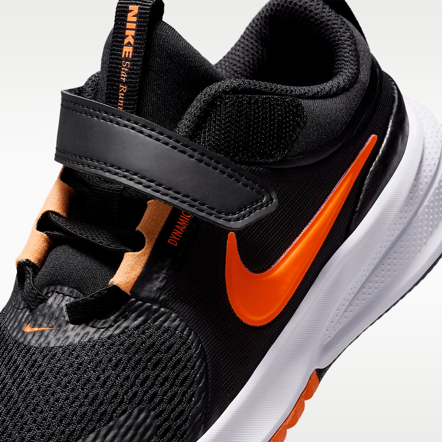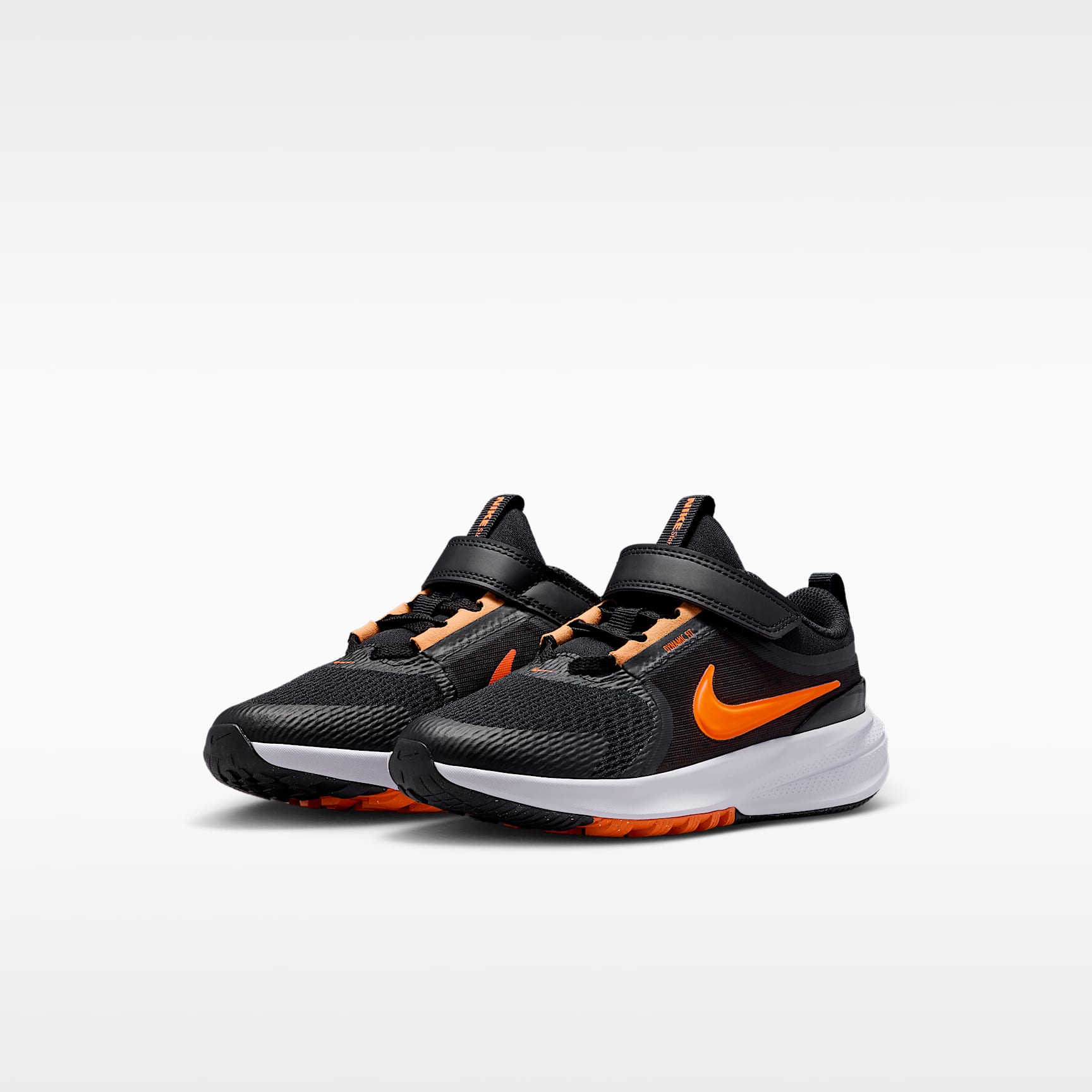 Breathable and lightweight, the Nike Star Runner 5 will have your little one dreaming of all the ways they can run and play. Springy cushioning and a secure fit help them make the most out of playtime. Keep Cool Breathable mesh and airy knits keep the upper lightweight and flexible, helping little feet stay cool and comfortable. We reinforced the toes for added durability. Secure Fit A dynamic fit band wraps around the middle of the foot and works with stretchy elastic laces to give kids a stable, held-in feel. An adjustable hook-and-loop strap helps kids secure their fit fast. Spring into Action We packed the midsole with foam, helping add soft and springy cushioning to kids' every stride. Get a Grip Durable rubber lugs on the outsole help provide added traction where little runners need it most. Product Details * Elastic laces * Pull tab on tongue