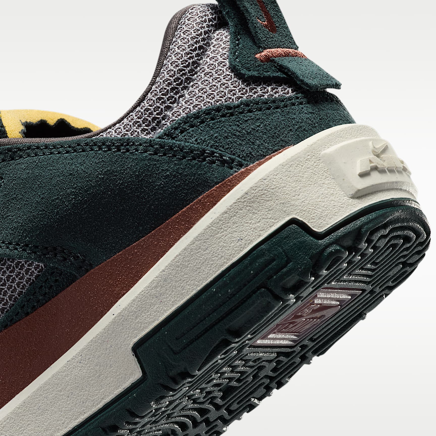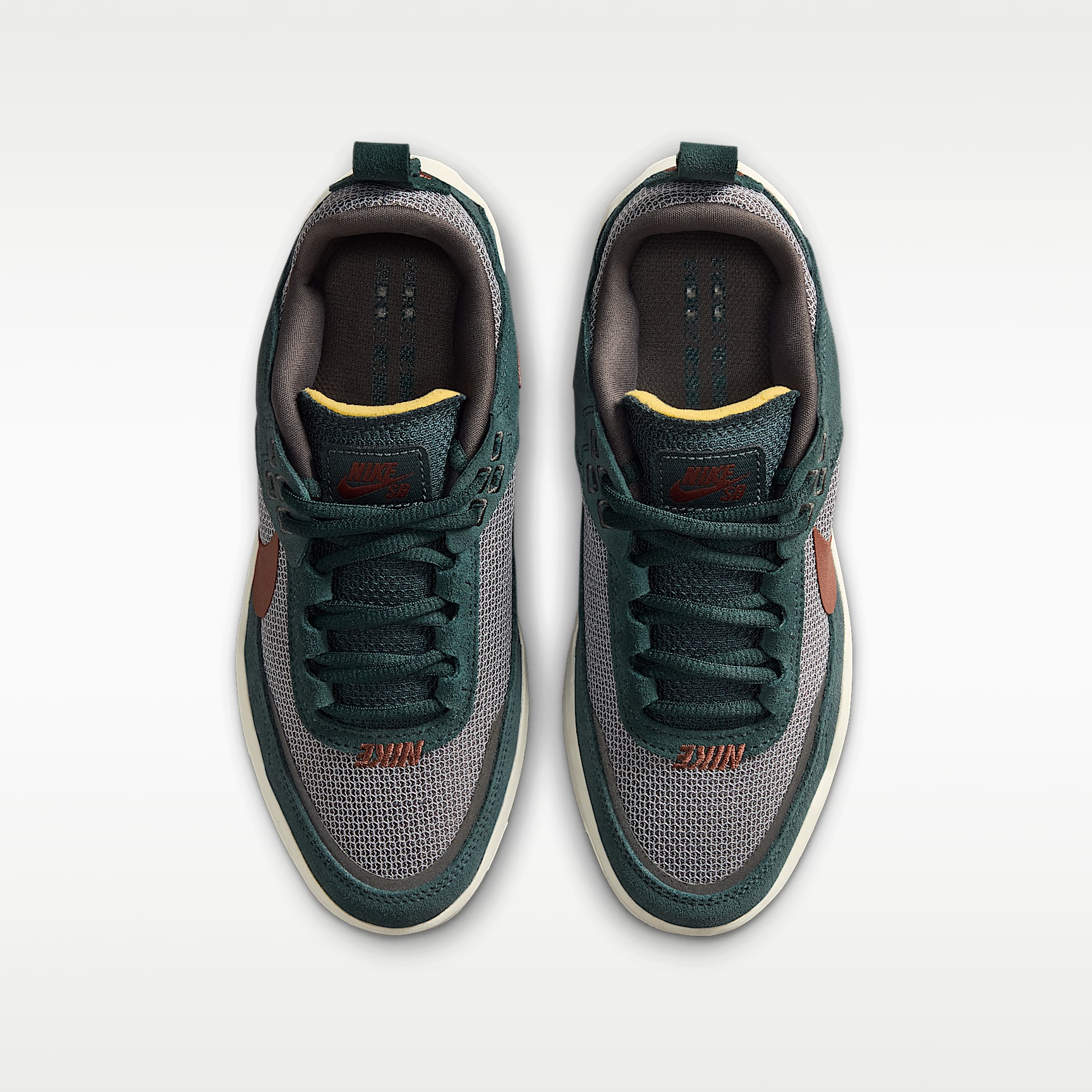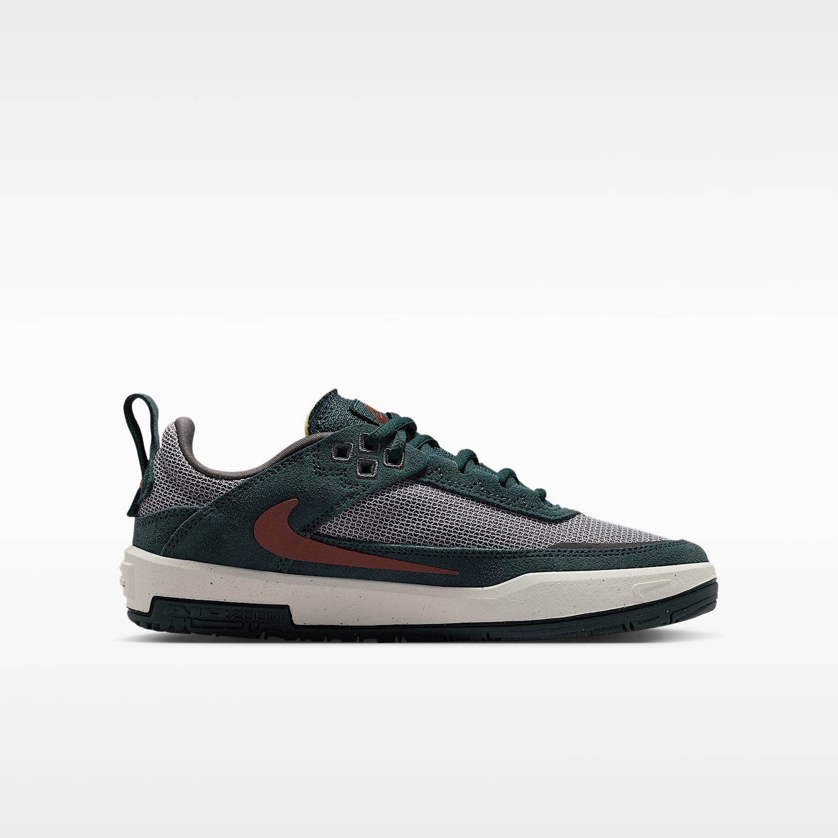 Finally, a skate shoe made just for you! The Nike SB Day One is the first Nike skate shoe made from the ground up specifically for kids. Its skate-specific tread and Zoom Air unit help give you the grip and cushioning you need to keep pushing and trying new tricks. We added mesh up top to help make them breathable while durable suede overlays break in easily to help give you the flick and feel you love. Air You Can Feel Snappy Zoom Air unit helps provide added heel cushioning to give you the comfort you need to skate all day. Boardfeel We know how important it is to be able to feel the board under your feet—it's what helps you control your board. The lighter and more flexible the shoe, the better the boardfeel. With that in mind, we pulled out as much excess foam as we could from these shoes to reduce their overall weight and increase their flexibility. Durable and Breathable Durable suede overlays break in easily to help give you that flick and feel you love. Mesh adds breathability so you never have to end your skate session early because of hot feet. Cupsole Construction? What's That? We used a process called cupsole construction to make these shoes. It means the bottom and top of the shoe are two separate pieces that then get put together. More Benefits * Rubber dipped lace tips help add durability and prevent fraying. * Suede pull tab on the heel helps make these easy to get on. Product Details * Classic laces * Foam in the midsole