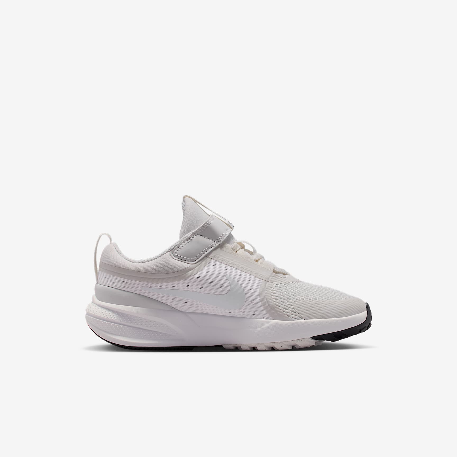 Breathable and lightweight, the Nike Star Runner 5 will have your little one dreaming of all the ways they can run and play. Springy cushioning and a secure fit help them make the most out of playtime. Keep cool Breathable mesh and airy knits keep the upper lightweight and flexible, helping little feet stay cool and comfortable. We reinforced the toes for added durability. Secure fit A Dynamic Fit band wraps around the middle of the foot and works with stretchy elastic laces to give kids a stable, held-in feel. An adjustable hook-and-loop strap helps kids secure their fit fast. Spring into action We packed the midsole with foam, helping add soft and springy cushioning to kids' every stride. Get a grip Durable rubber lugs on the outsole help provide added traction where little runners need it most. Product details * Elastic laces * Pull tab on tongue