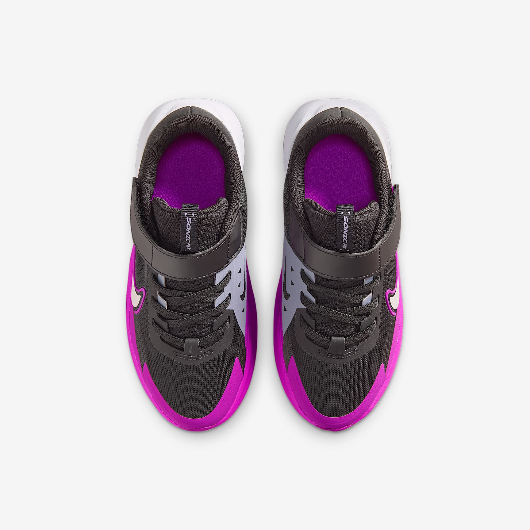 Fuel their need for speed in the Nike Sonic Fly. Designed for fast runners in the making, it pairs a lightweight design with soft, springy foam that helps add energy to every stride. Responsive Cushioning We packed the midsole with soft and springy foam that absorbs impact and adds energy to your kiddo's every stride. Lightweight But Durable Less weight means more speed. Mesh throughout the upper helps keep these shoes lightweight and breathable. We reinforced the toe and sides for added durability. Support They Can Feel Bands at the side of their feet work with the laces to add stability and a secure feel. More Benefits * Rubber outsole with Waffle-inspired tread pattern helps provide durable traction. * Elastic laces and a hook-and-loop strap make these shoes easy to take on and off. Product Details * Elastic laces * Pull tabs on heel and tongue