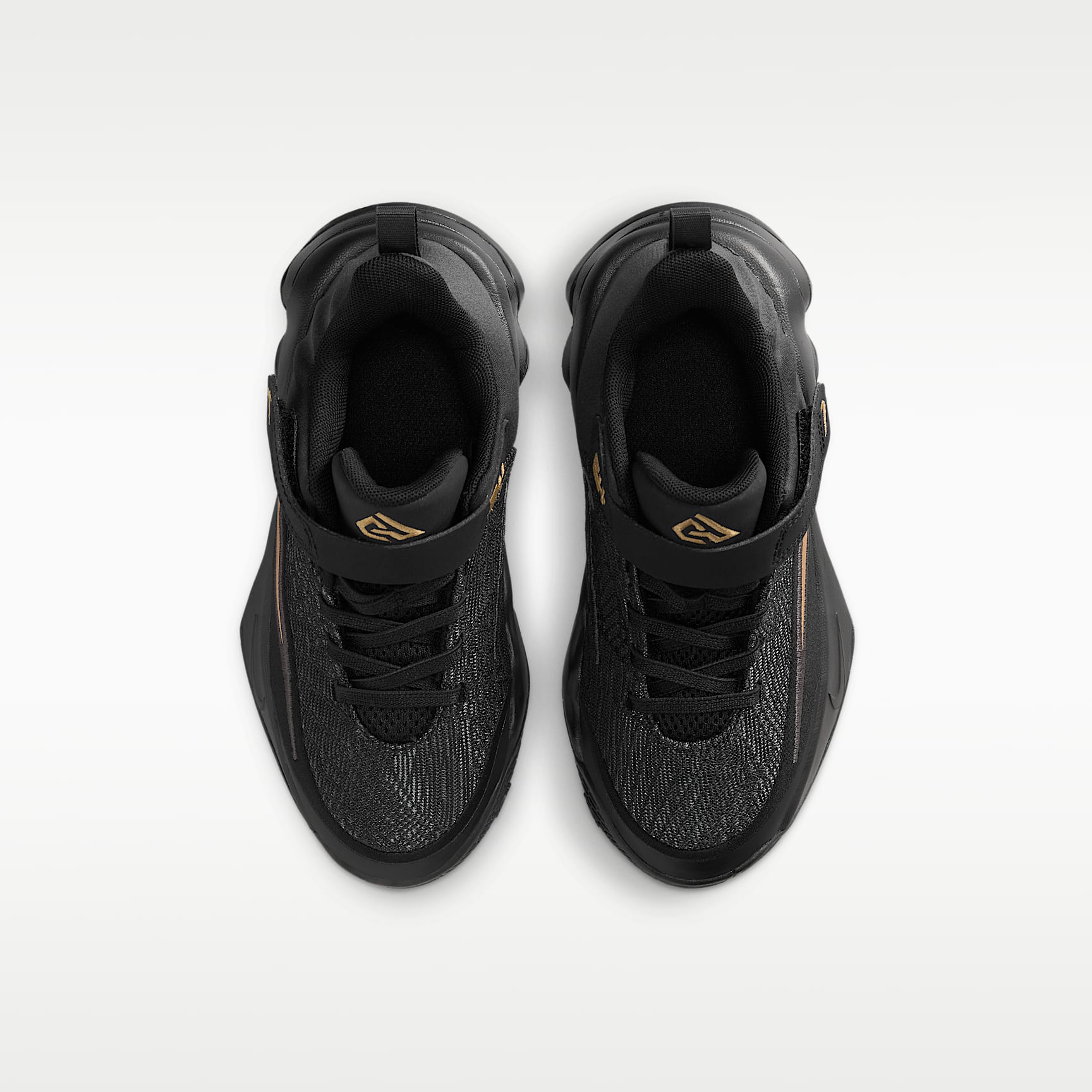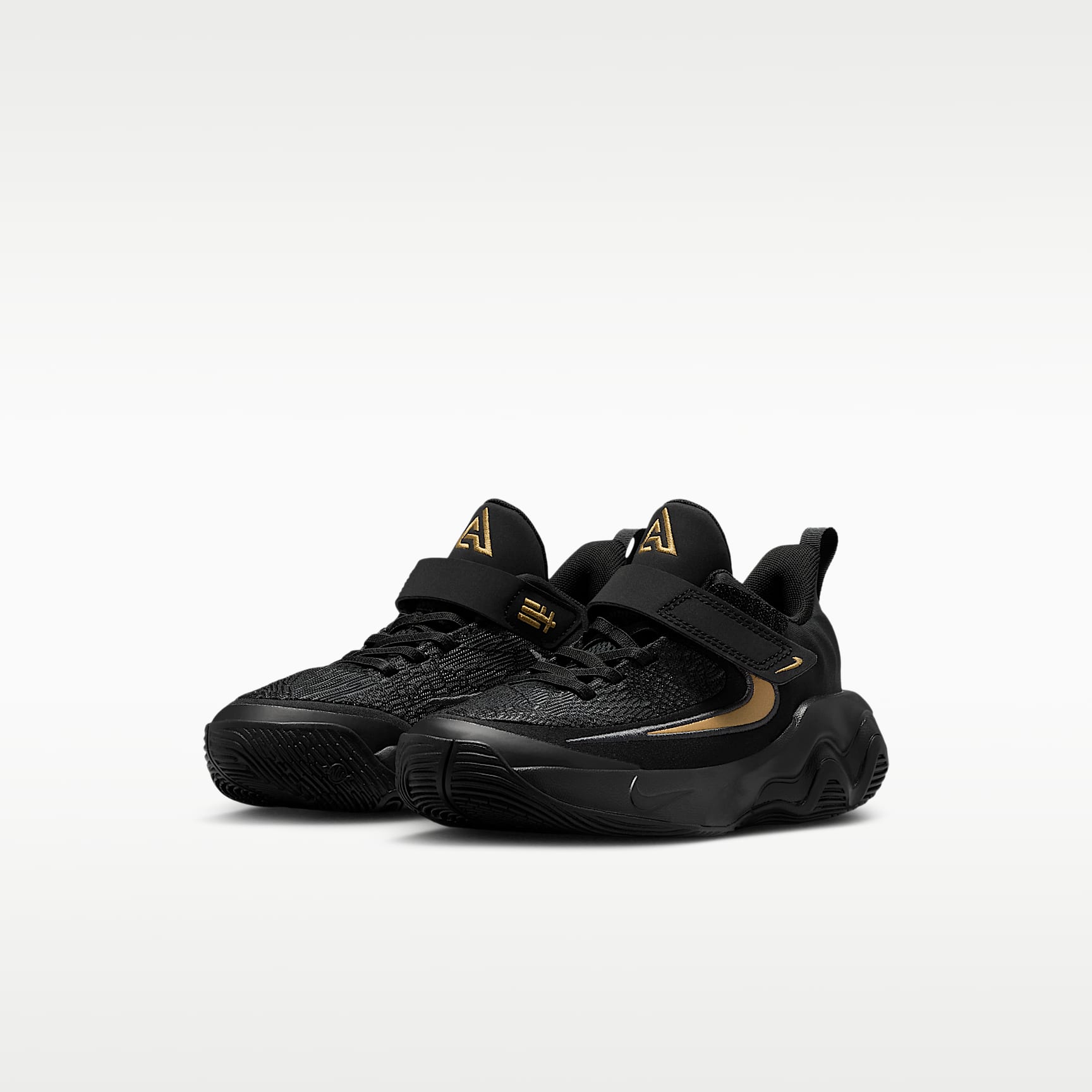 Lightweight and breathable, the Giannis Immortality 4 helps tomorrow's MVPs feel quick and cool. Two layers of springy foam and durable, multi-directional traction make it a win for indoor and outdoor play. An adjustable strap lets kids quickly secure their fit and start building a legacy all of their own. Easy to put on The laces work with a hook-and-loop strap and oversized pull tab on the heel to help kids easily pull these on and lock in their fit. Smooth moves Extra padding in the heel helps provide a supportive feel and a smooth transition as kids move from heel to toe. Easy Steps Traction in every direction helps give kids the control and confidence they need to play on indoor and outdoor surfaces. Cool on the court The breathable knit upper helps keep little feet cool while they play. The embroidered logos add swag worth showing off. Product details * Foam midsole * Rubber outsole