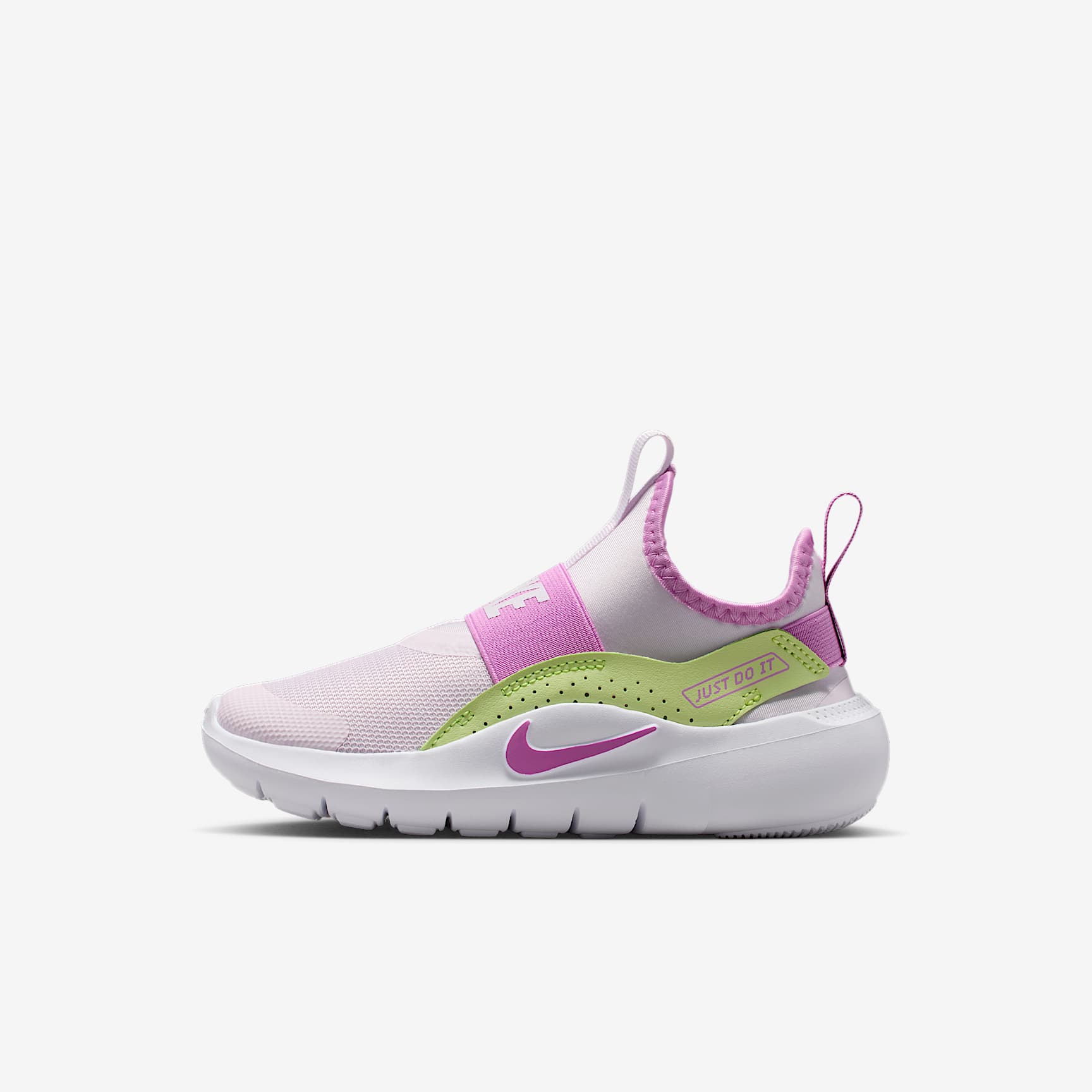 Designed for getting into fun fast, the Flex Runner 4 is made to be easy for kids to pull on. Its bootie-like design is flexible with stretchy straps that secure their fit. Flex grooves in the outsole allow little feet to move naturally, helping kiddos find their footing. What's New You spoke and we listened. For the Flex Runner 4, we updated the fit of the midfoot strap and the collar to help make these easy for kids to slip on and comfortable enough to wear all day. Pull on and Go Pull tabs on the heel and tongue work with a stretchy inner sleeve to help make these shoes easy for kids to put on themselves. Elastic straps run behind the heel and across the top of the foot to provide a snug, secure feel. Play Anywhere Flex grooves in the outsole add flexibility, helping every step feel natural. Multisurface traction works with sturdy foam that wraps around the heel to provide grip and stability when kids shift directions. Durable Comfort and Support We reinforced the toe box and used durable materials throughout to help these kicks stand up to how kids play. Soft, springy foam in the midsole helps cushion their every step.