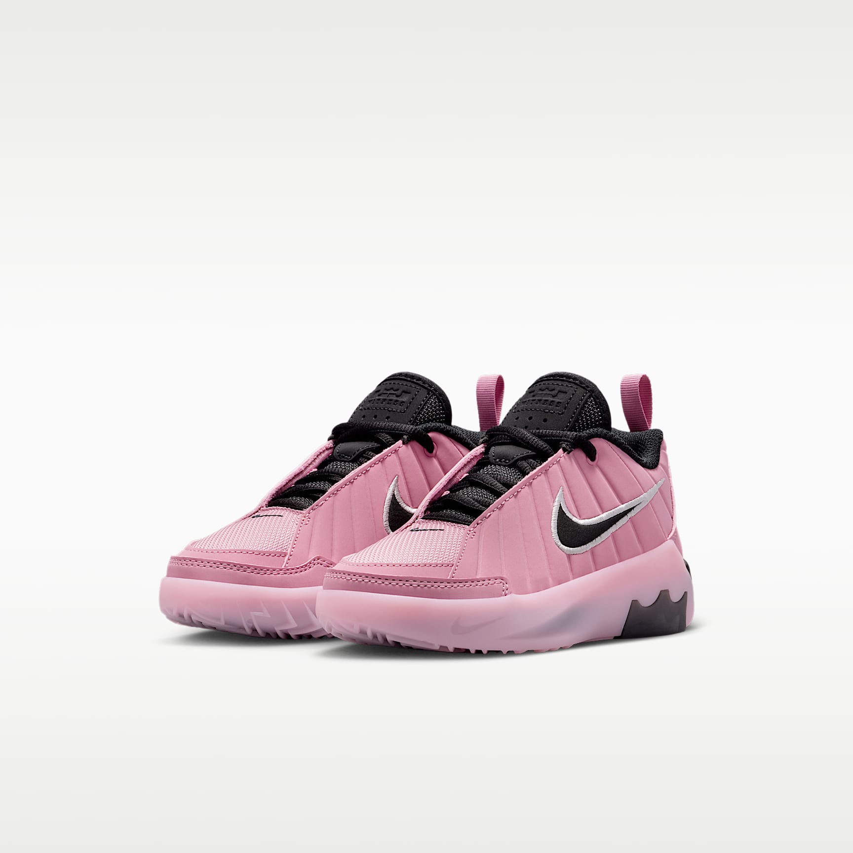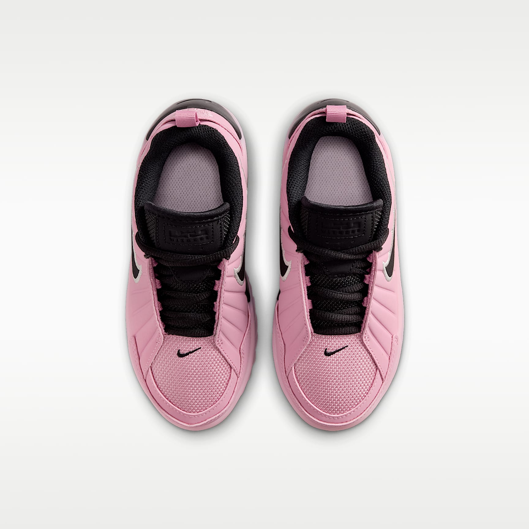 To play his best, LeBron needs shoes he can count on. He needs cushioning, grip and stability. With springy foam, synthetic leather and a durable rubber outsole, the LeBron Witness 9 delivers, giving the King containment and soft landings. Plush Ride Plush foam midsole helps provide responsive cushioning so kids feel light on their feet from tip off to the final buzzer. Lock In Synthetic leather sidewalls work with the laces to provide optimal containment and a secure fit. Play Anywhere The outsole is made of a rubber compound that gives you optimal lateral support both indoors and outdoors. It stretches from the toe tip around the heel for added durability. Product Details * Classic laces * Rubber outsole