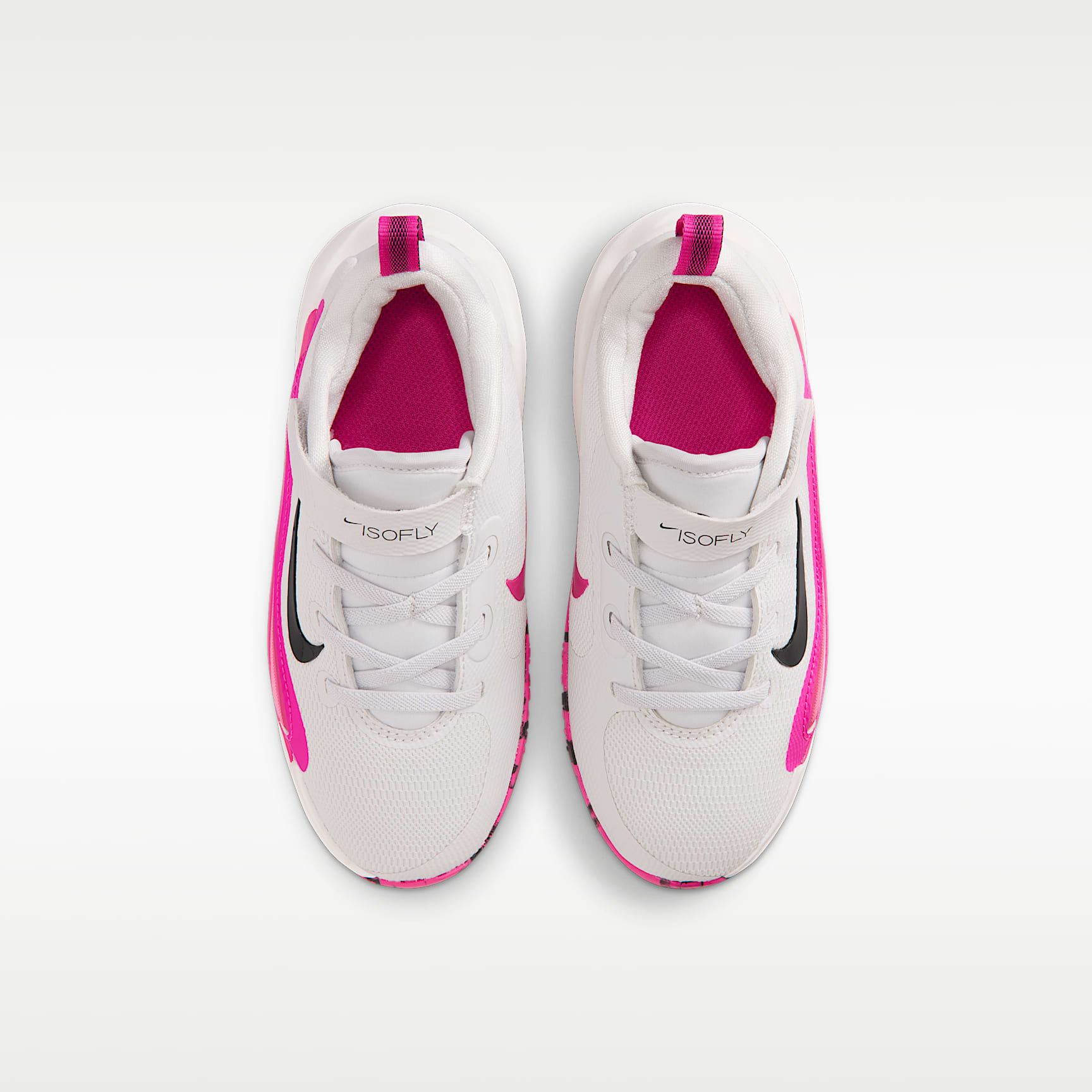 Lace up the Nike IsoFly to help your little one feel lightweight and bouncy as they play. With durable traction, it provides sticky grip on the playground and inside on a hardwood court. Extra cushioning underfoot and breathable material up top help kiddos run and jump in comfort. Plus, a hook-and-loop strap and elastic laces help make getting them on an easy win. Keeps Them Cool Breathable mesh upper helps keep little feet cool as they play. Sharp Cuts, Soft Feel Foam on the upper and in the midsole helps cushion little feet so kiddos can play in total comfort. For Every Surface Durable traction helps kids play their best, whether it's at practice, in a game or out on the playground. Product Details * Elastic laces * Pull tab on heel