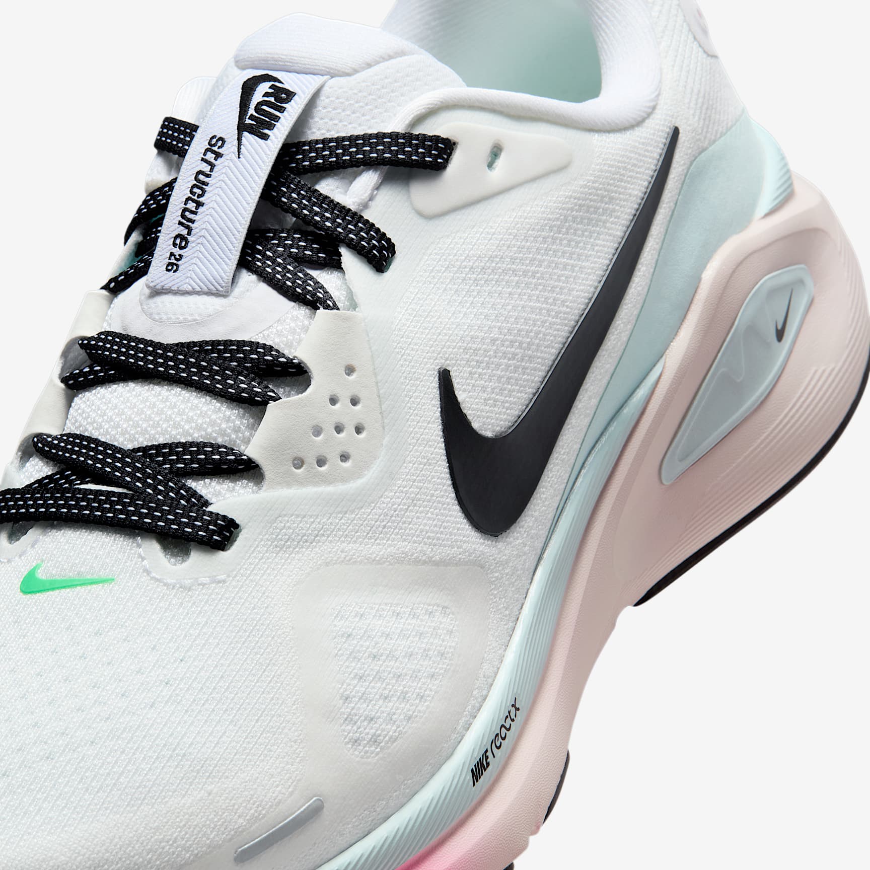 Full-length foam plus arch support equals our most steady ride. The supportive cushioning in the Structure 26 provides steadiness for everyday runs. A full-length ReactX midsole delivers a cushioned yet stable transition from heel to toe-off. Plus, a tried-and-tested midfoot support system wraps around your arch and heel to provide a firm platform. Plush upper The plush collar and tongue, along with the engineered mesh upper, provide comfort, support and an improved fit. Midfoot Support Our midfoot support system helps to slow the rate of ankle eversion and provides a stable platform for transition and toe-off. ReactX foam The full-length ReactX midsole delivers cushion, comfort and increased energy return. It's 13% more responsive than previous React technology. What's new? * With ReactX foam underfoot and a higher stack height for stability and support * Lighter, more flexible rubber in the forefoot of the outsole for cushioning * High-abrasion rubber in the heel for increased durability Product details * Weight: 262g approx. (women's size 6) * Heel-to-toe drop: 10mm * Reflective design details * Not intended for use as personal protective equipment (PPE)
