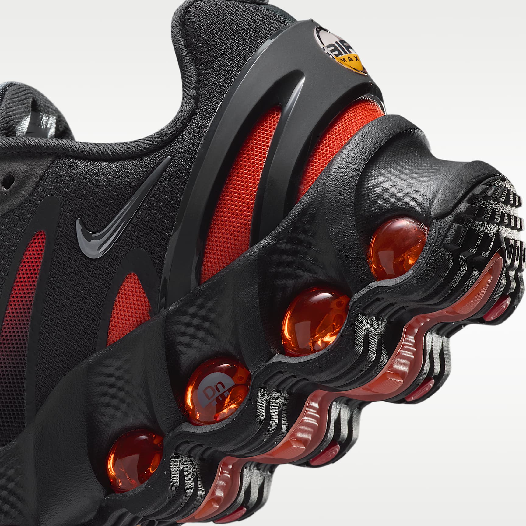 More Air, less bulk. The Dn8 takes our Dynamic Air system and puts it into a sleek, low-profile package. Powered by eight pressurised Air tubes, it gives you a bouncy sensation with every step. Enter an unreal experience of movement. Unreal cushioning Our Dynamic Air system features dual-chambered tubes with tuned pressure levels. This means air shifts within each set of tubes as you step, providing a cushioning experience that feels custom made. Unreal motion The Dynamic Air system sits directly on top of the rubber outsole to get you as close to the ground as possible for a smoother transition. Plush foam is placed underfoot for added comfort. Unreal flow The sculpted upper is made with lightweight closed mesh on top, while slashes at the sides reveal open mesh for more breathability. Design lines help radiate energy throughout your look. More benefits * Flex grooves in the outsole help every step feel natural. * The plastic heel clip helps hold your foot in place for added containment. * The extra layer across the toe tip adds durability. Product details * Classic laces * Reflective accents * Not intended for use as personal protective equipment (PPE)