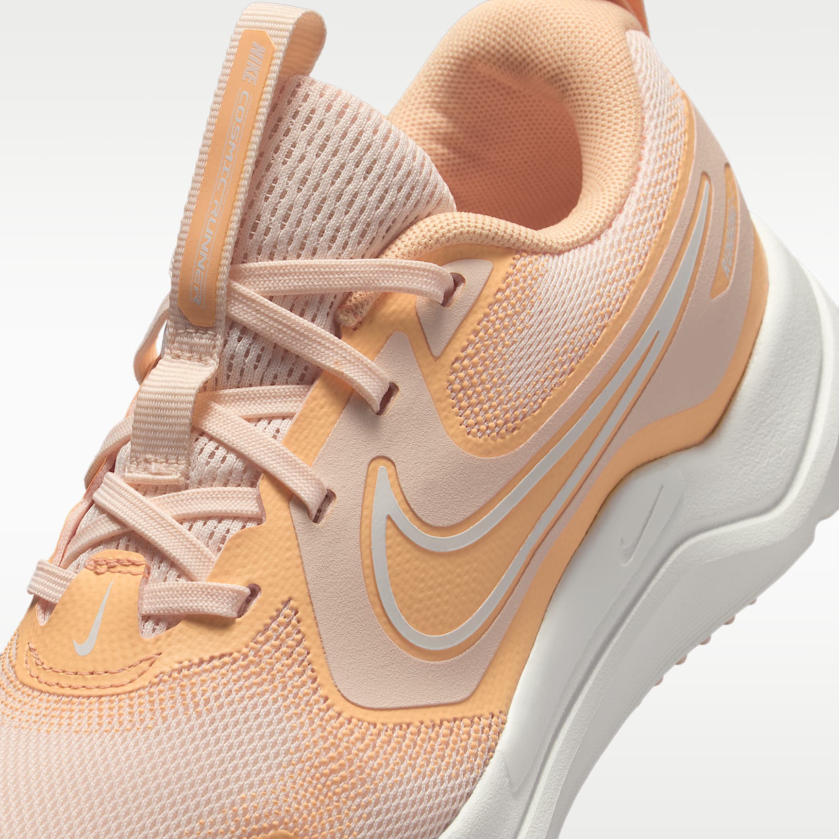 The world is your racetrack and slowing down isn't in your vocabulary. Loaded with stable cushioning and durability, the Nike Cosmic Runner helps support your every stride, so you can leave the competition in the dust. Breathability meets durability Lightweight mesh in the upper helps keep your feet cool. We reinforced the toes, sides and heels for added durability. Cushioning that keeps up Springy foam helps cushion your every stride, giving you the soft and supportive feel you need to go the distance. Ready, set, run Durable two-part rubber outsole gives you the grip you need to confidently run on multiple surfaces. Product details * Classic laces * Pull tabs on the tongue and heel
