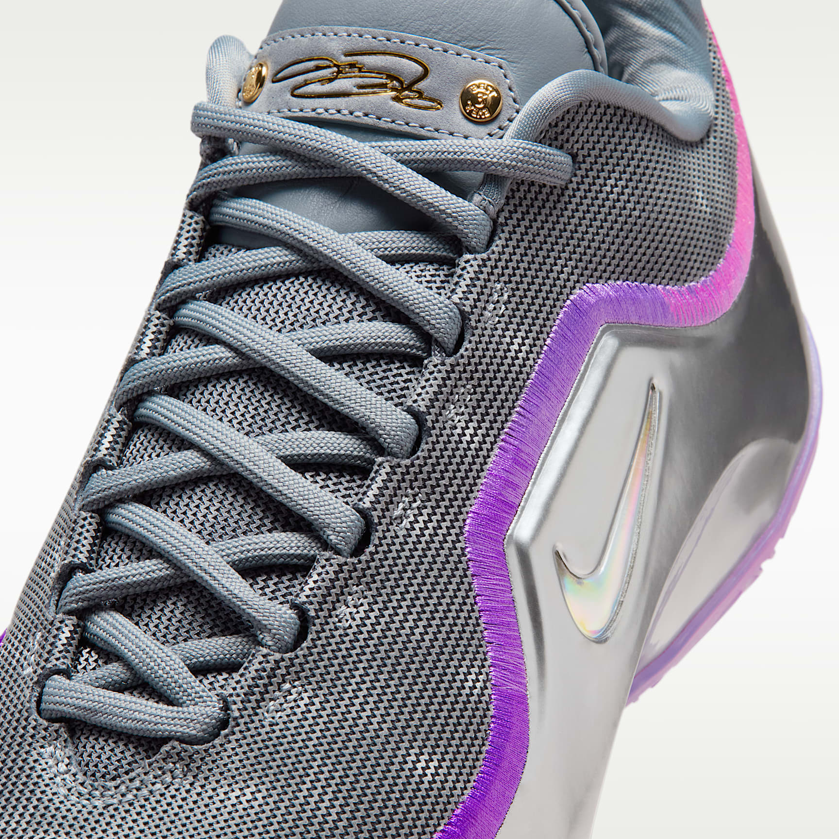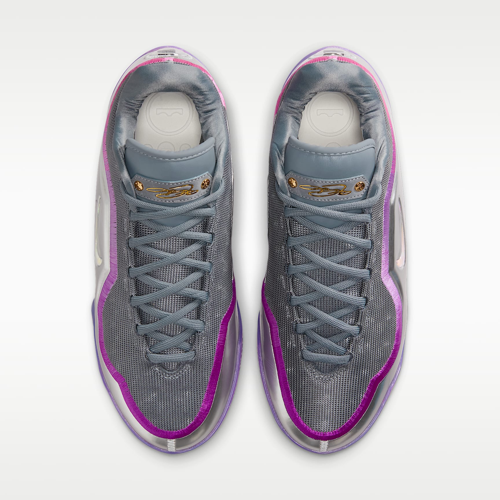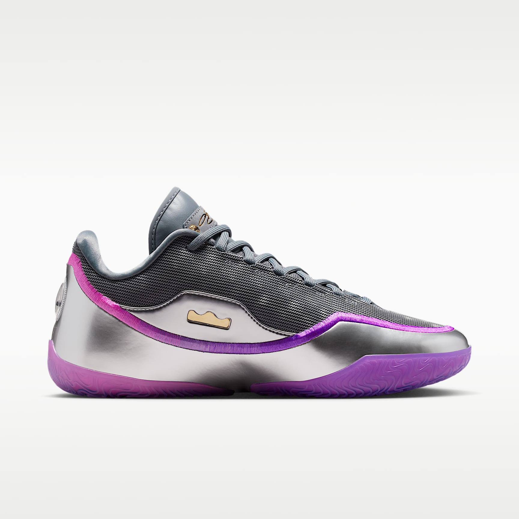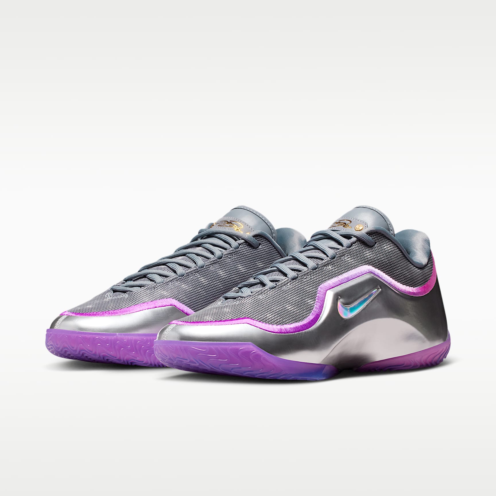LeBron's carried the game for two decades. But what if we could help lighten the load? Enter the LeBron XXIII. They offer peak lightweight responsiveness thanks to springy, full-length ZoomX foam – perfect for the high-speed demands of the modern game. 'Bubble Boy' pays homage to Bron's 4th championship captured in The Bubble. Gold Star Bron’s 2020 title in The Bubble might have been the toughest of the four, considering the circumstances. But LeBron led as only he could and came out with another crown. The silver iridescent upper is reminiscent of an actual spherical bubble's exterior. Both Swoosh logos are jewelled—salutes to the hard-earned 4th ring. And purple hits pay homage to the franchise Bron helped carry to a 17th championship. Unreal Bounce The LeBron XXIII is the ultimate in lightweight responsiveness thanks to some of our best basketball technology. A full-length ZoomX drop-in midsole offers optimal bounce. And, a carbon-fibre plate helps keep your foot stable when making sudden movements while helping add a bit of speed. Stay Sturdy Whether you're attacking the paint or applying perimeter pressure, the innovative, crown-shaped containment system will help you stay locked in when on the move and holding your ground. Light Work With an engineered jacquard and premium bootie lining, the LeBron XXIII is the ultimate in lightweight luxury, so you can get to your spots and keep your cuts razor sharp. Quick Moves A sticky, squeaky multi-directional traction pattern offers you regal court feel, you'll stay a step ahead of all pretenders to the throne.