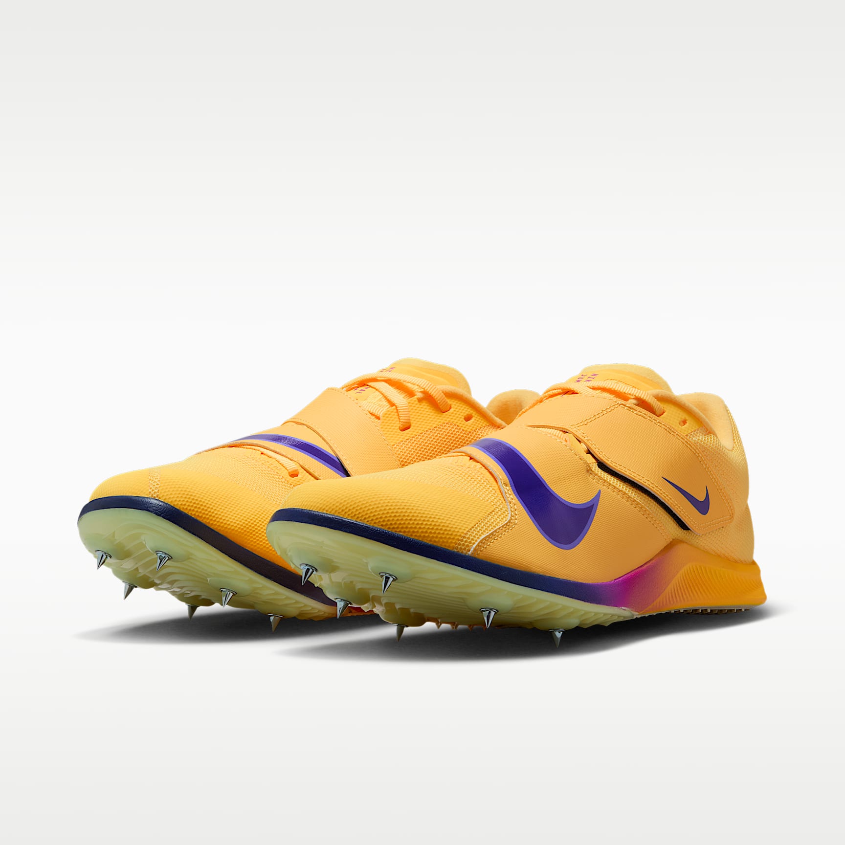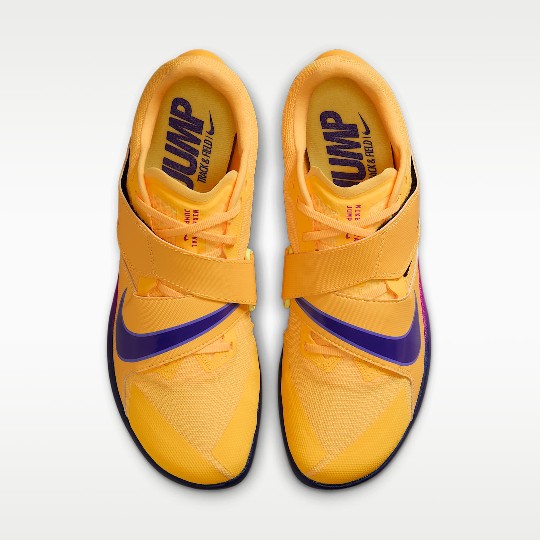 A lightweight heel and wider shoe base help you jump at full throttle. Pop a personal best in a model specifically designed for jumping events. Forefoot spikes and secondary heel traction give you confidence in wet or dry conditions on various track surfaces and different takeoff boards. A thick, yet lightweight cushioned heel and a wider shoe base help withstand the demands of jumping at full throttle. Optimal Containment Diagonal midfoot strap provides optimal containment while allowing you to quickly readjust your spikes in between jumps. The design helps make sure your foot doesn’t move around during jumping. Cushioning for Your Event Higher-stacked midfoot and heel cushion provide a smooth transition and takeoff. That combination also offers supportive cushioning while jumping. Spring in Your Jump Six specifically placed forefoot spikes offer traction. Combined with the grippy texture on the heel, it delivers dependable traction on various surfaces. More Benefits * Lightweight, snappy plate gives you aggressive sturdiness and stability that’s ideal for both sprinting and takeoff. * Padded collar delivers support and comfort. Product Details * Designed for long jump, triple jump, high jump and pole vault * Foam midsole