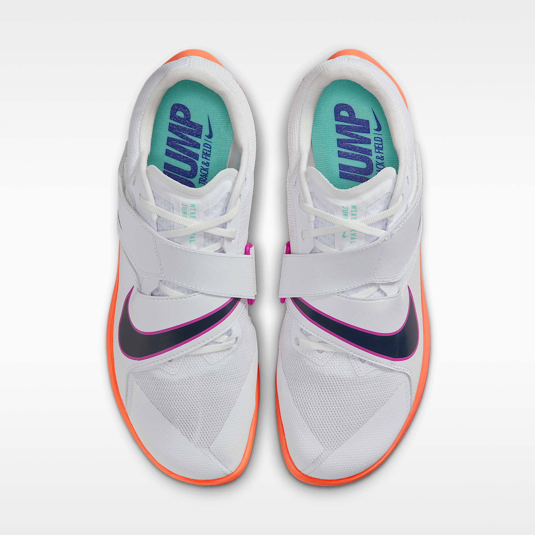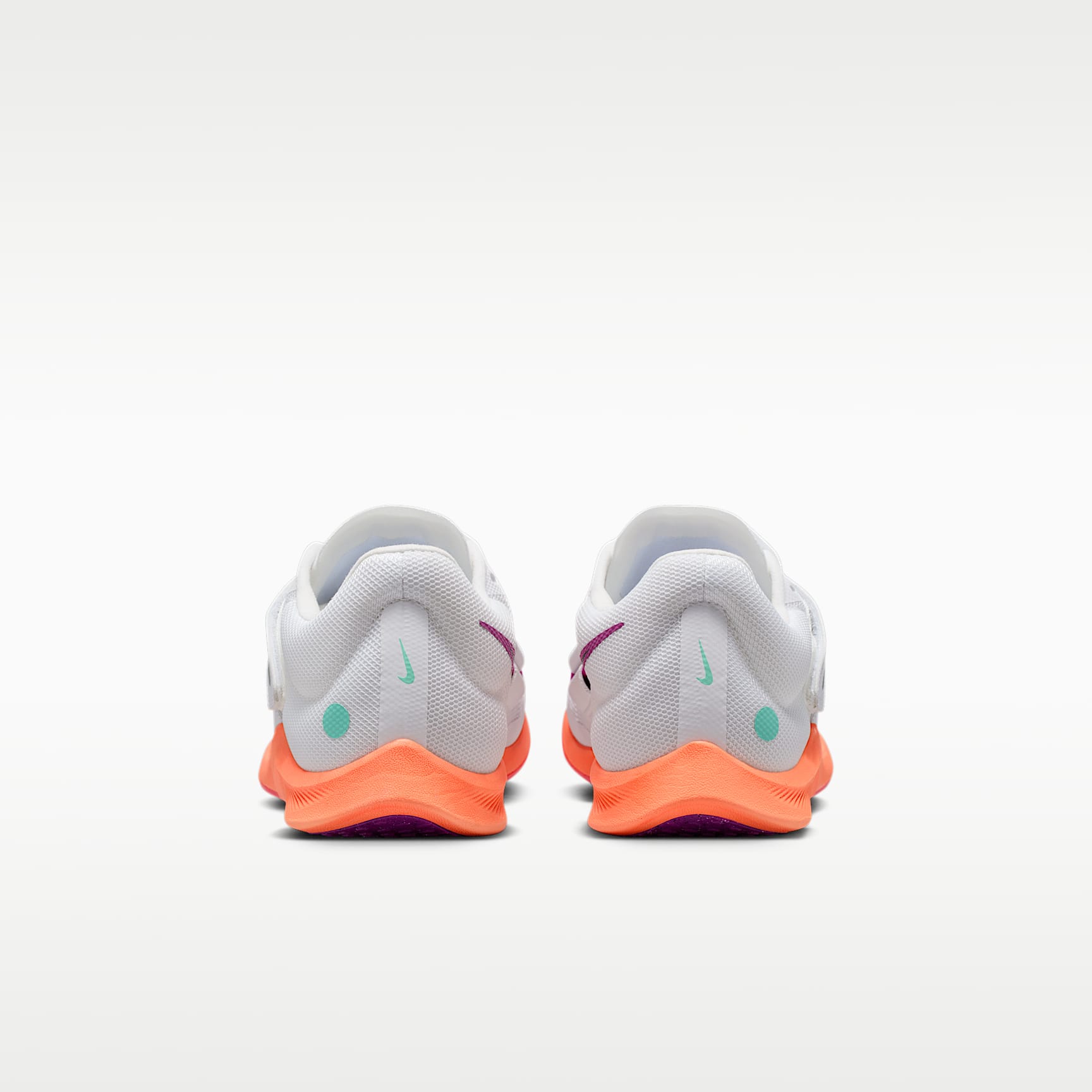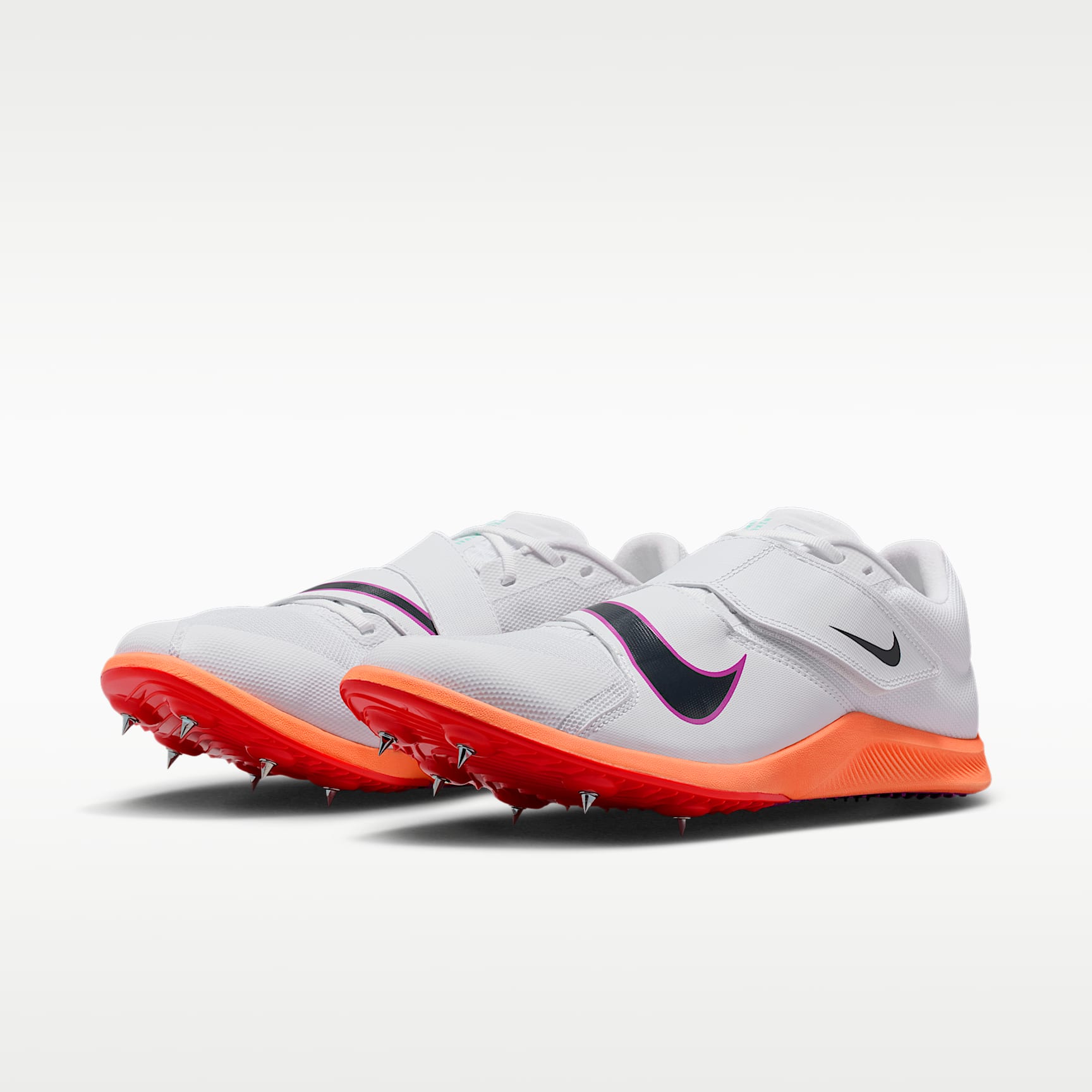 A lightweight heel and wider shoe base help you jump at full throttle. Pop a personal best in a model specifically designed for jumping events. Forefoot spikes and secondary heel traction give you confidence in wet or dry conditions on various track surfaces and different takeoff boards. A thick, yet lightweight cushioned heel and a wider shoe base help withstand the demands of jumping at full throttle. Optimal Containment Diagonal midfoot strap provides optimal containment while allowing you to quickly readjust your spikes in between jumps. The design helps make sure your foot doesn’t move around during jumping. Cushioning for Your Event Higher-stacked midfoot and heel cushion provide a smooth transition and takeoff. That combination also offers supportive cushioning while jumping. Spring in Your Jump Six specifically placed forefoot spikes offer traction. Combined with the grippy texture on the heel, it delivers dependable traction on various surfaces. More Benefits * Lightweight, snappy plate gives you aggressive sturdiness and stability that’s ideal for both sprinting and takeoff. * Padded collar delivers support and comfort. Product Details * Designed for long jump, triple jump, high jump and pole vault * Foam midsole