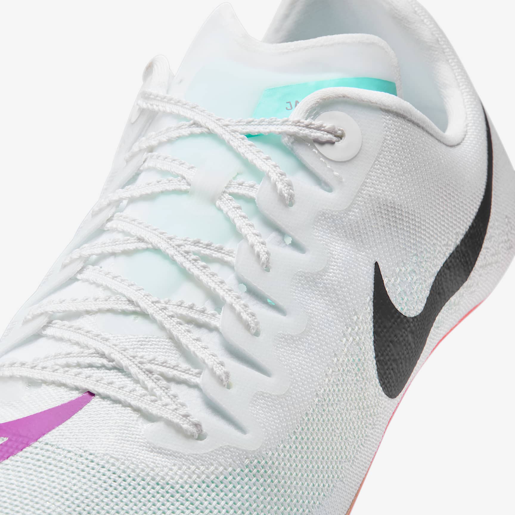 Our lightest sprint spike has a revamped plate. Finish through the tape first in the Nike Zoom Ja Fly 4, a sprint spike made to help you set personal records in everything from the 60 meters to 400 meters. Our lightest Nike Sprint spike has a revamped plate for enhanced stiffness and an updated upper for better breathability, so you can stay focused on doing your best. Lighter, Faster An updated woven upper gives you security and containment at a significantly lighter weight than the Ja Fly 3, but with more breathability. Explode Out of the Blocks A completely new plate using computationally designed hexagons delivers stiffness in key areas to help you fly off the starting line and maintain speed throughout the race. Lace Up The Nike Racing shoelace is lightweight with notches and just a little stretch that allows for a secure fit that stays tied in all conditions.