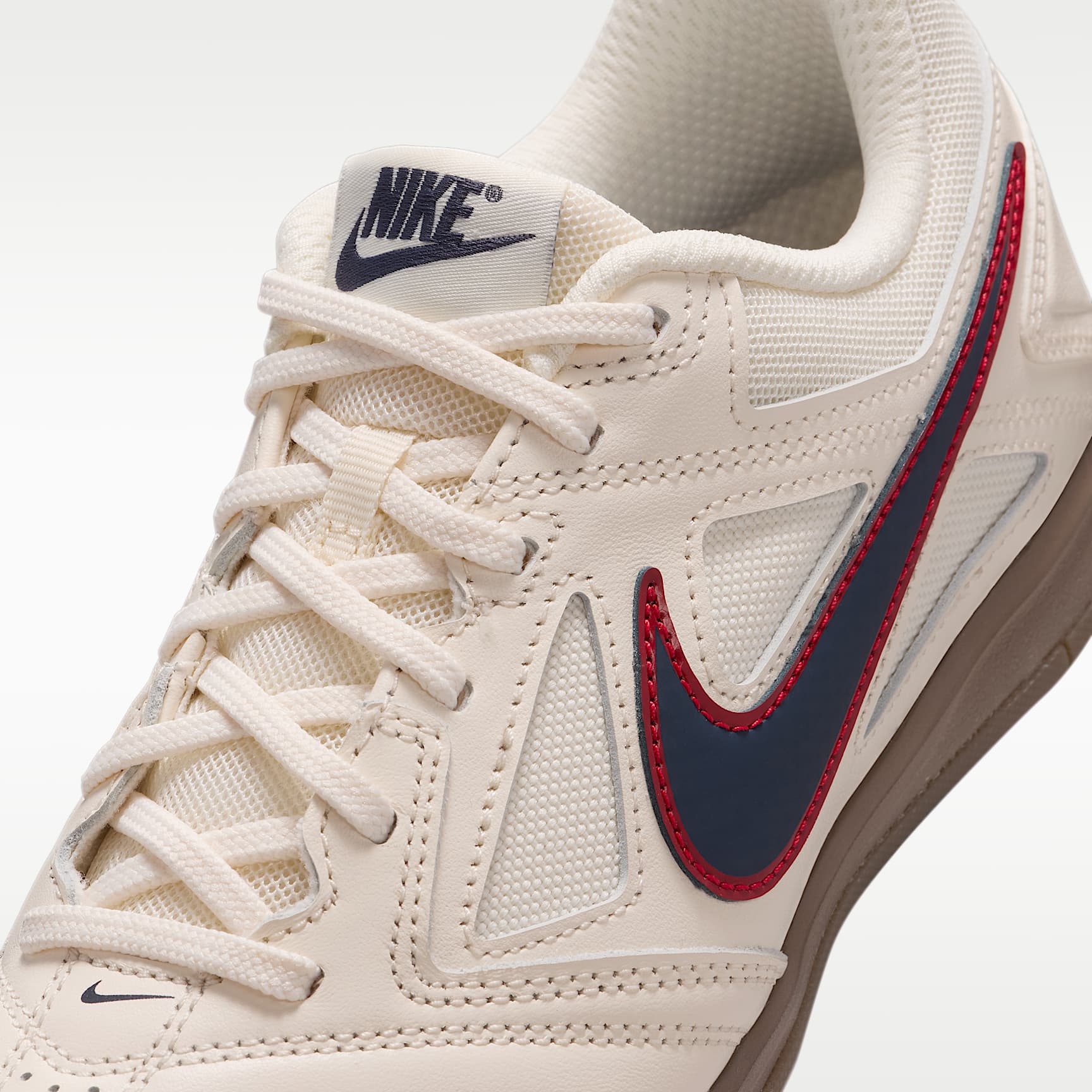 Originally an indoor soccer favorite, the Nike Gato is back with heritage style. With breathable mesh, durable leather and a springy foam midsole, it helps you stay ready to play on field and off. Benefits * Real and synthetic leather across the forefoot helps create a snug feel inspired by soccer boots and skate shoes. * Lightweight mesh and other textiles in the upper help keep these breathable. * Soft foam in the midsole helps provide responsive cushioning. * Gum rubber outsole features a hexagon tread pattern for durable traction. Product Details * Classic laces * Reinforced toe