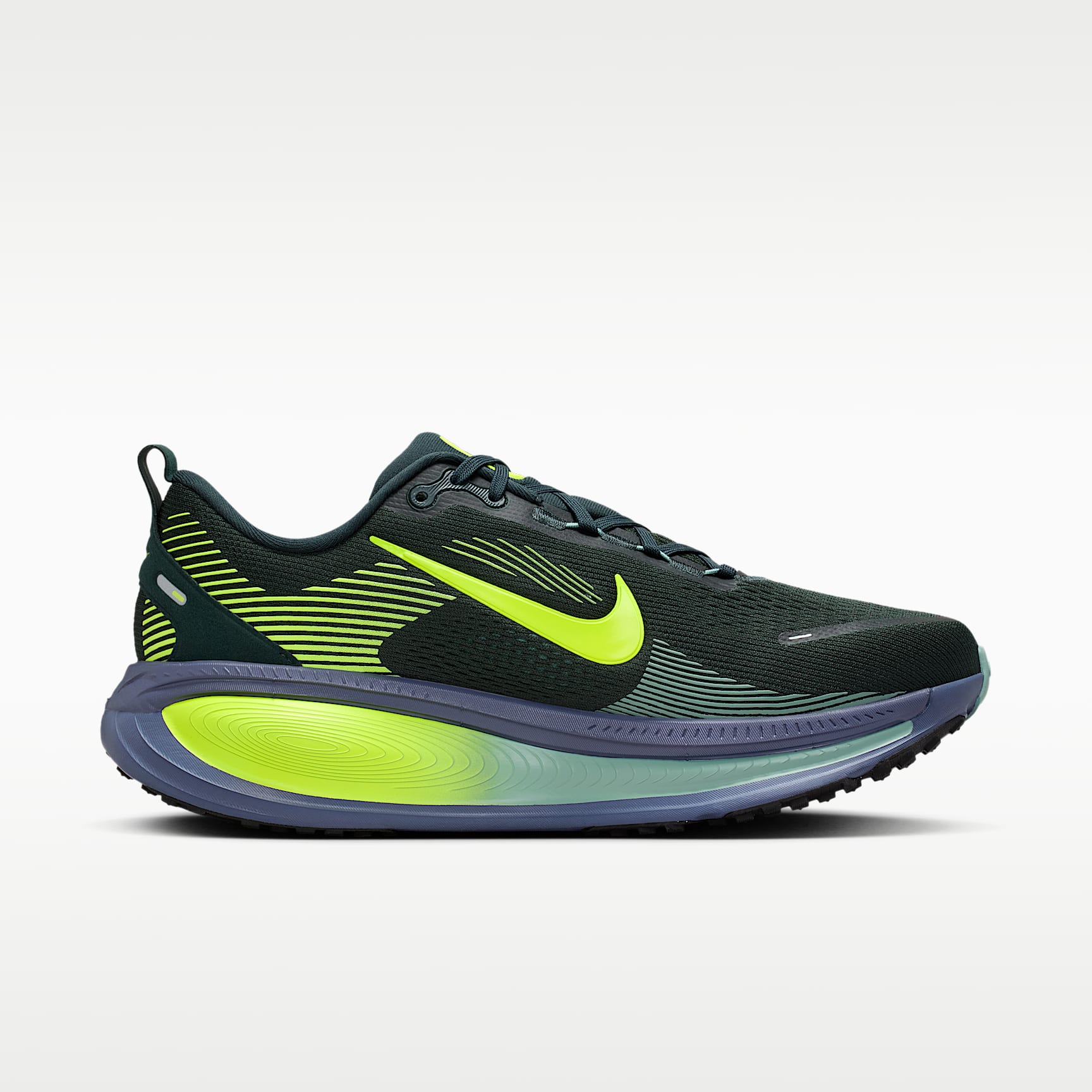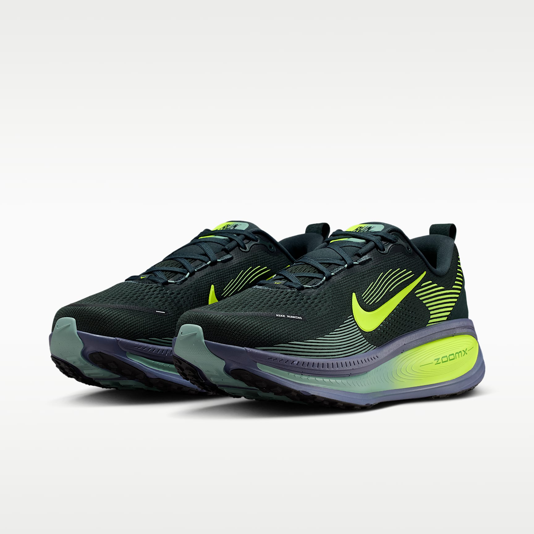 Maximum cushioning in the Vomero provides a comfortable ride for everyday runs. Our softest, most cushioned ride has lightweight ZoomX foam stacked on top of responsive ReactX foam in the midsole. Plus, a redesigned traction pattern offers a smooth heel-to-toe transition. Engineered Mesh Upper The upper is made of engineered mesh for soft breathability. Dual-Density Midsole Our dual-density midsole has ZoomX foam stacked on top of ReactX foam, 13% more responsive than previous React technology, for a comfortable ride. Pods Around Outsole We placed pods around the outsole to help enhance agility and smoother heel-to-toe transitions. Plush Padding A plush tongue and lining give you a comfortably snug feel. What's New? Newly stacked foam midsole with premium ZoomX on top of ReactX foam amplifies cushioned comfort. Product Details * Weight: Approx. 325g/11.5oz (Men's US 10) * Heel-to-toe drop: 10mm * MR-10 Last - Our best, most consistent fit * Not intended for use as Personal Protective Equipment (PPE)