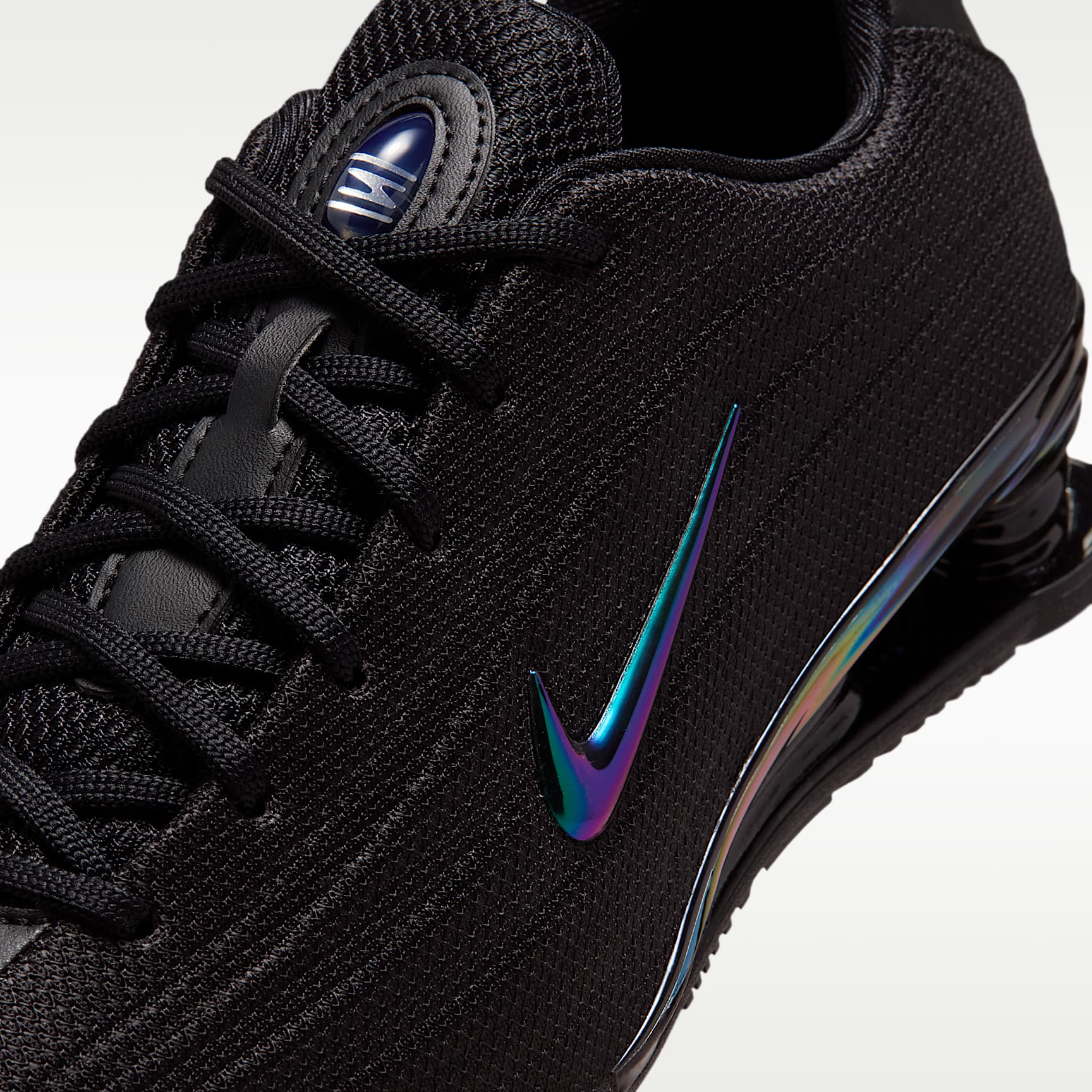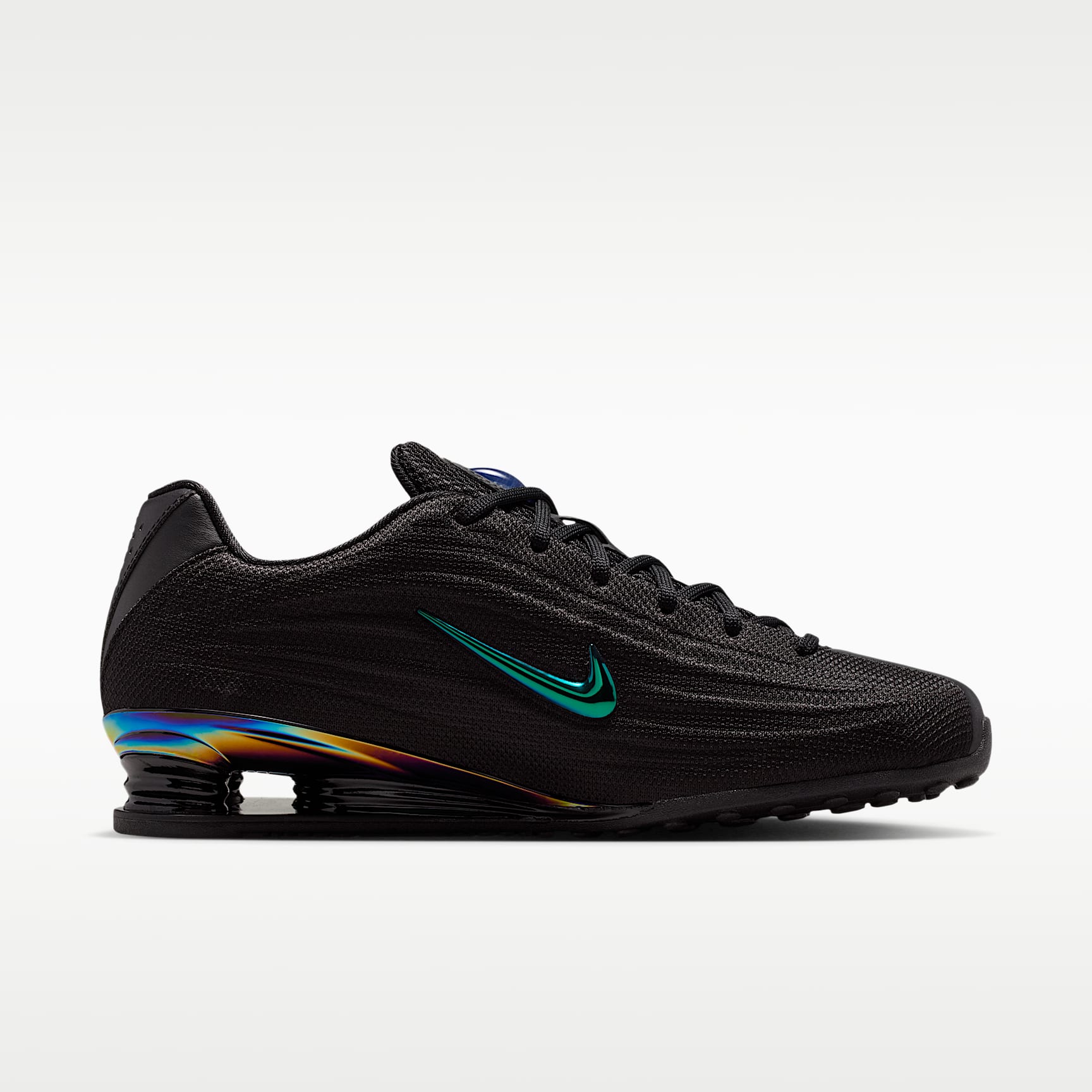 Sleek, low-profile and femme: Your favourite retro runner has reached its next evolution. The Shox Z's slim, stitchless upper sits atop a fresh take on the iconic column design for a look that blends sporty and the sartorial. Bold details, like the vibrant Nike Swoosh and metallic accents, complement the all-black aesthetic. Benefits * Originally designed to support the stride of runners, Nike Shox columns provide responsive cushioning. * A modified, circular Waffle outsole gives traction.