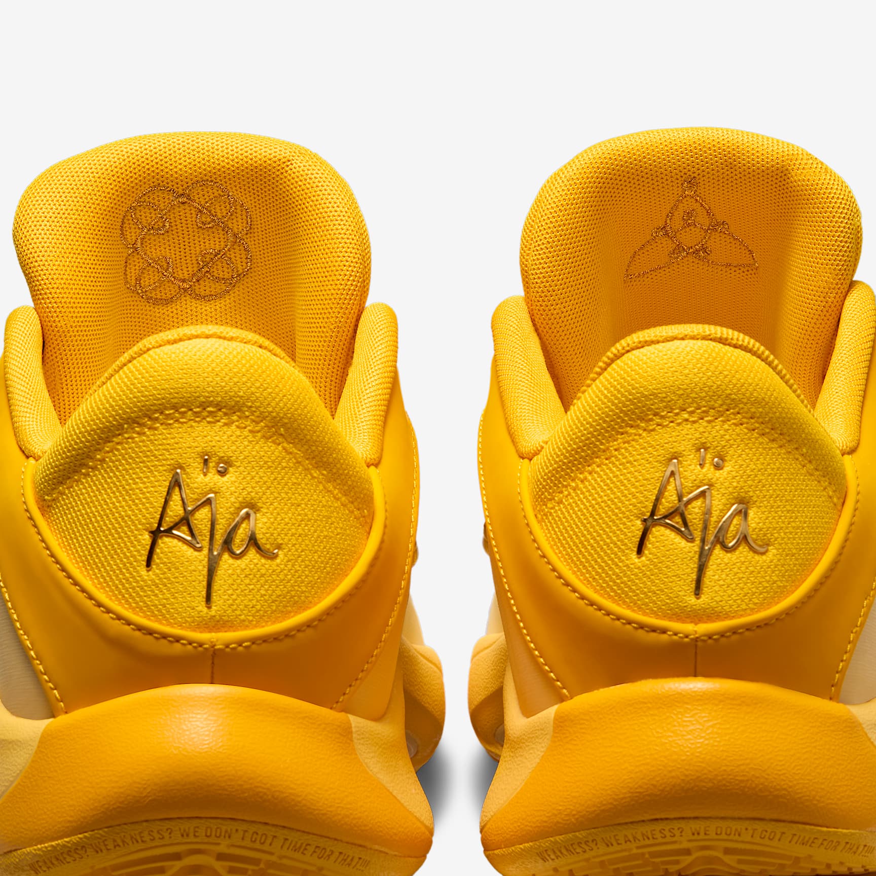 Even on the gloomy days, A’ja still tries to find a way to shine. This A’One symbolizes happiness and helps bring out the energy of optimism. The layers of yellow gradually become brighter from the inner core to the outer limits, so you and A’ja can stunt on the floor. And to help keep her smiling, plush Cushlon 3.0 foam provides unapologetic comfort. Fresh All Game To keep up with A’ja’s versatility, we designed her shoe with plush Cushlon 3.0 foam underfoot for optimal energy return. So when it’s winning time, she can maintain peak performance. Unapologetically Light There’s no slowing A’ja down when the game is on the line. Light and breathable mesh helps keep her quick on her feet. Micro-Tuned Traction Soft, stable foam combines with a generative traction pattern for the support and control A’ja needs to be a lockdown defender. Star Power Built around the star she's always drawn into her signature, A'ja's logo is strong, bold and playful—just like the energy she brings to the court. More Benefits * Extended bump along the heel gives you optimal stability. * Midfoot band provides optimal arch support and movement control.