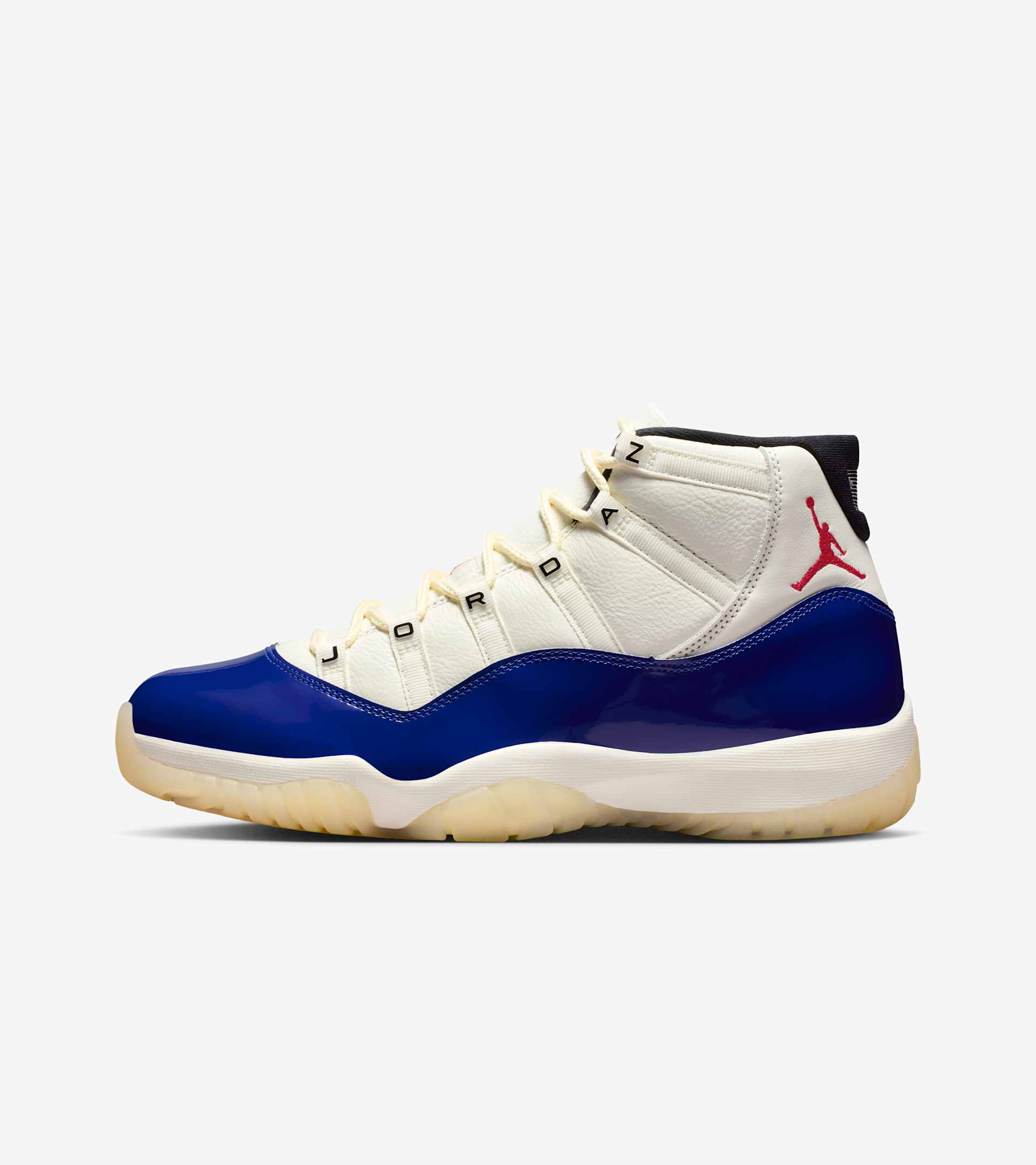 Override the norm. The Air Jordan 11 'Rare Air' alters flaws into perfection with this custom colourway. Tumbled Sail leather fuses with Fire Red and Deep Royal Blue colour-blocking, interchangeable laces and a tinted outsole for a touch of heritage. Lace up through the Jordan letter insignia and step on uncommon ground. SKU: IH0296-400