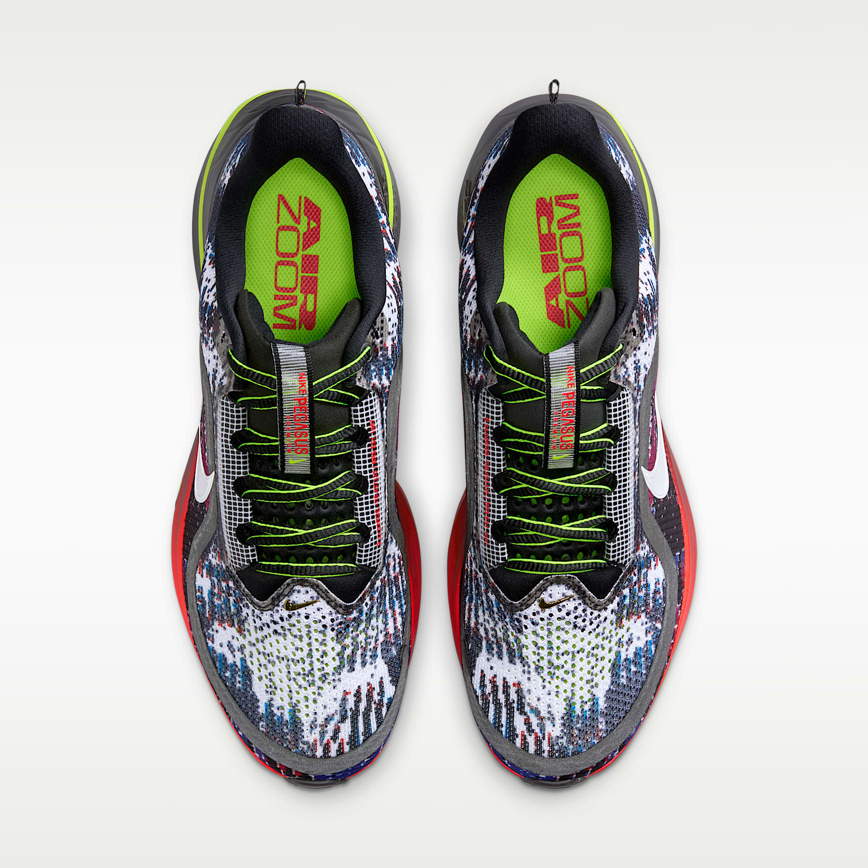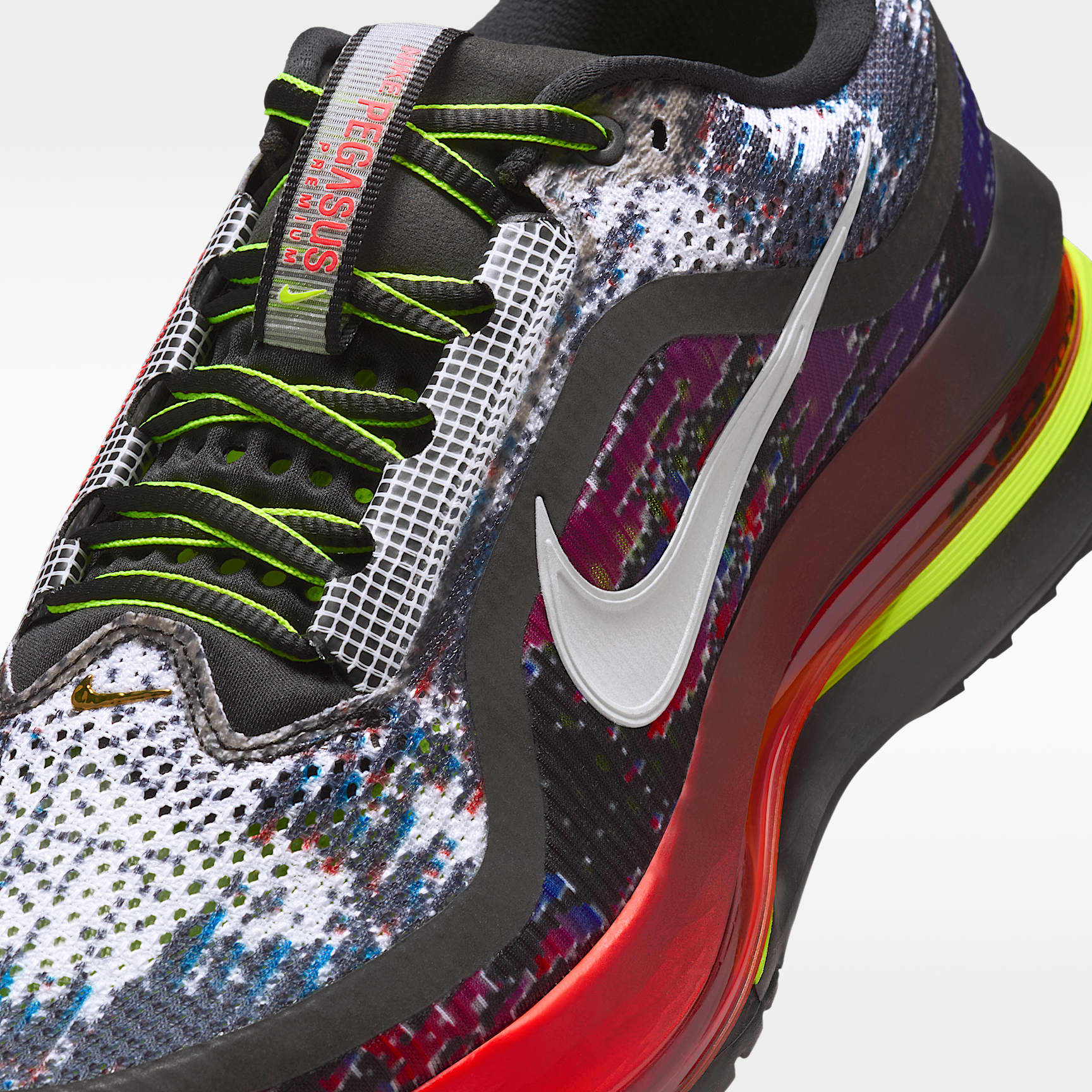 Three stacks of responsive cushioning delivers the ultimate energized ride. The Pegasus Premium supercharges responsive cushioning with a triple stack of our most powerful running technologies: ZoomX foam, a sculpted Air Zoom unit and ReactX foam. It's our most responsive Pegasus ever, providing high energy return unlike any other. With a lighter-than-air upper, it decreases weight and increases breathability so you can fly fast. Breathable upper Circular knit upper helps keep you cool mile after mile. Our Most Responsive Pegasus Ever ZoomX foam in the midsole and ReactX foam in the heel create a new cushioning system for high energy return and peak responsiveness. Sculpted Air Zoom Unit We sculpted a full-length Air Zoom unit so you can use the power of Air from heelstrike to toe off. Waffle outsole A modified Waffle outsole with high-abrasion rubber provides durable traction. Product Details * Weight: 325g approx. (men's UK 9) * Heel-to-toe drop: 10mm * Reflective details throughout upper * Not intended for use as personal protective equipment (PPE)