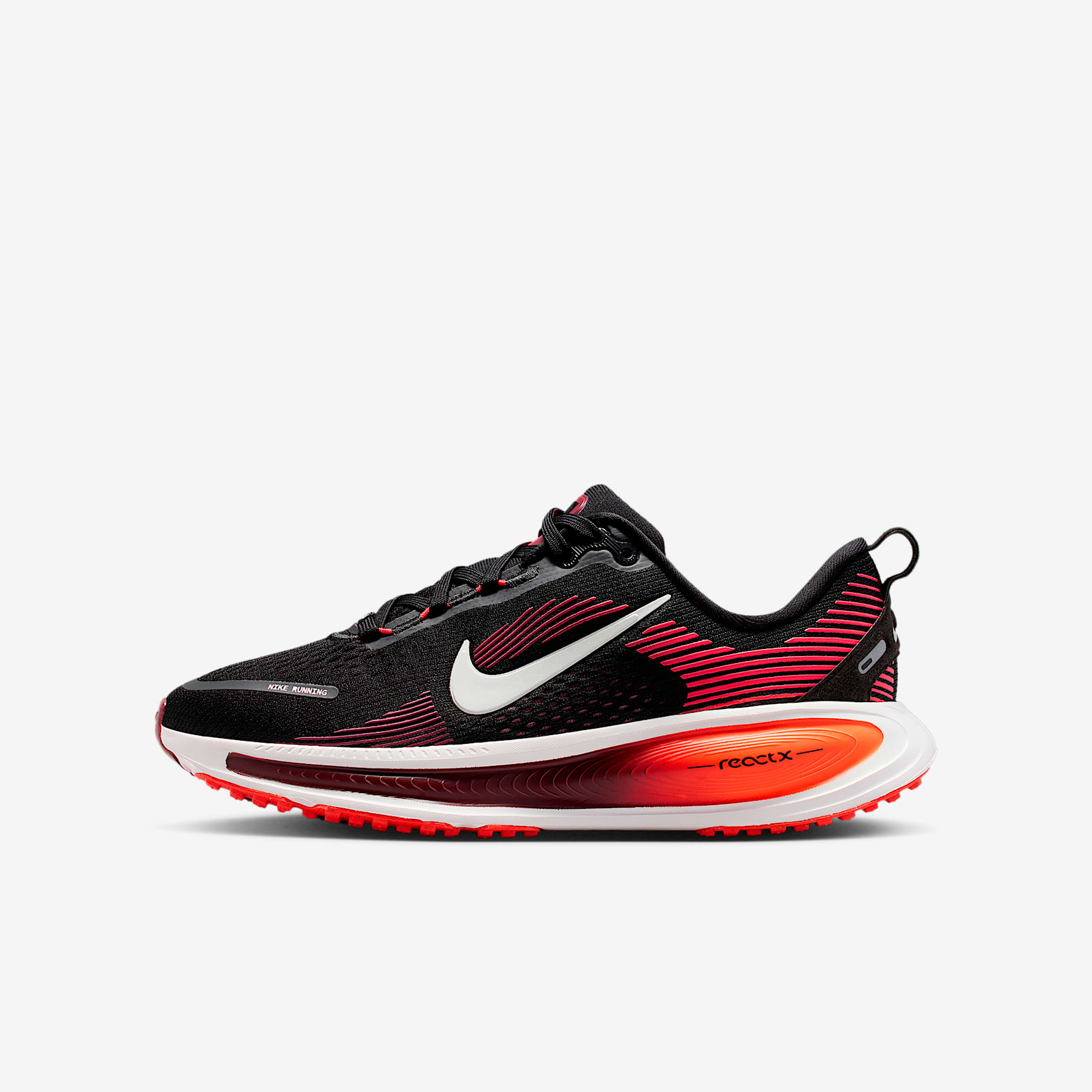 With springy ReactX foam, the Vomero 18 gives you a comfortable, responsive ride for your daily runs. Lightweight textiles on top help your feet breathe, so you stay cool however many miles you log. What's New Responsive ReactX foam in the midsole helps power up your runs with cushioned comfort. Engineered mesh upper Lightweight mesh and airy knit textiles in the upper help add breathability to your runs. Responsive ReactX foam We stacked the midsole with springy ReactX foam to help add energy to your every stride. Podular outsole Nubby pods ring the durable rubber outsole, helping promote smooth heel-to-toe transitions. Plush tongue A plush tongue and lining give you a comfortably snug feel. Product details * Classic laces * Pull tab on heel * Reflective design details * Weight: 227.1g (approx.) * Last: NK008 * Not intended for use as personal protective equipment (PPE)