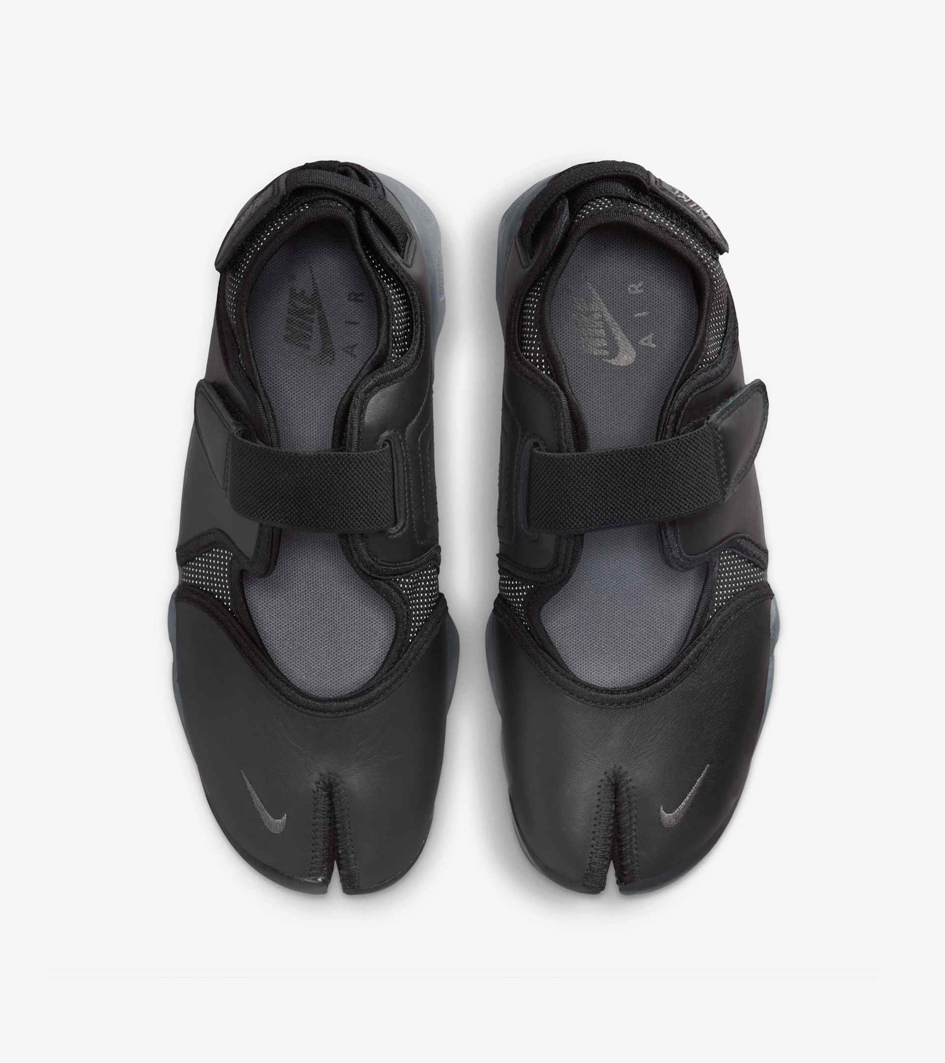 The Air Rift pairs the gracefulness of ballet flats with its distinct split-toe design and the all-day, everyday comfort that comes with Nike Air cushioning. Debuting in '96 as a forward-thinking running shoe, today it's a go-to choice when you're bridging the gap between casual and elegant. This smooth, full-grain leather version keeps your look minimalistic and low-key luxurious. SKU: IM6017-010