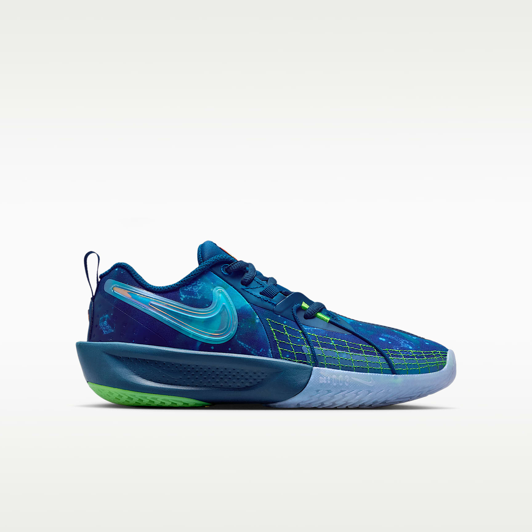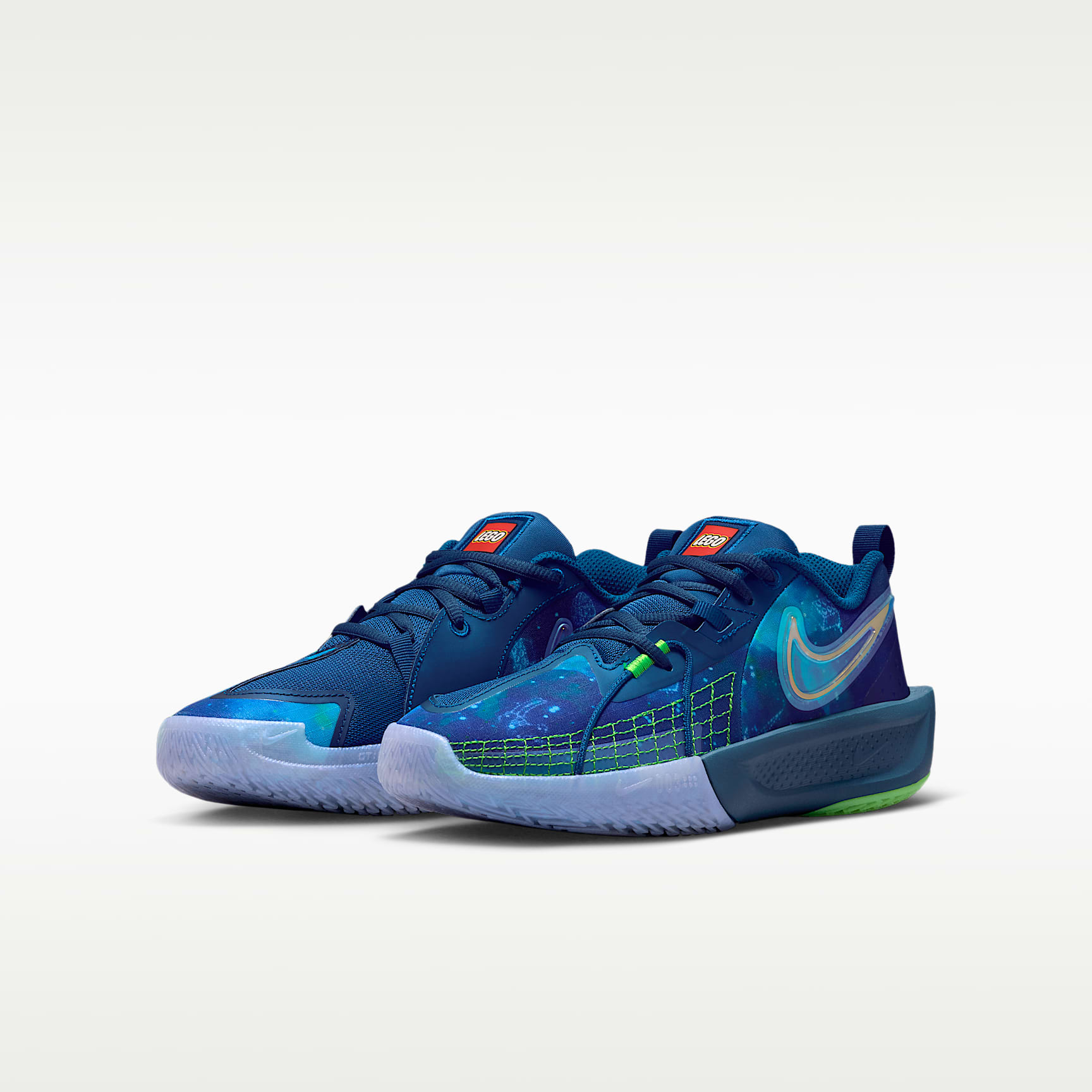 Step into the Nike x LEGO® Collection and get cleared for space travel with our high-flying G.T. Cut 3. Up top, we hid all our favorite LEGO details in the galaxy-inspired print. Underfoot, advanced traction helps you stop on a dime, while light and springy foam cushions your landing after zero-gravity shots. Lace up and get ready to play among the stars. Traction: High The more traction you have underfoot, the more separation you can create on the court. A herringbone traction pattern helps give you the grip you need to step in and out of the action, even when you're running at light speed. Cushioning: Moderate Looking to blast off into the stratosphere? You'll need springy cushioning. Our Cushlon foam midsole helps soften the impact of your feet hitting the ground so you feel fresh until the final buzzer. Responsiveness: Moderate From bricks to buckets, you need responsive shoes to help you build your next W. Soft foam helps absorb the energy of your step and return it back to you, helping to move you forward. Get Space Ready A wide collar opening and easy-to-grab pull tab helps you get ready to play in a flash. Plus, a lateral cable works with the laces to help make it easy for you to dial in the secure fit your game demands. Product Details * Classic laces * Pull tab on heel