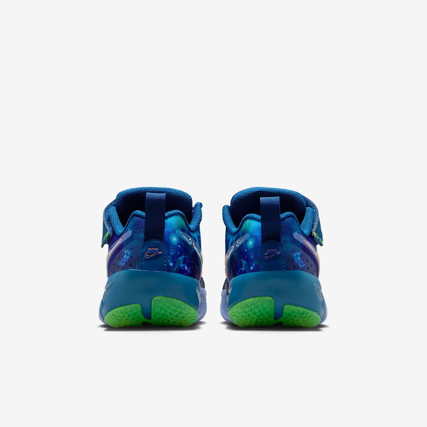 Lace your little one into the Nike x LEGO® Collection and get them cleared for space travel with our high-flying G.T. Cut 3. We hid all our favourite LEGO® details in the upper's galaxy-inspired print. Underfoot, advanced traction gives little feet the grip they need to stop in an instant, while light and springy foam cushions their landing after zero-gravity shots. Traction: high The more traction kids have underfoot, the more separation they can create on the court. A herringbone traction pattern helps give little feet the grip they need to step in and out of the action, even when they're running at the speed of light. Cushioning: moderate Kids who want to blast off into the stratosphere need bouncy cushioning. Springy foam in the midsole helps lessen the impact of little feet hitting the ground for soft yet responsive cushioning. Responsive: moderate From bricks to buckets, kids need responsive shoes to help them build their next W. Soft foam helps absorb the energy of your little one's step and return it back to them, helping to move them forwards. Get space-ready A wide collar opening and pull tab helps your kids get game-ready in a flash. A lateral cable helps provide a secure feel, and an adjustable strap makes it easy for kids to quickly fine-tune their fit. Product details * Pull tab on heel * Rubber outsole