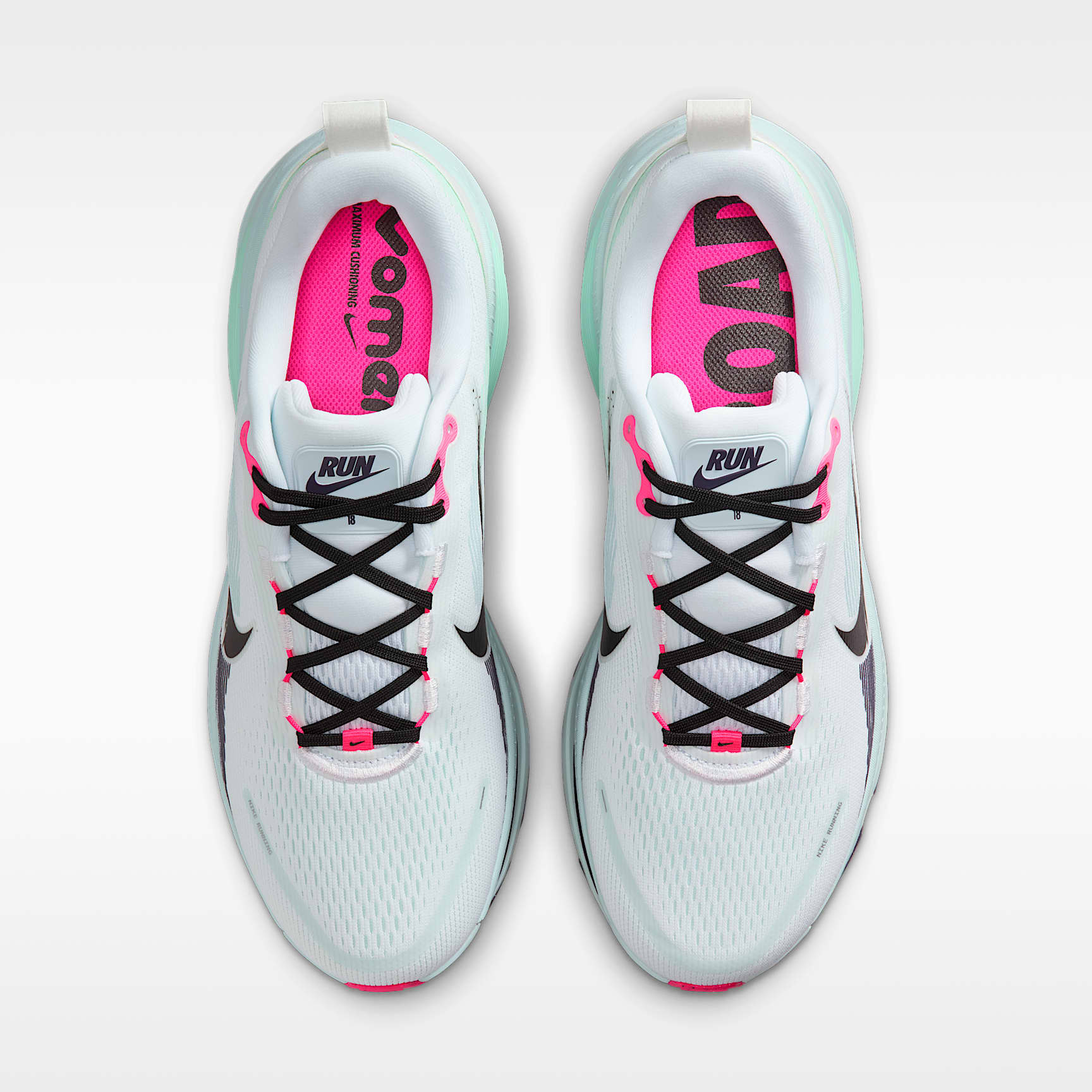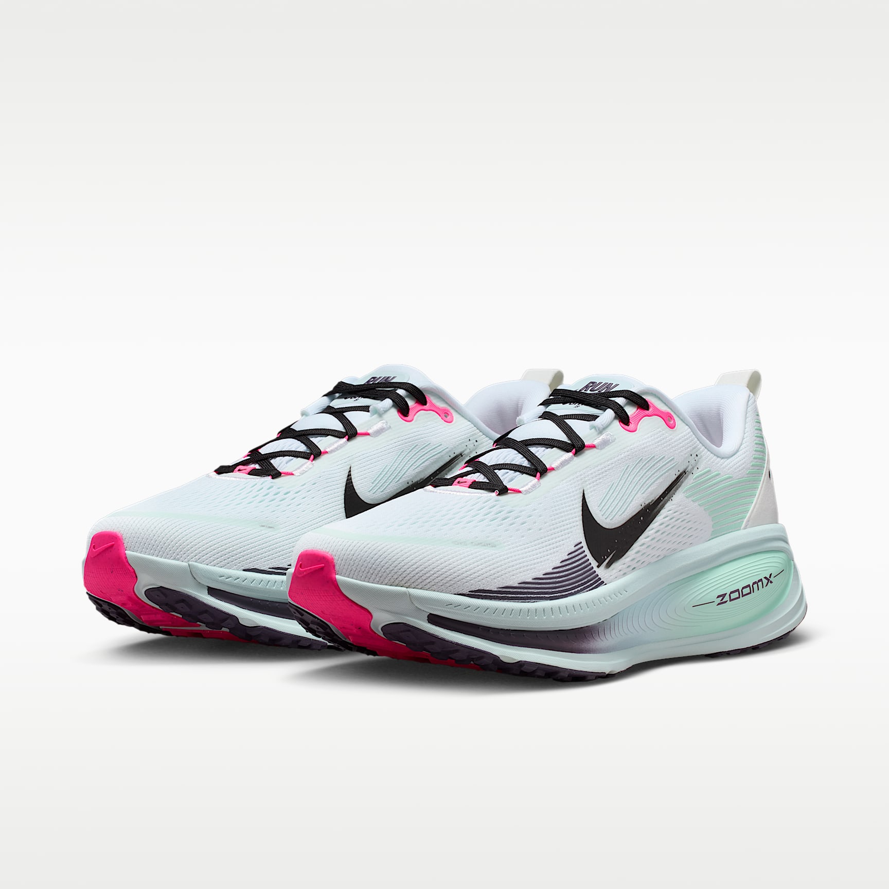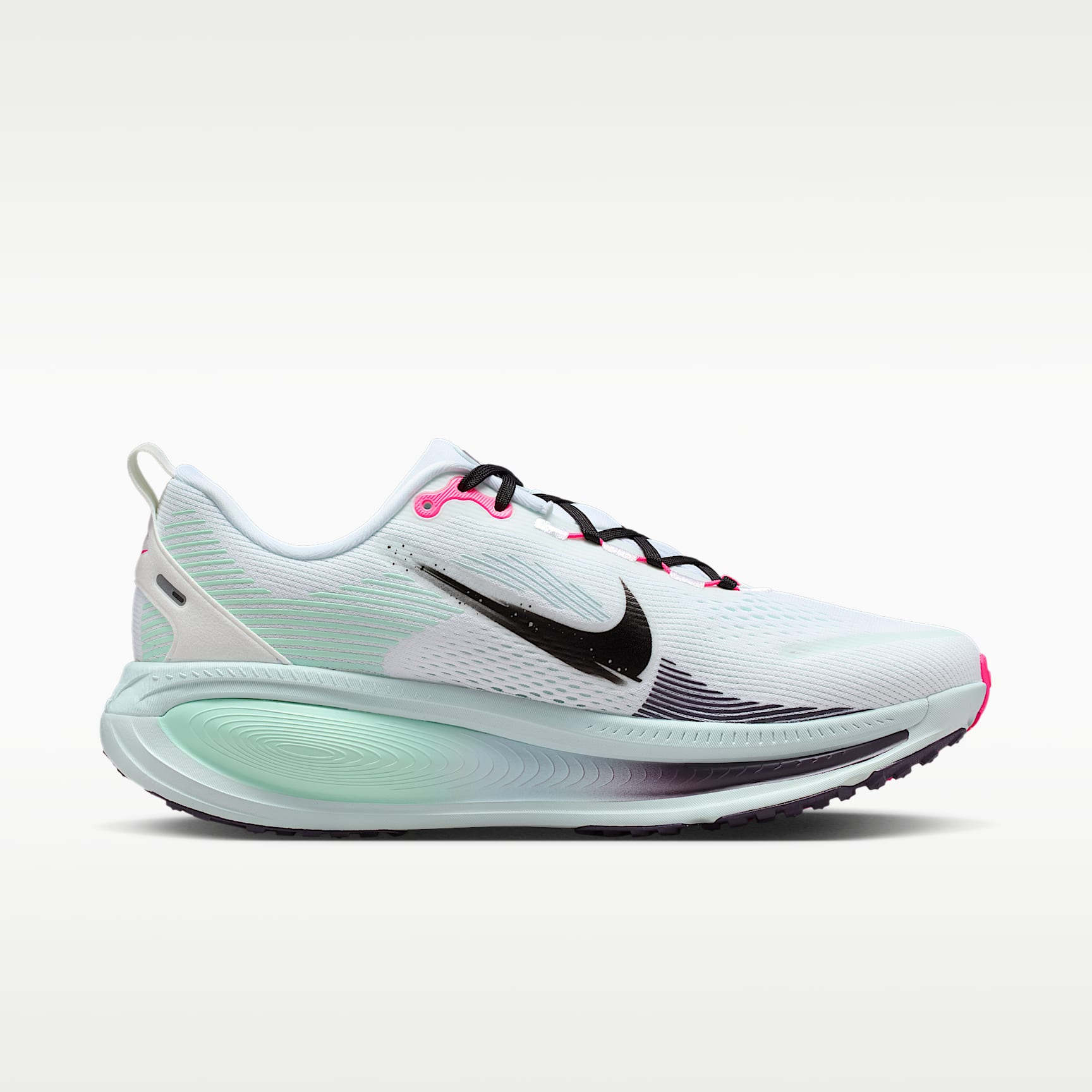 Double-stacked max cushioning for a soft and comfortable ride. Maximum cushioning in the Vomero provides a comfortable ride for everyday runs. Our softest, most cushioned ride has lightweight ZoomX foam stacked on top of responsive ReactX foam in the midsole. Plus, a redesigned traction pattern offers a smooth heel-to-toe transition. Engineered Mesh Upper The upper is made of engineered mesh for soft breathability. Dual-Density Midsole We stacked ZoomX foam on top of ReactX foam, which is 13% more responsive than previous React technology, for a soft, comfortable ride. Pods Around Outsole We placed pods around the outsole to help enhance agility and offer smoother heel-to-toe transitions. Plush Padding A plush tongue and lining give you a comfortably snug feel. What's New? * ZoomX foam stacked on top of ReactX foam * Higher stack height compared to Vomero 17 * Plush foam collar * Increased rocker Product Details * Weight: Approx. 325g/11.5oz (Men's US 10) * Heel-to-toe drop: 10mm * MR-10 Last - Our best, most consistent fit * Not intended for use as Personal Protective Equipment (PPE)
