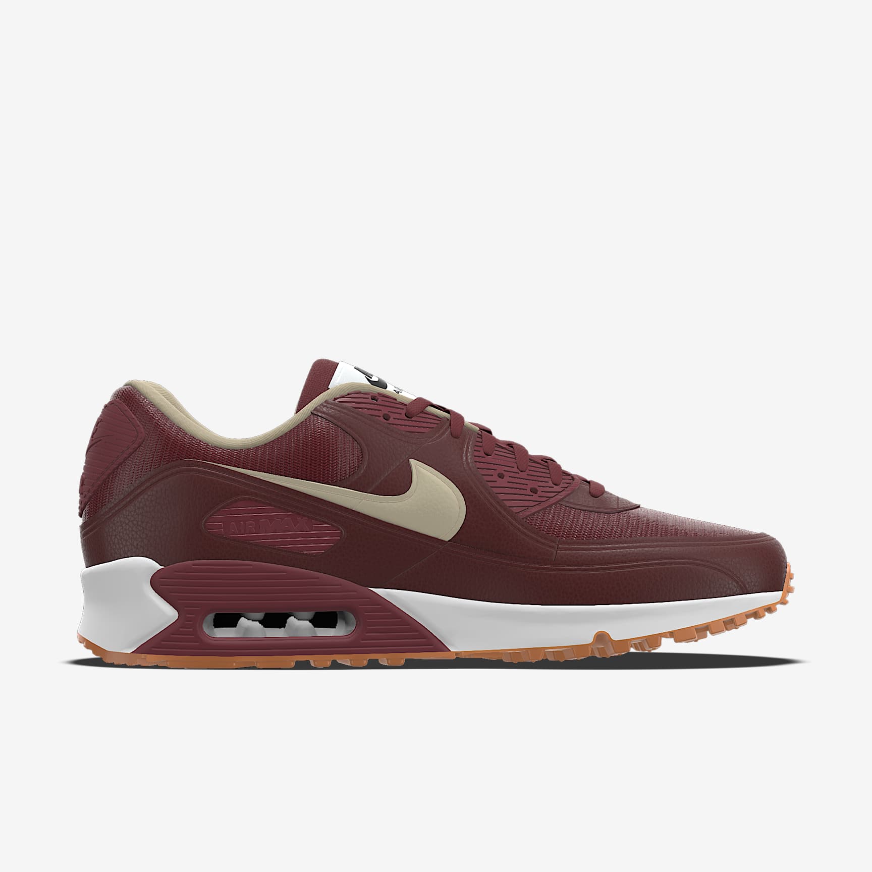 Whether you want a monochromatic look or sporty with an edge, the AM90 can do it all. Customize everything from the colors to the materials for a design that is truly you. Pick Your Base Choose from allover leather or a mix of leather and mesh for a layered look. Either way, the upper will be comfortable and durable. Color Up When it comes to color, you've got options. Go for classic sport heritage or seasonal pops of color. Make It Personal Your initials? A nickname? Or something else that's so you. Customize your shoes with up to 8 characters on the tongue top. More Benefits * Originally designed for performance running, visible Air cushioning puts the history of comfort beneath your feet. * Rubber Waffle outsole delivers durable traction and heritage style. Product Details * Our members are one of a kind, and your shoes are, too. Each pair is proudly made one at a time, by hand. Good things are worth the wait. * Get personal with a customizable inscription on your shoes. Plus, your name is on the box. * With our 3D builder, watch your creation come alive as you experiment with all kinds of design choices. Air Max 90 The 90s were a turning point in culture—art, music, fashion and sneakers. The Air Max was at the forefront of the movement. With even more exposed Air cushioning and a bold new color affectionately dubbed as “infrared,” its revolutionized design helped the first 90 take on a life of its own. No longer just a running shoe, it solidified Air Max as a streetwear cornerstone.