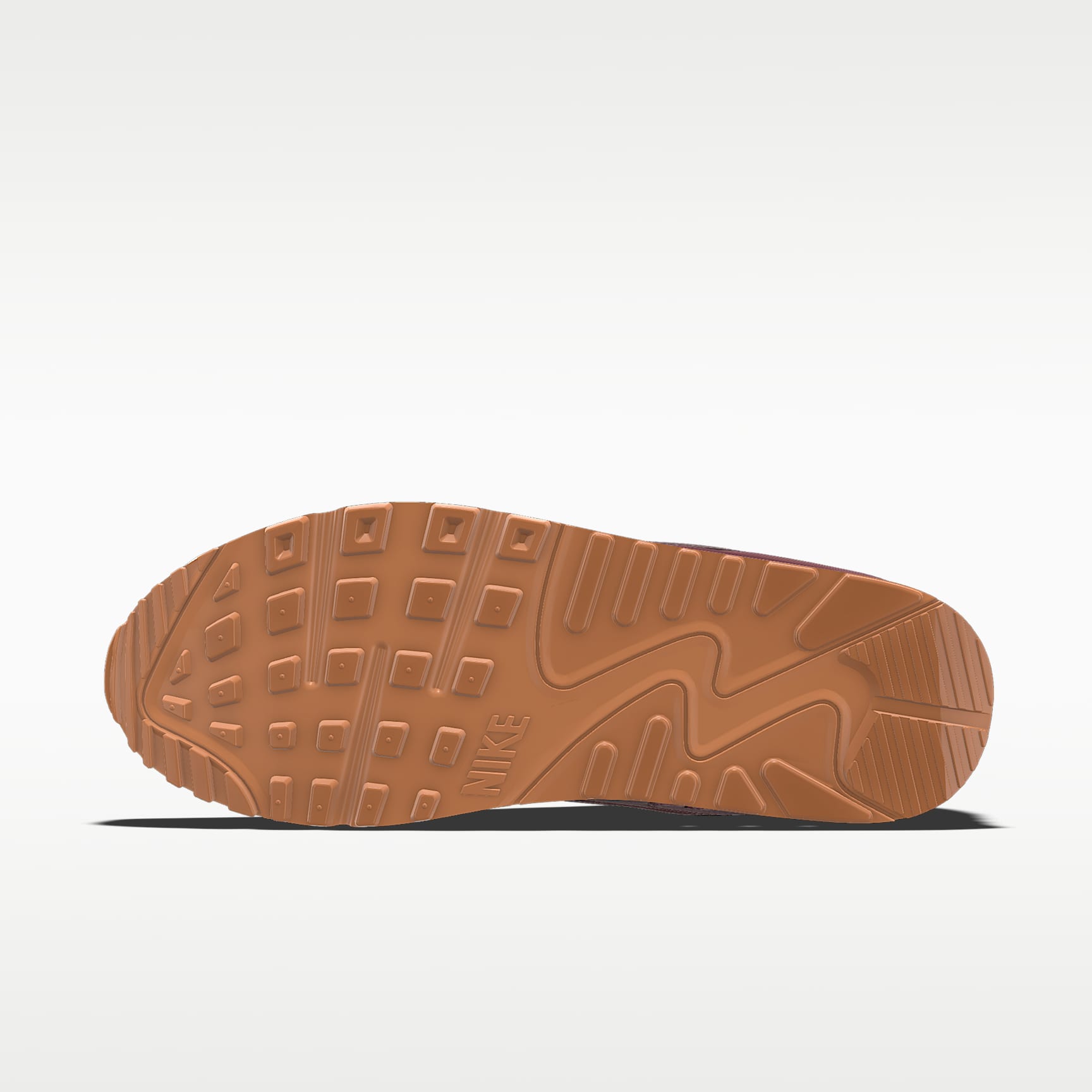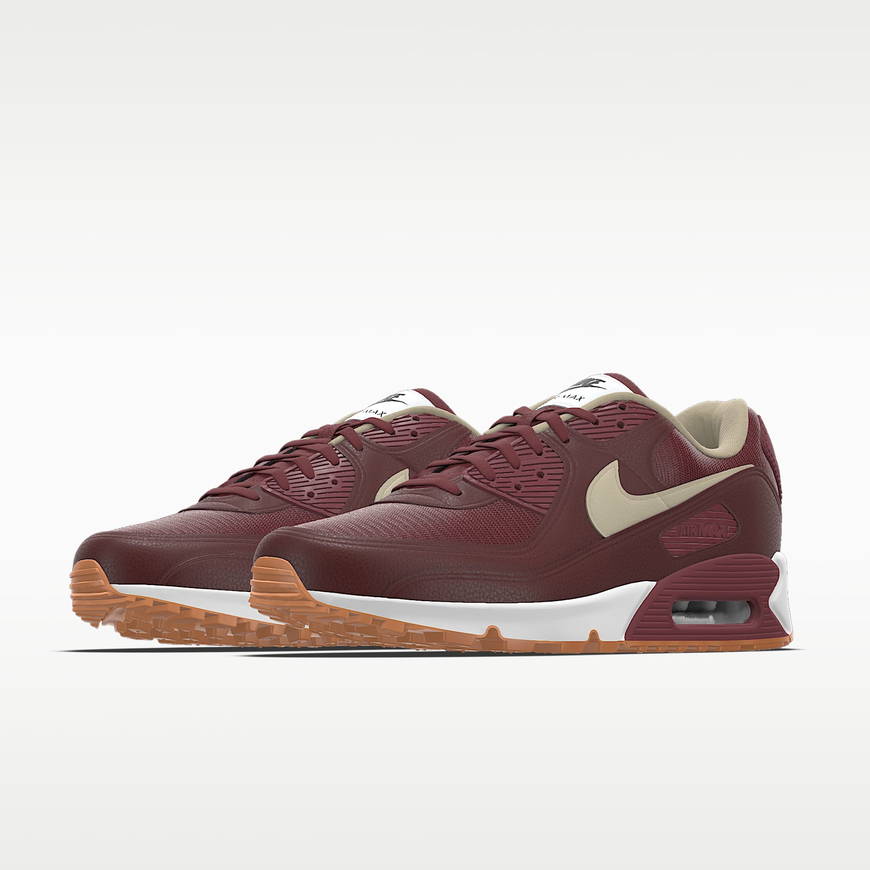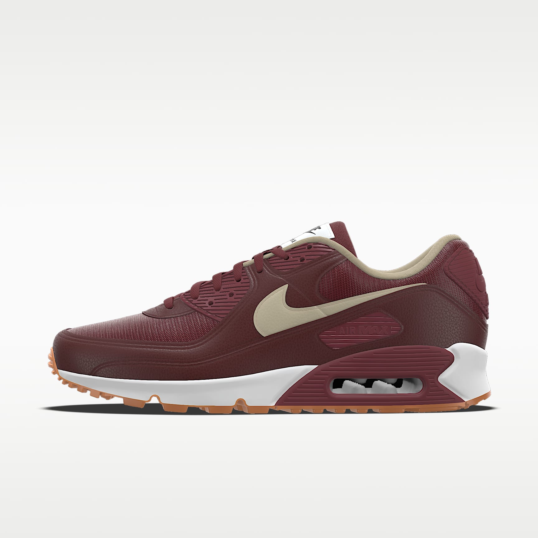 Whether you want a monochromatic look or sporty with an edge, the AM90 can do it all. Customize everything from the colors to the materials for a design that is truly you. Pick Your Base Choose from allover leather or a mix of leather and mesh for a layered look. Either way, the upper will be comfortable and durable. Color Up When it comes to color, you've got options. Go for classic sport heritage or seasonal pops of color. Make It Personal Your initials? A nickname? Or something else that's so you. Customize your shoes with up to 8 characters on the tongue top. More Benefits * Originally designed for performance running, visible Air cushioning puts the history of comfort beneath your feet. * Rubber Waffle outsole delivers durable traction and heritage style. Product Details * Our members are one of a kind, and your shoes are, too. Each pair is proudly made one at a time, by hand. Good things are worth the wait. * Get personal with a customizable inscription on your shoes. Plus, your name is on the box. * With our 3D builder, watch your creation come alive as you experiment with all kinds of design choices. Air Max 90 The 90s were a turning point in culture—art, music, fashion and sneakers. The Air Max was at the forefront of the movement. With even more exposed Air cushioning and a bold new color affectionately dubbed as “infrared,” its revolutionized design helped the first 90 take on a life of its own. No longer just a running shoe, it solidified Air Max as a streetwear cornerstone.