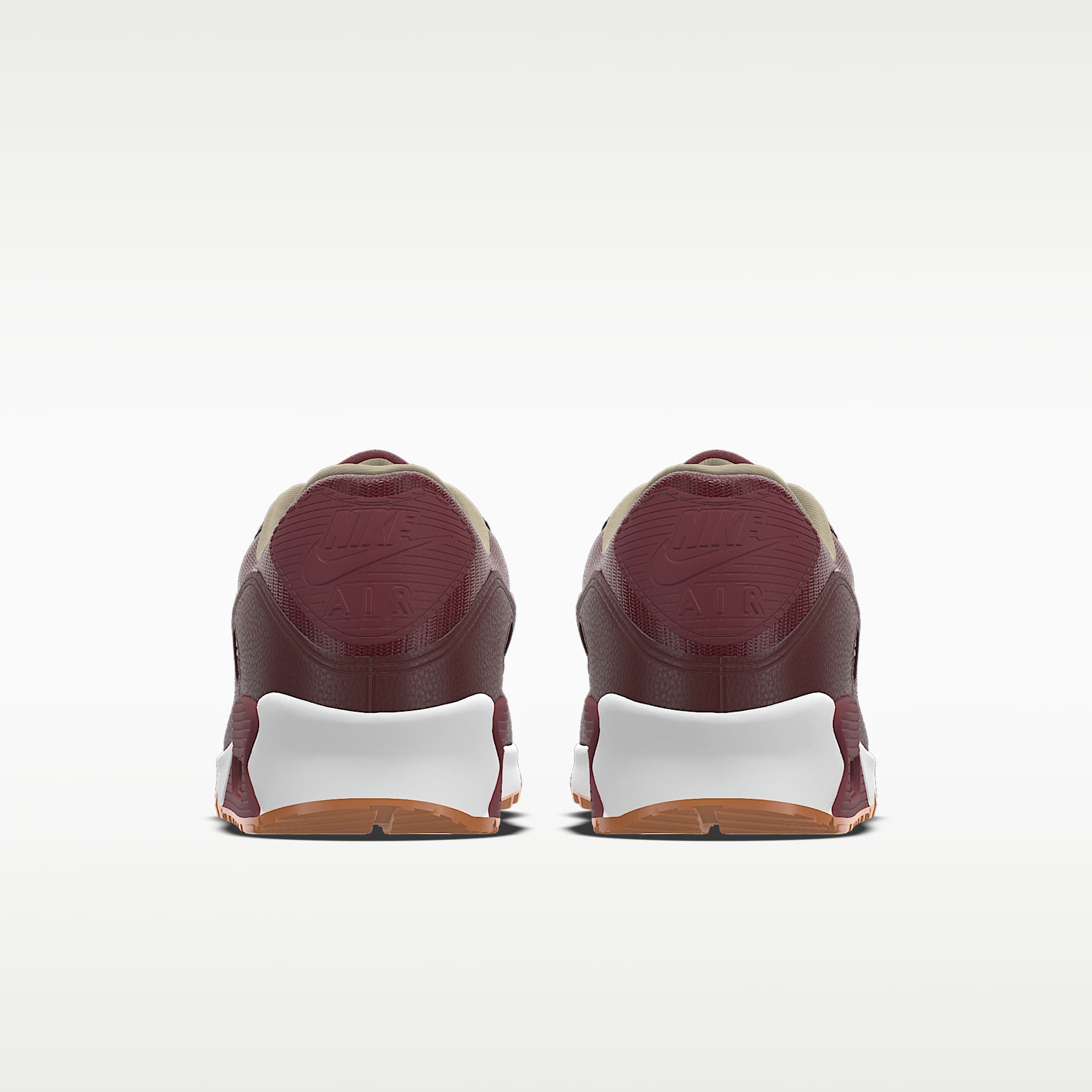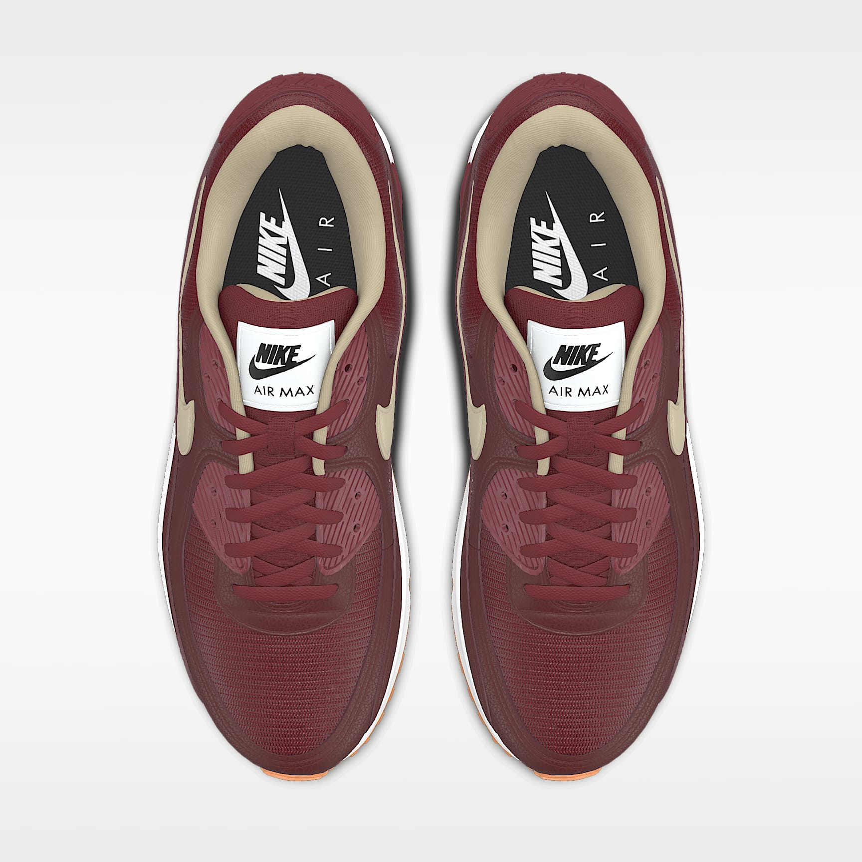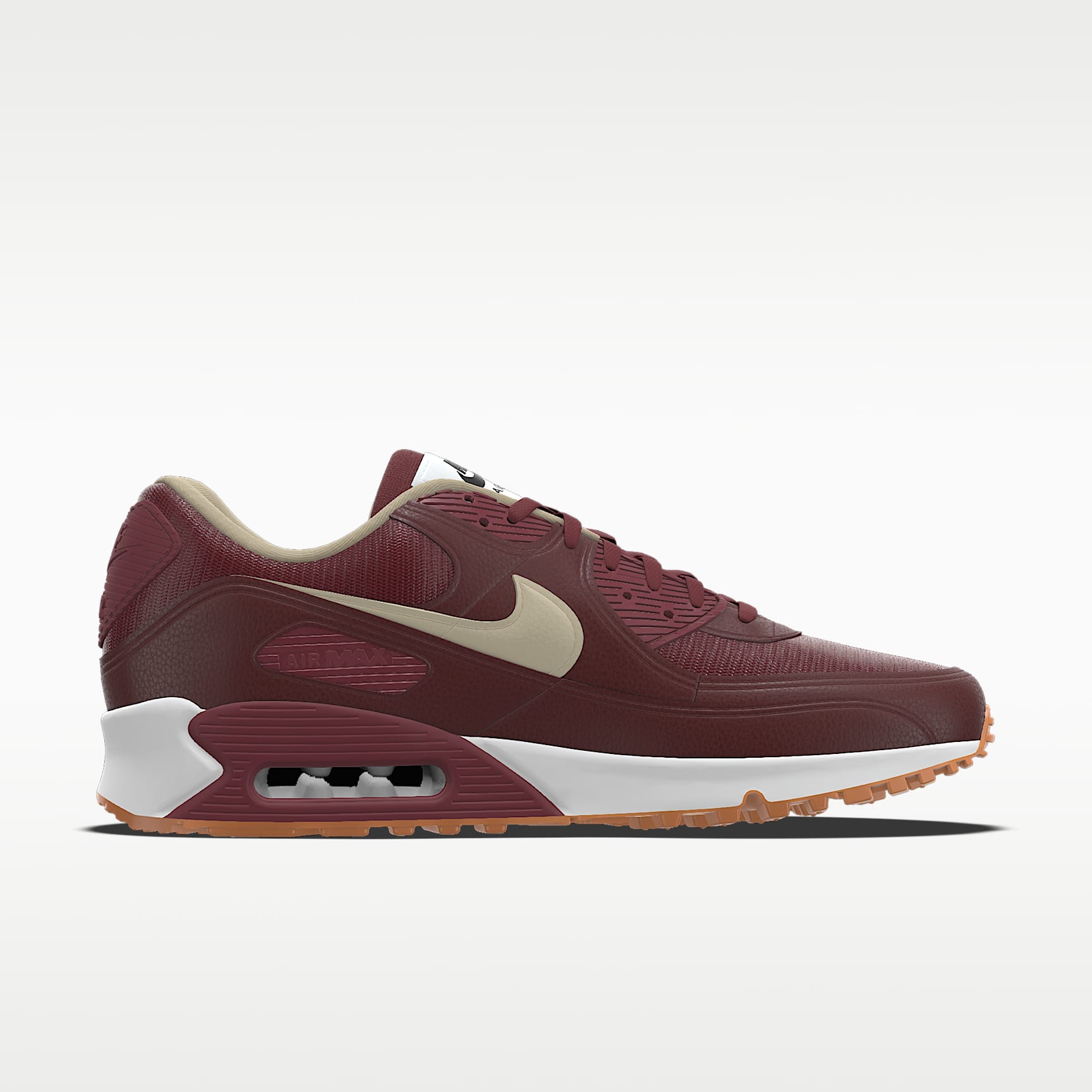 Whether you want a monochromatic look or sporty with an edge, the AM90 can do it all. Customize everything from the colors to the materials for a design that is truly you. Pick Your Base Choose from allover leather or a mix of leather and mesh for a layered look. Either way, the upper will be comfortable and durable. Color Up When it comes to color, you've got options. Go for classic sport heritage or seasonal pops of color. Make It Personal Your initials? A nickname? Or something else that's so you. Customize your shoes with up to 8 characters on the tongue top. More Benefits * Originally designed for performance running, visible Air cushioning puts the history of comfort beneath your feet. * Rubber Waffle outsole delivers durable traction and heritage style. Product Details * Our members are one of a kind, and your shoes are, too. Each pair is proudly made one at a time, by hand. Good things are worth the wait. * Get personal with a customizable inscription on your shoes. Plus, your name is on the box. * With our 3D builder, watch your creation come alive as you experiment with all kinds of design choices. Air Max 90 The 90s were a turning point in culture—art, music, fashion and sneakers. The Air Max was at the forefront of the movement. With even more exposed Air cushioning and a bold new color affectionately dubbed as “infrared,” its revolutionized design helped the first 90 take on a life of its own. No longer just a running shoe, it solidified Air Max as a streetwear cornerstone.