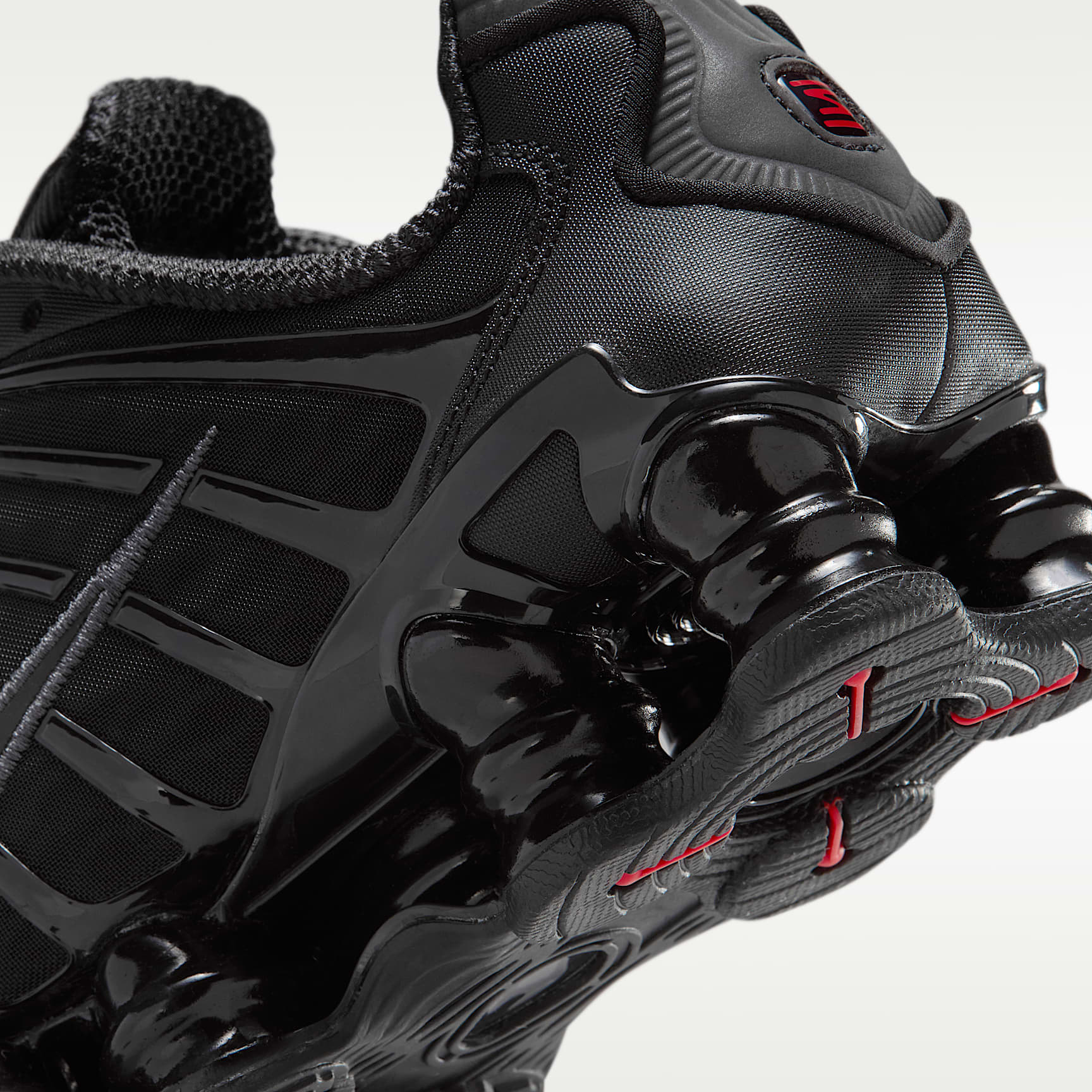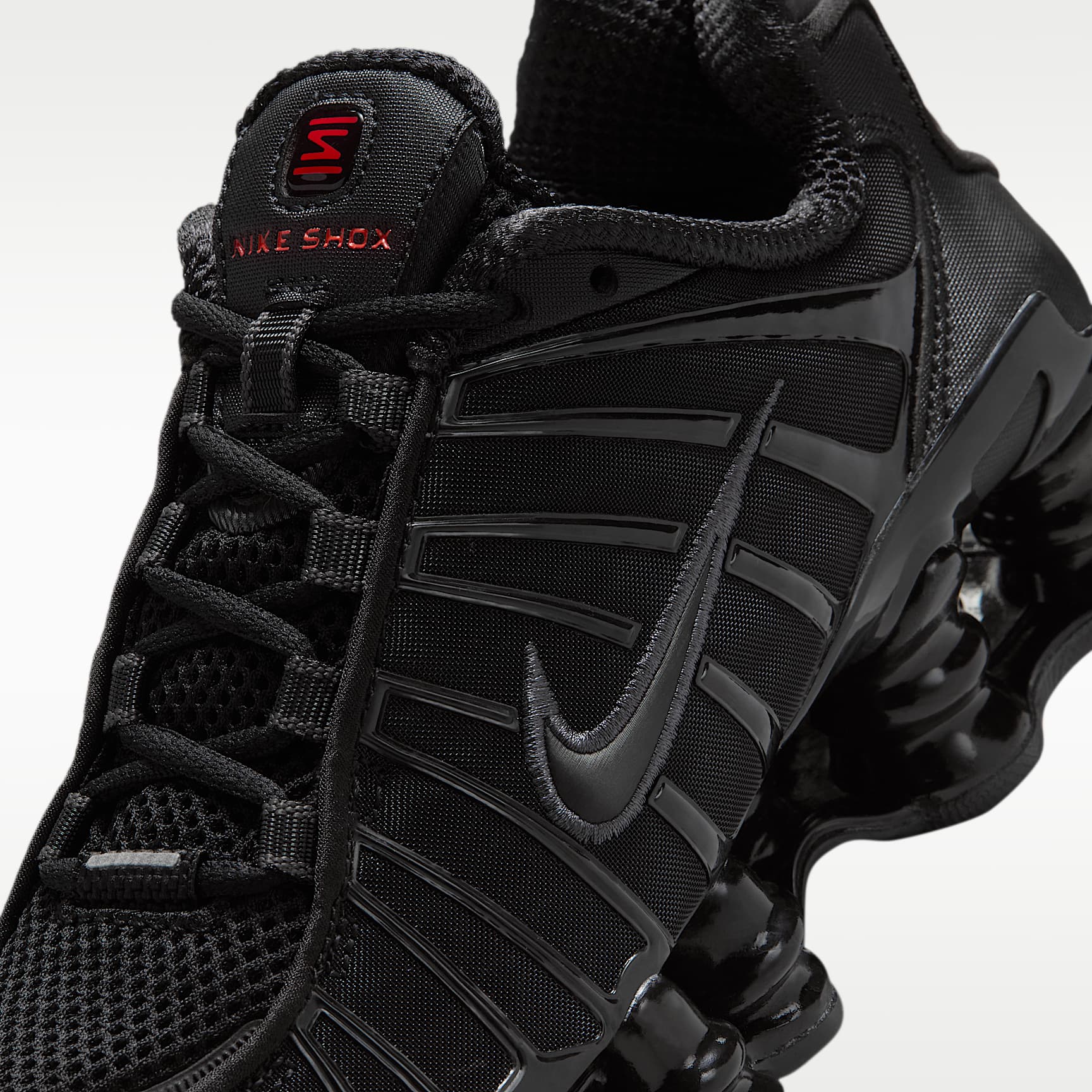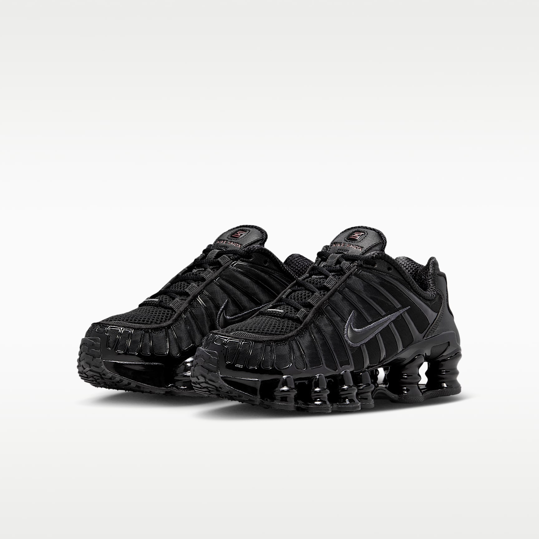 The Nike Shox TL takes mechanical cushioning to the next level. A recrafted version of the 2003 icon, it features breathable mesh in the upper, with full-length Nike Shox technology for optimal impact absorption and a bold look on the streets. Benefits * Nike Shox technology combines resilient, flexible columns with moderator plates for outstanding cushioning that compresses and regains its shape. * A combination upper with a full TPU cage is a near-exact replica of the 2003 Nike Shox TL. * Moulded overlays throughout the midfoot provide support and a snug fit. Product Details * Classic laces * Low-cut collar * Synthetic and textile upper