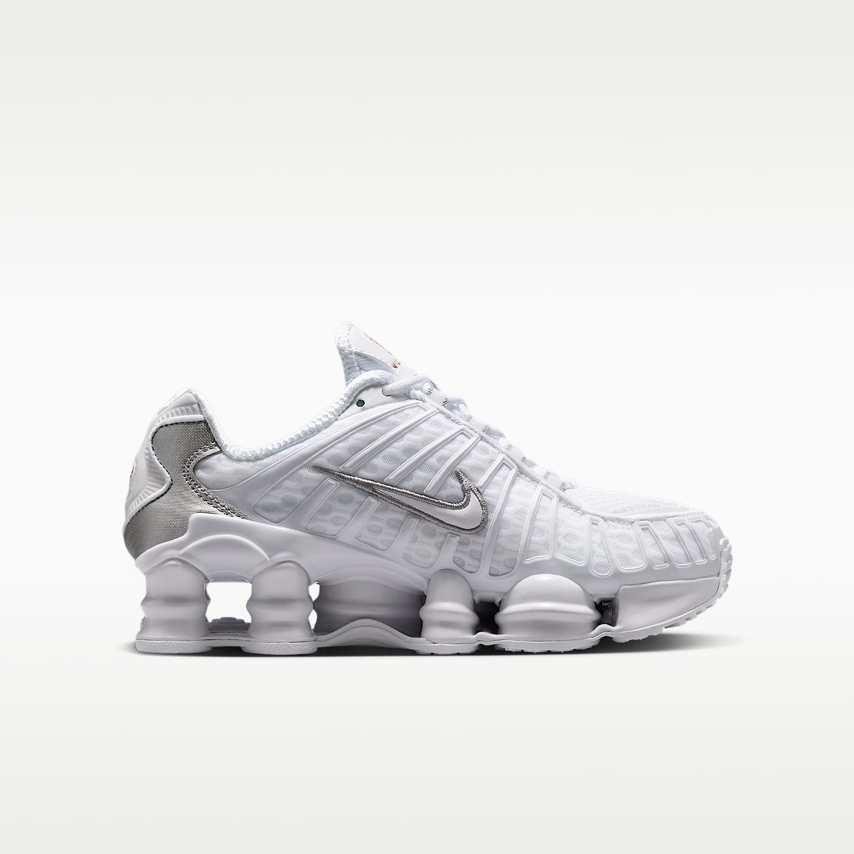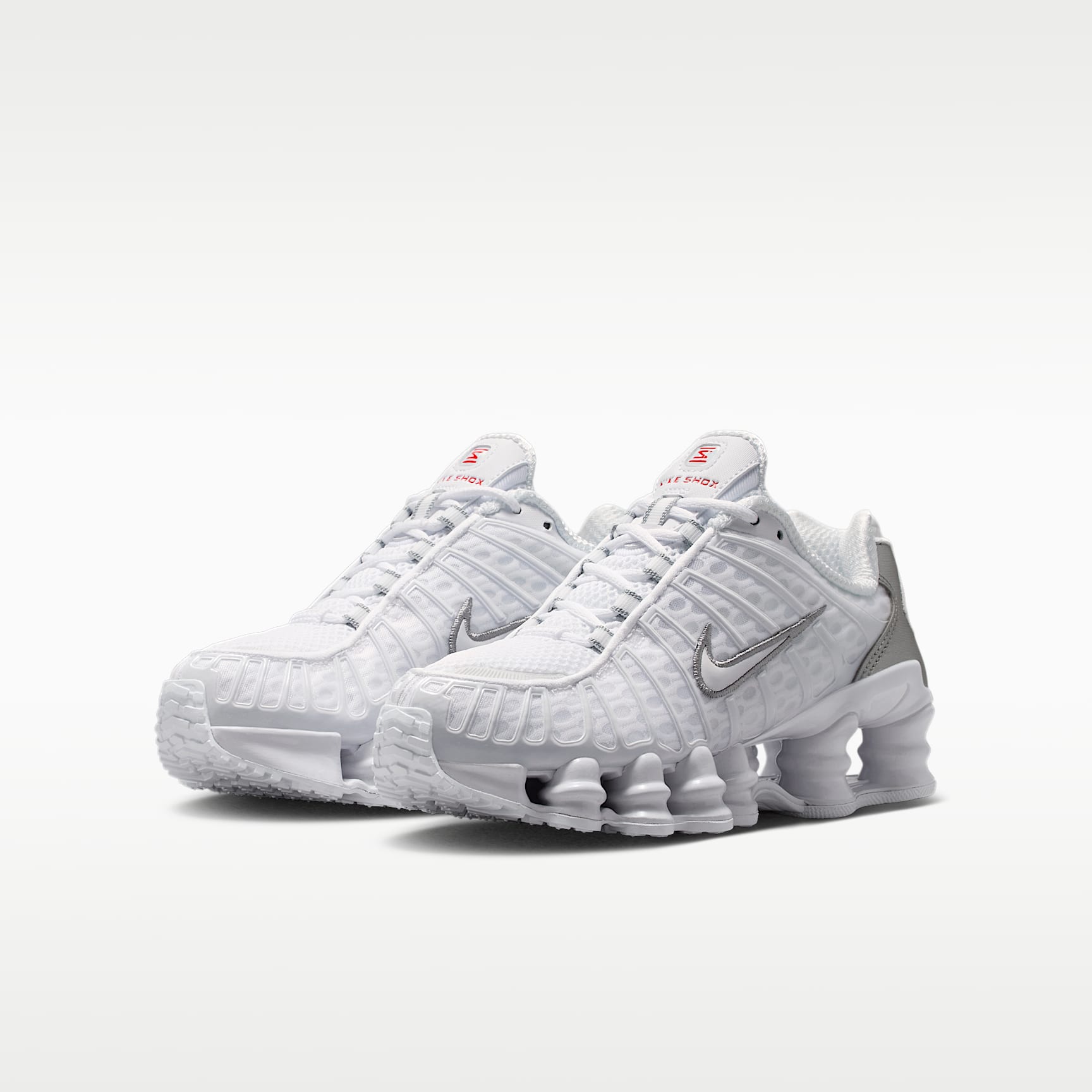 The Nike Shox TL takes mechanical cushioning to the next level. A recrafted version of the 2003 icon, it features breathable mesh in the upper, with full-length Nike Shox technology for optimal impact absorption and a bold look on the streets. Benefits * Nike Shox technology combines resilient, flexible columns with moderator plates for outstanding cushioning that compresses and regains its shape. * A combination upper with a full TPU cage is a near-exact replica of the 2003 Nike Shox TL. * Moulded overlays throughout the midfoot provide support and a snug fit. Product Details * Classic laces * Low-cut collar * Synthetic and textile upper
