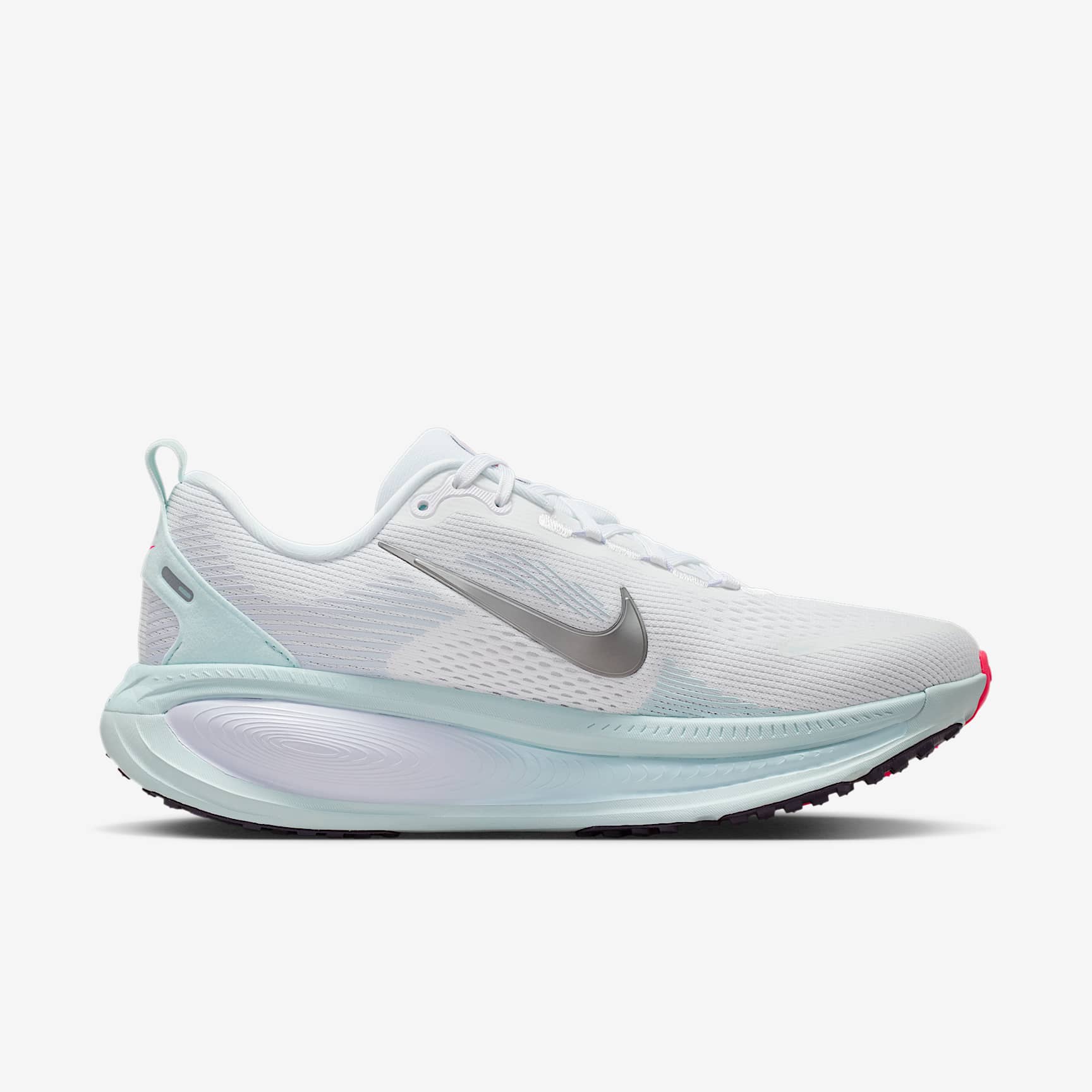 Double-stacked max cushioning for a soft and comfortable ride. Maximum cushioning in the Vomero provides a comfortable ride for everyday runs. Our softest, most cushioned ride has lightweight ZoomX foam stacked on top of responsive ReactX foam in the midsole. A redesigned traction pattern underfoot offers a smooth heel-to-toe transition. Engineered mesh upper The upper is made from engineered mesh for soft breathability. Dual-density midsole Our dual-density midsole has ZoomX foam stacked on top of ReactX foam, which is 13% more responsive than previous React technology, for a comfortable ride. Pods around the outsole We placed pods around the outsole to help enhance agility and provide smoother heel-to-toe transitions. Plush padding A plush tongue and lining give you a comfortably snug feel. What's new? * ZoomX foam stacked on top of ReactX foam * Higher stack height compared to Vomero 17 * Plush foam collar * Increased rocker Product Details * Weight: approx. 262g (women's size 5.5) * Heel-to-toe drop: 10mm * Reflective design details * Not intended for use as personal protective equipment (PPE)